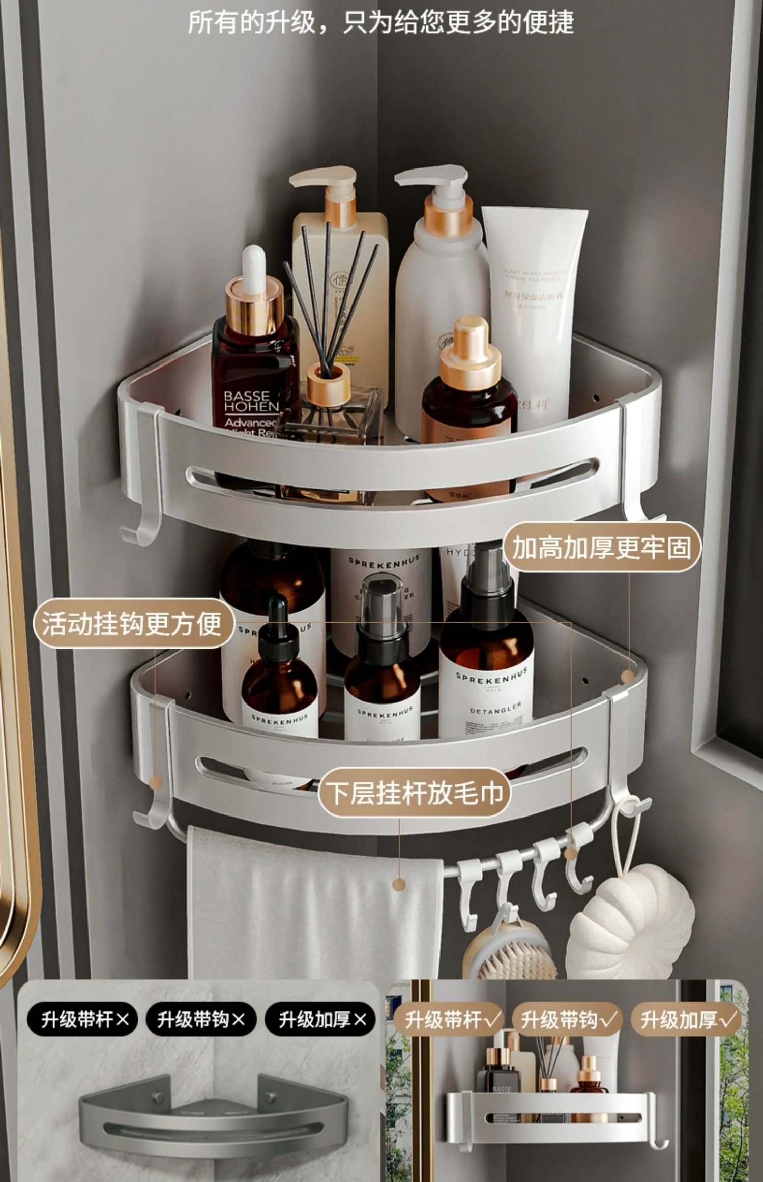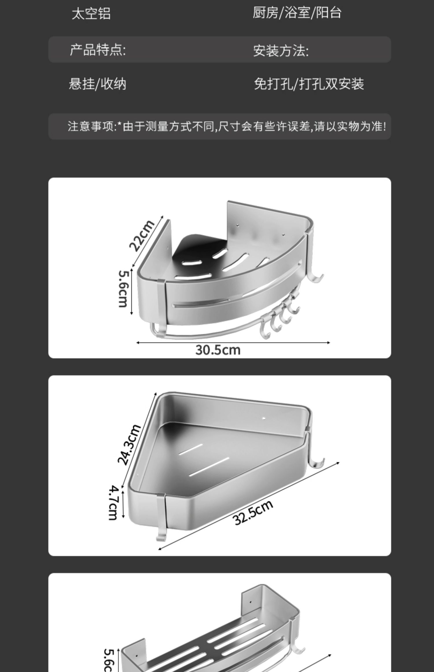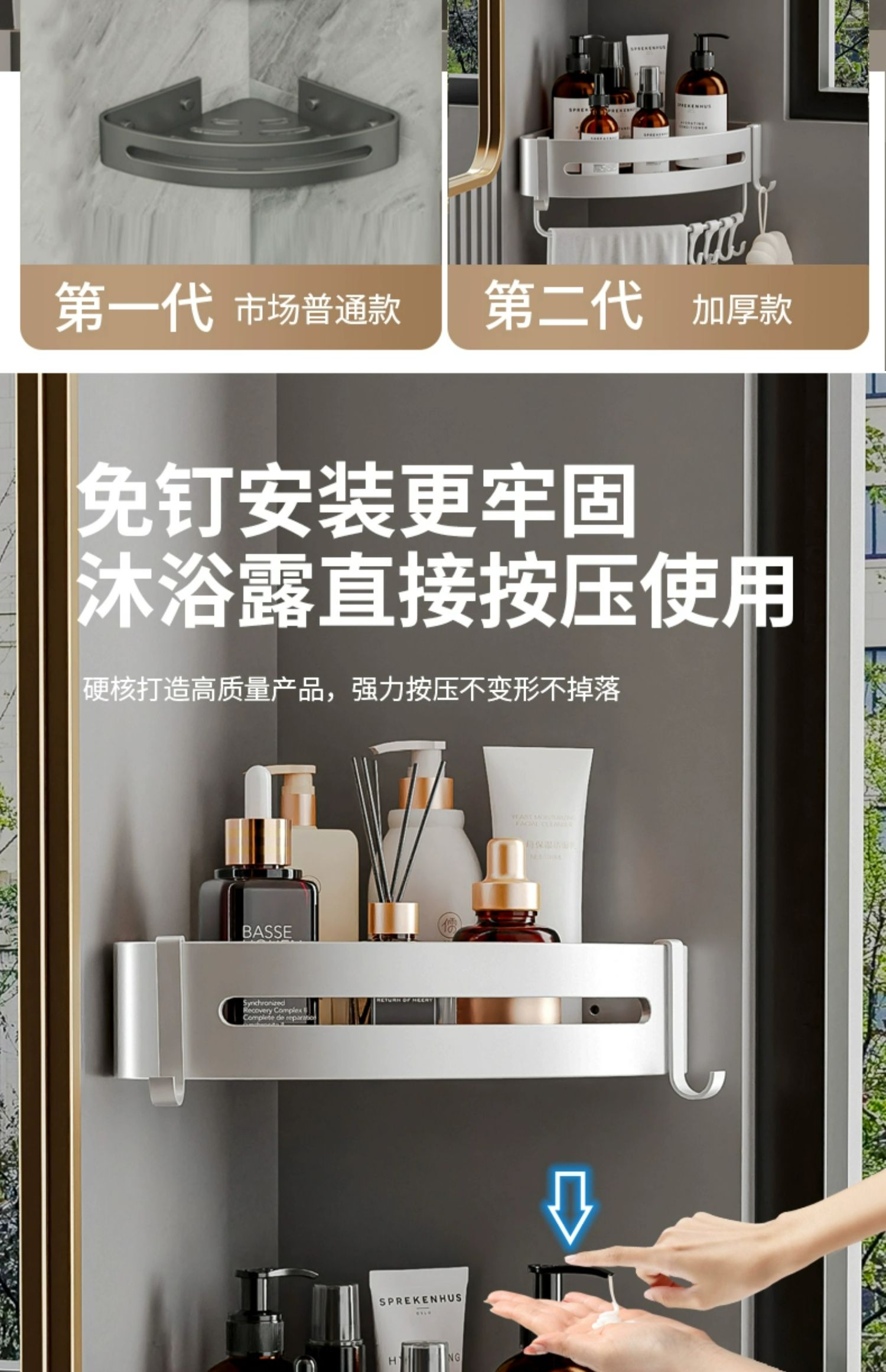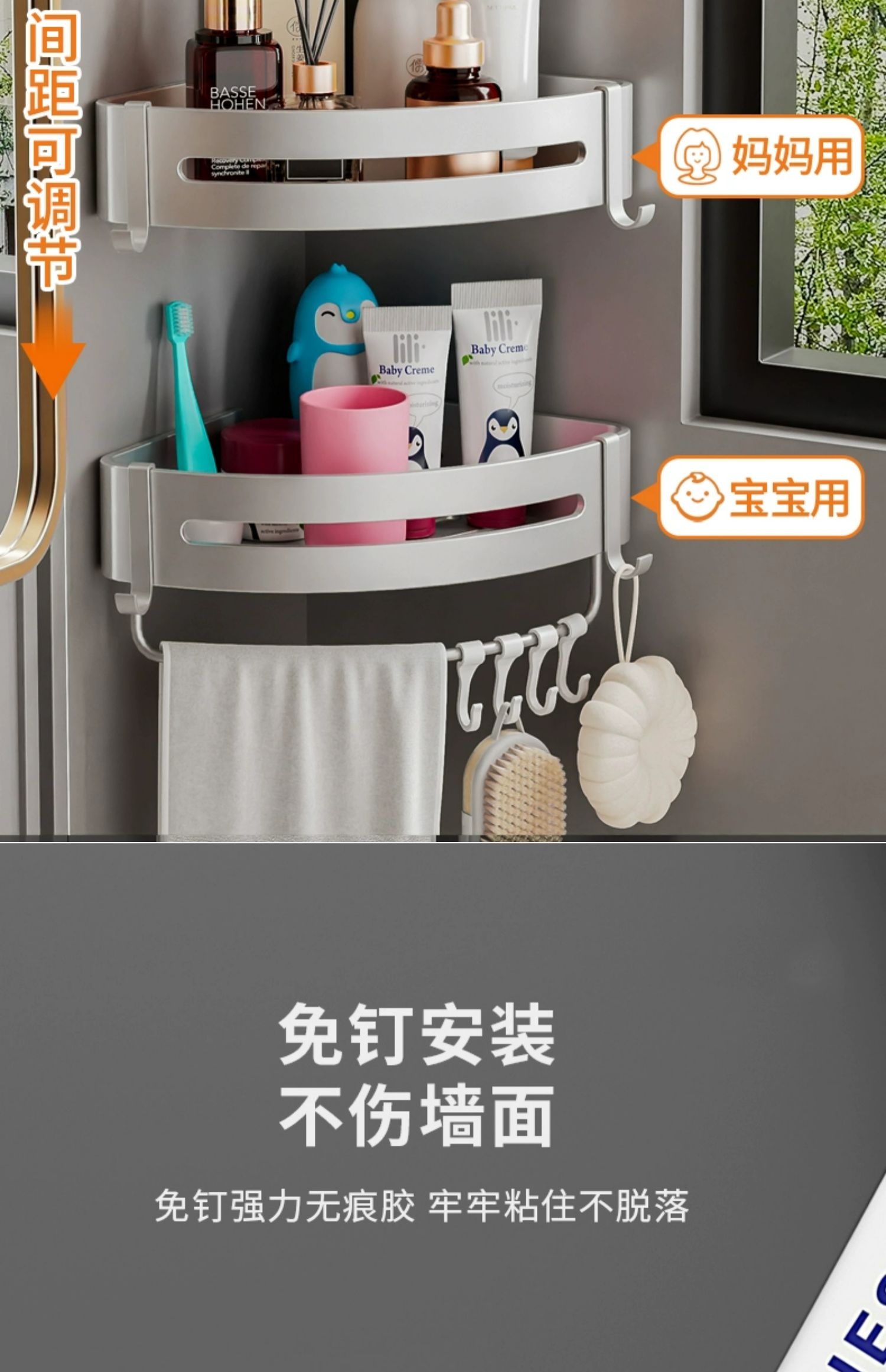 卫生间三角置物架银色浴室架子免打孔洗手间厕所壁挂式转角收纳架