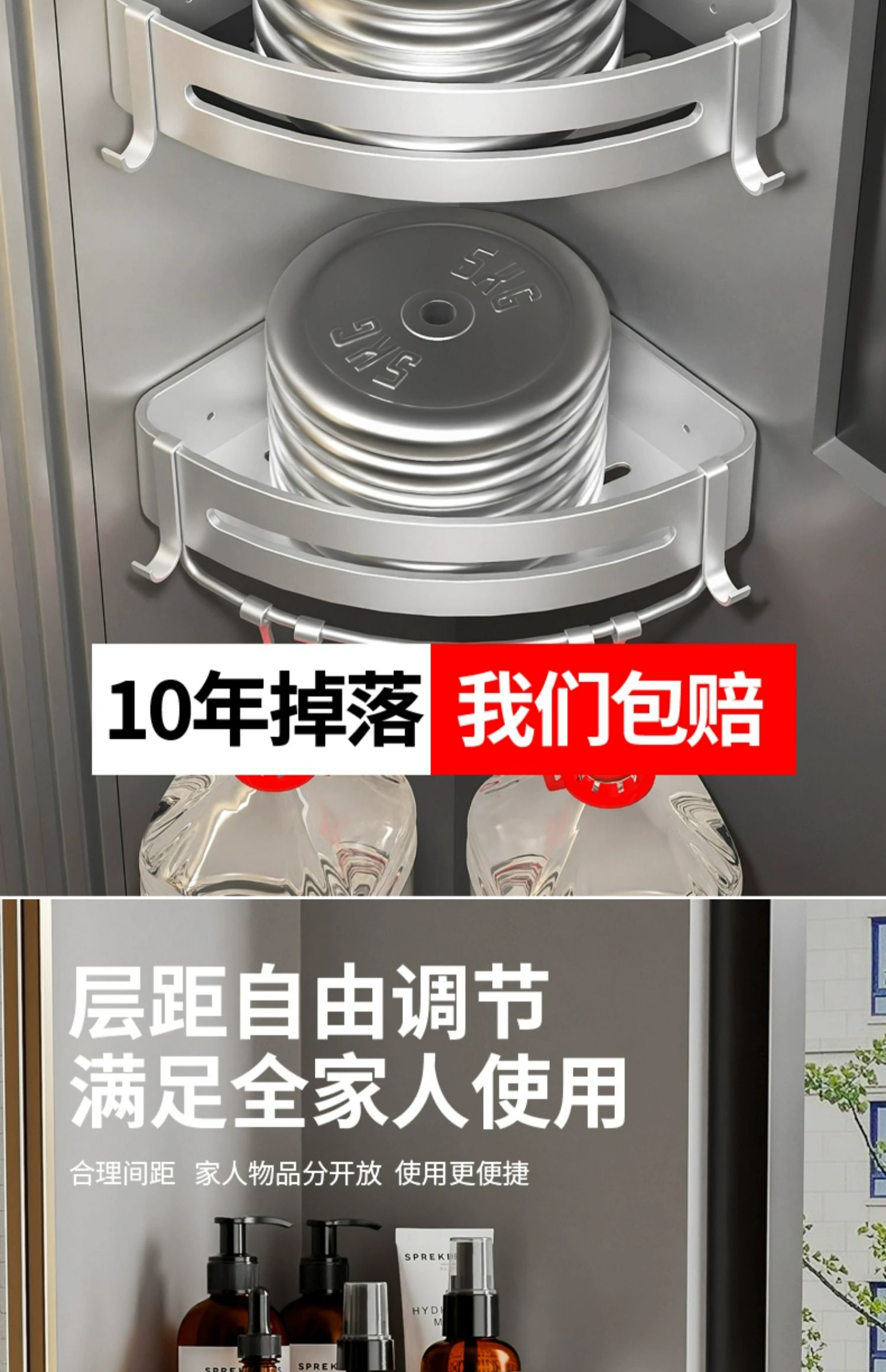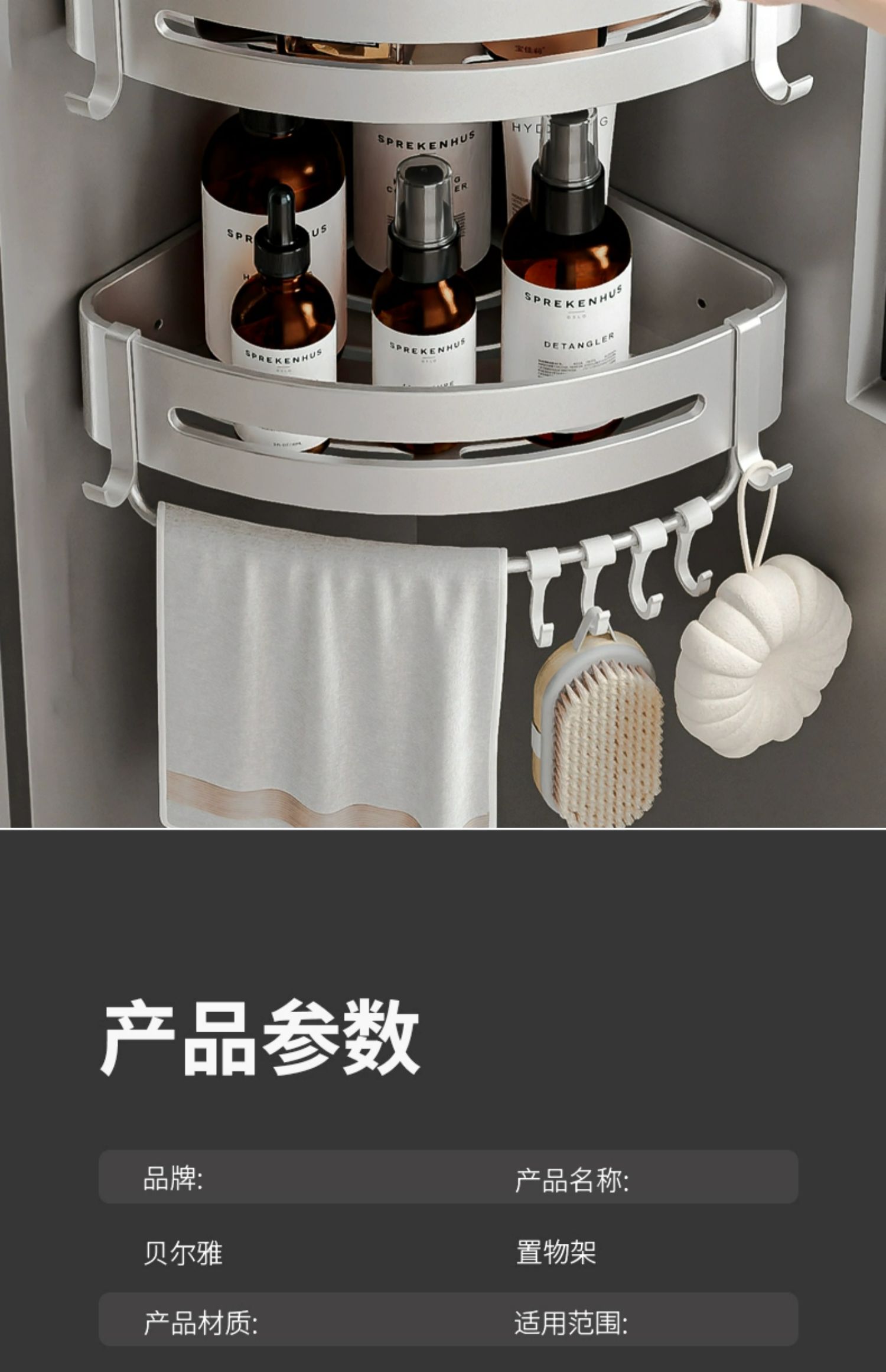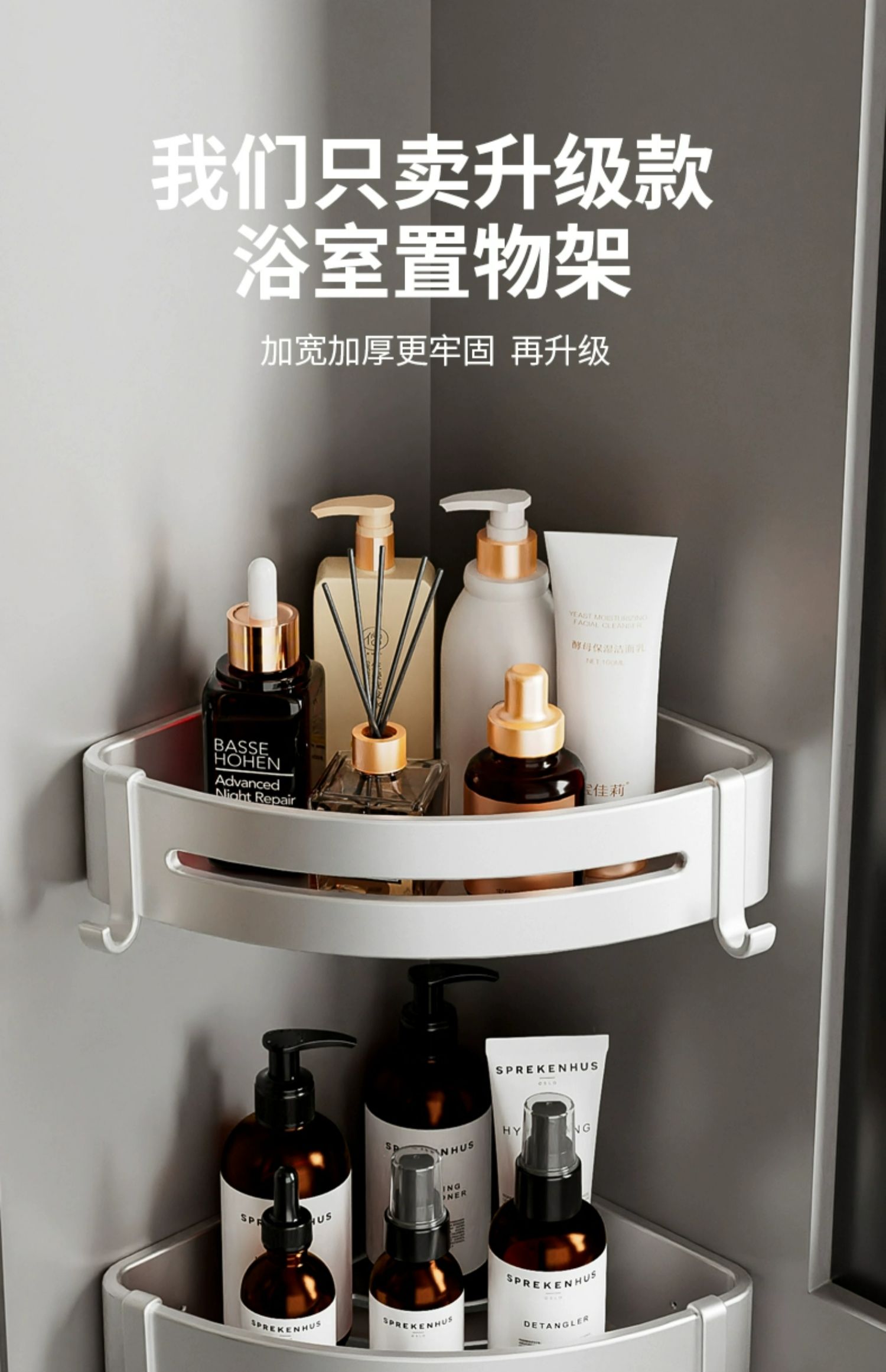 卫生间三角置物架银色浴室架子免打孔洗手间厕所壁挂式转角收纳架
