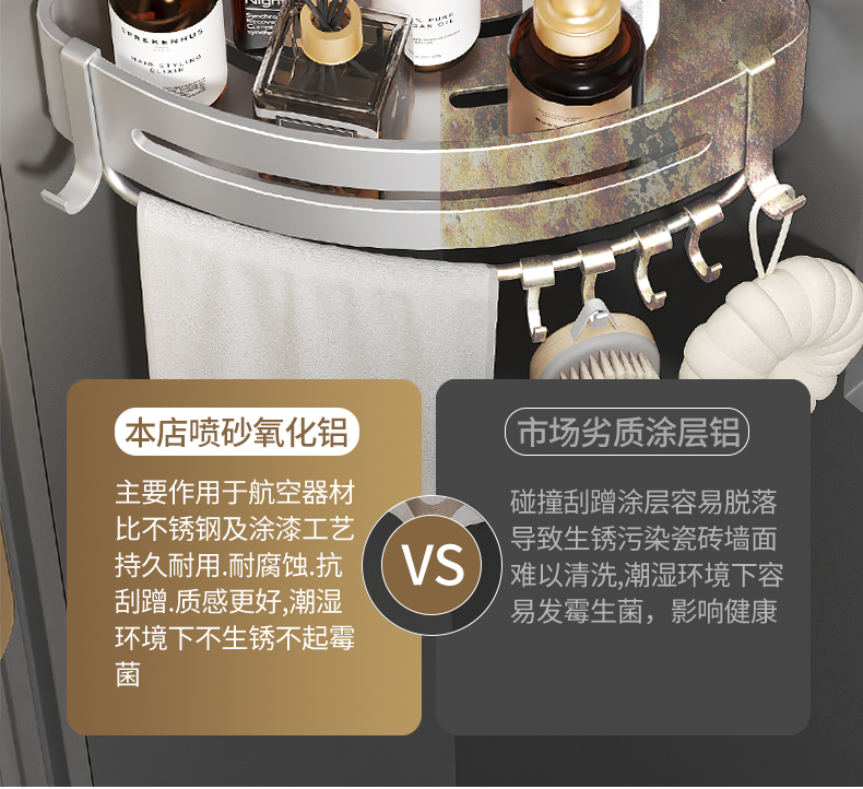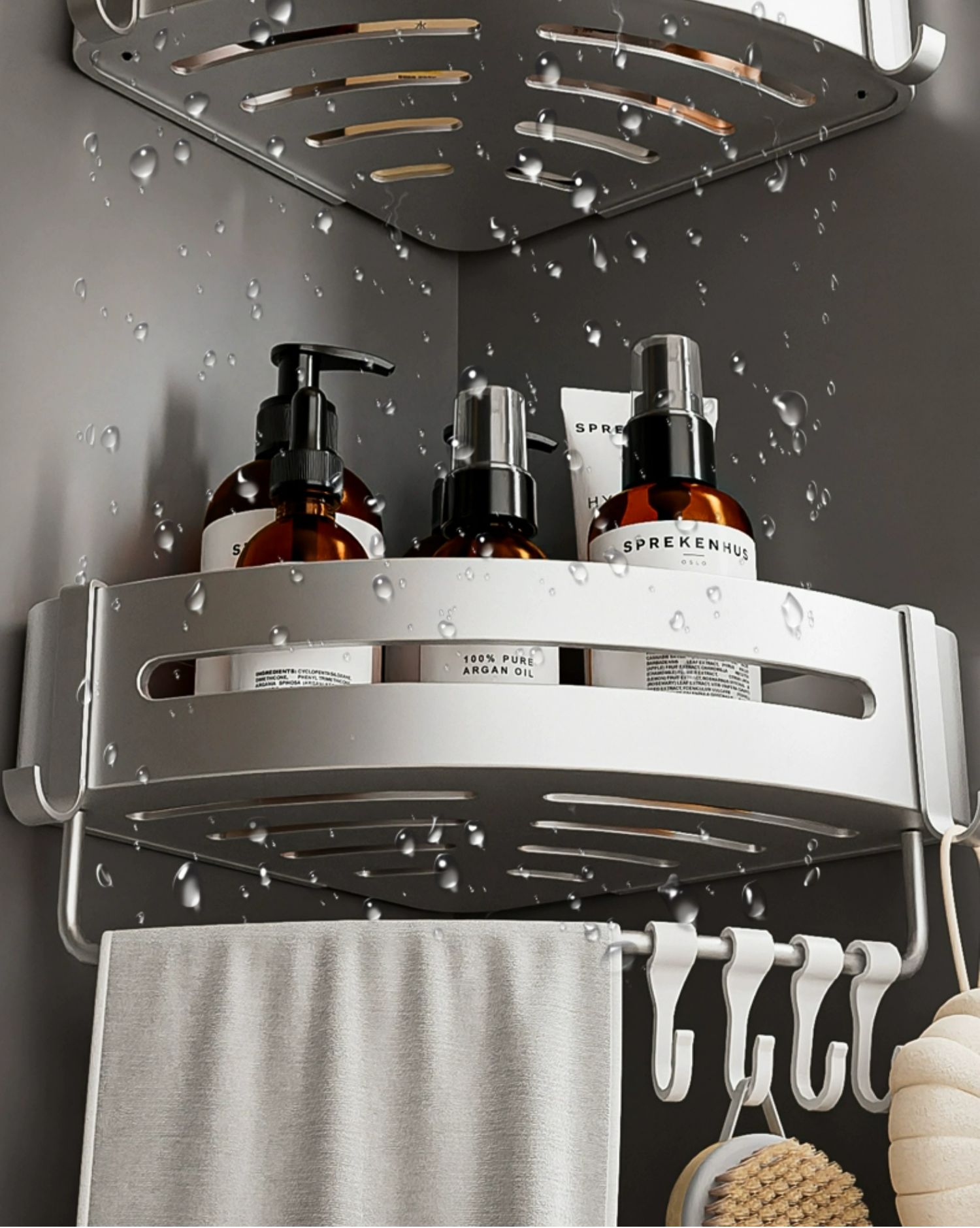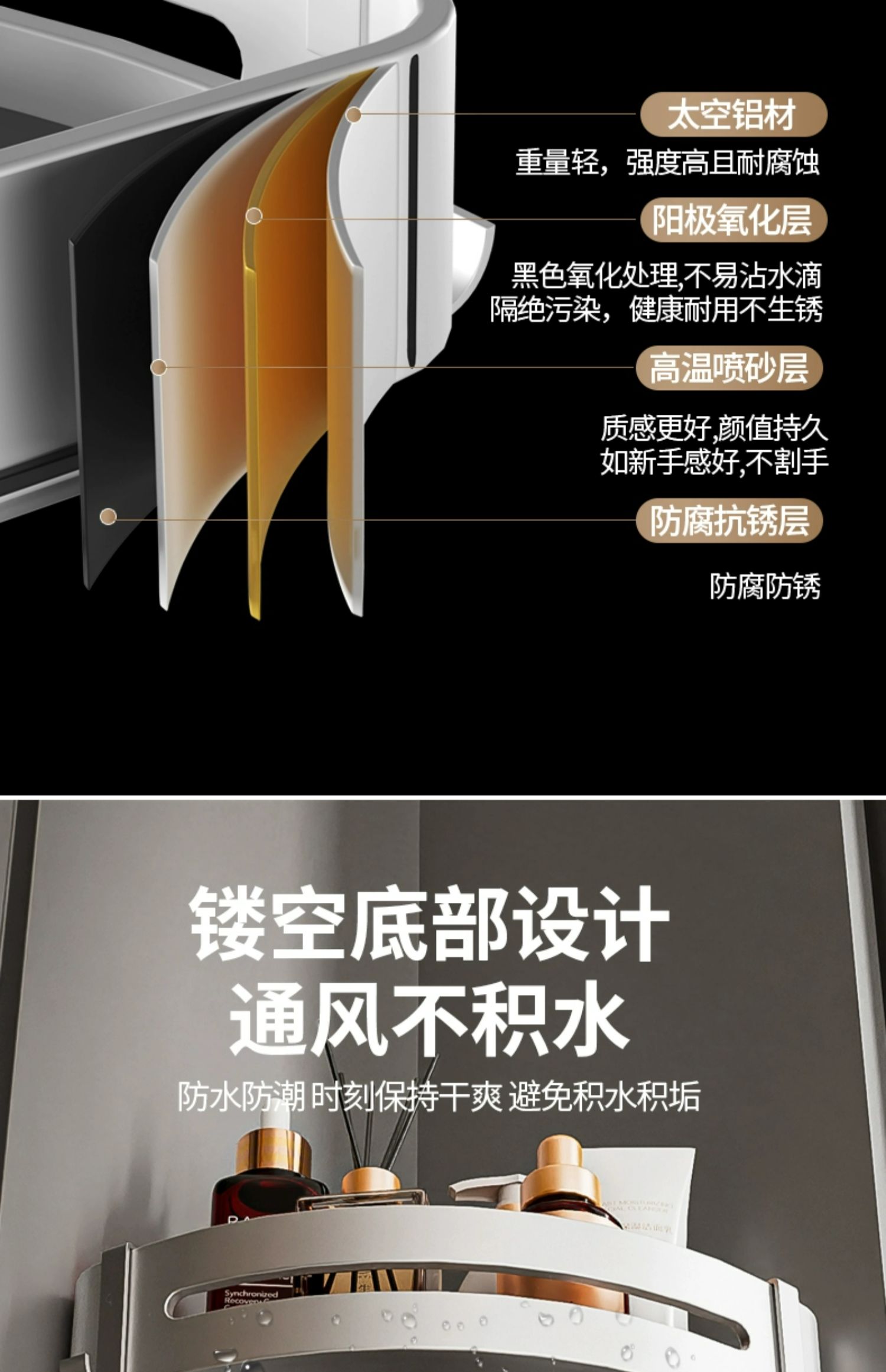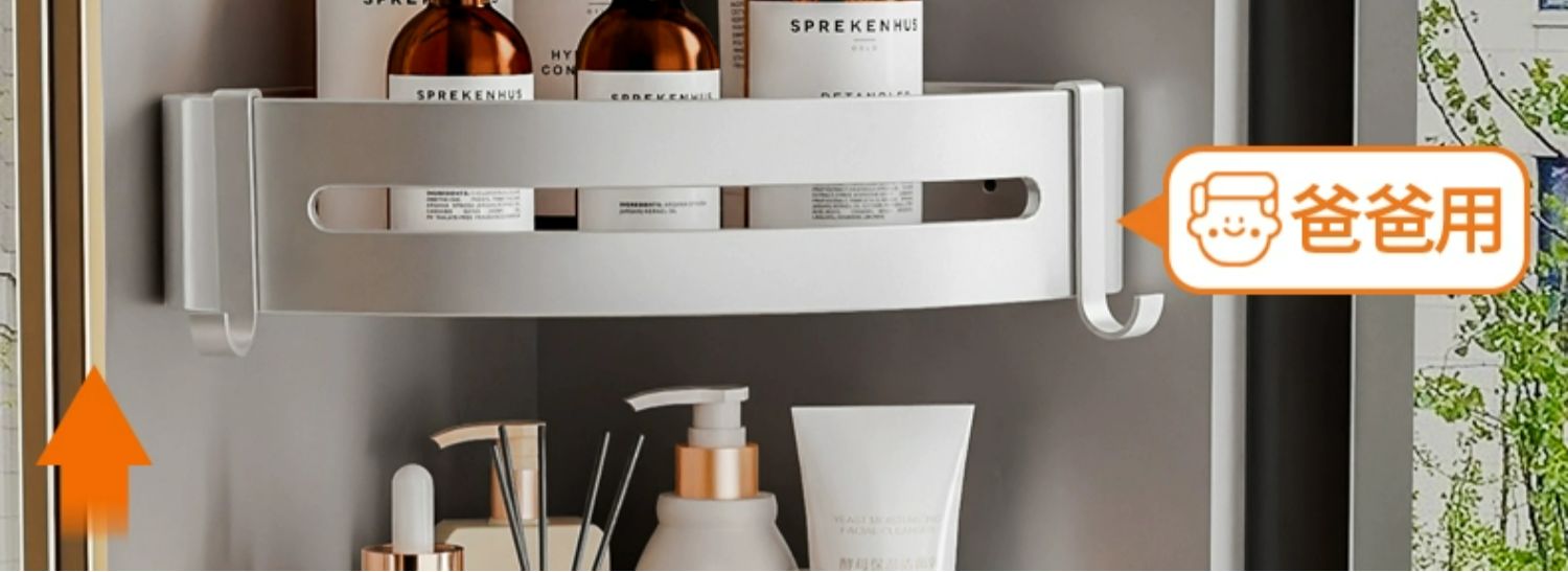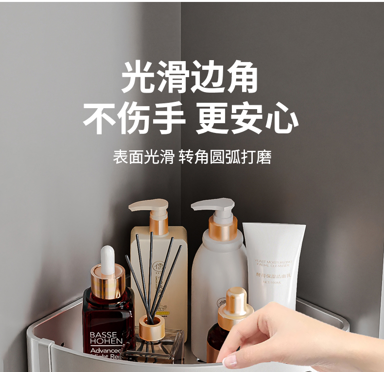 卫生间三角置物架银色浴室架子免打孔洗手间厕所壁挂式转角收纳架