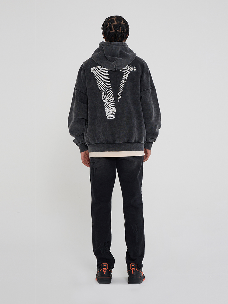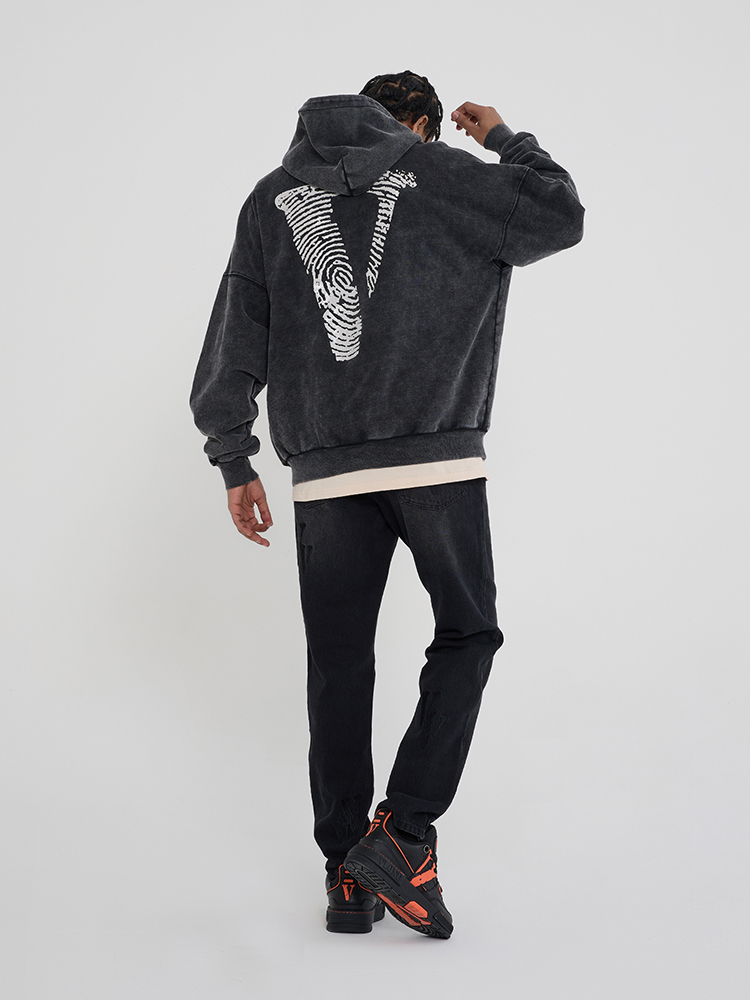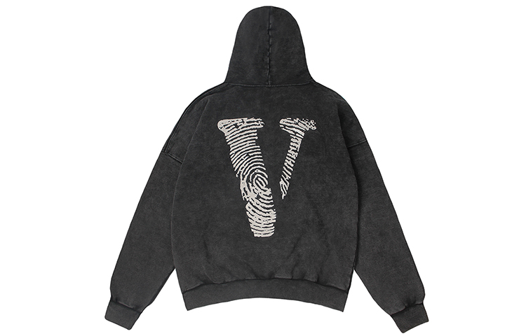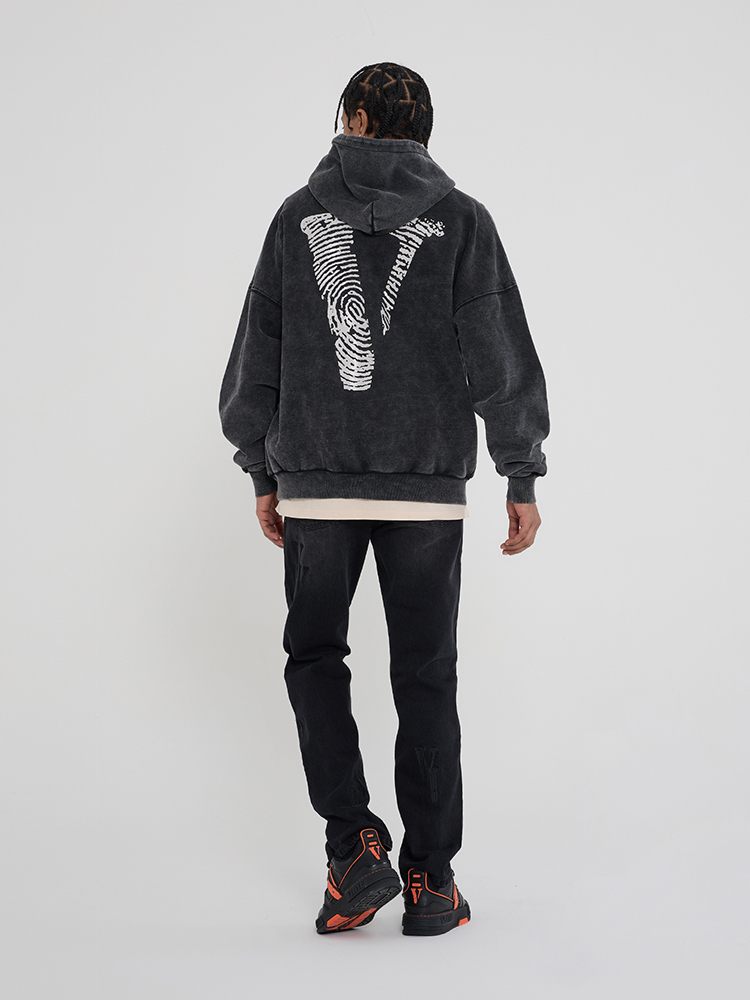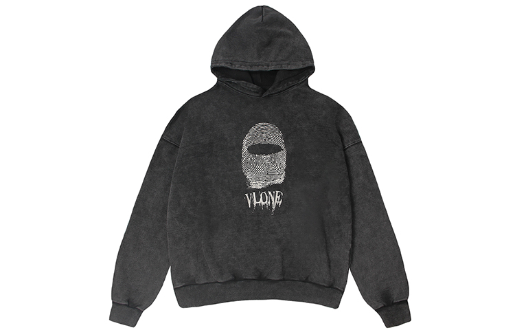 VLONE指纹大Logo印花水洗宽松连帽卫衣男女同款情侣款 黑灰