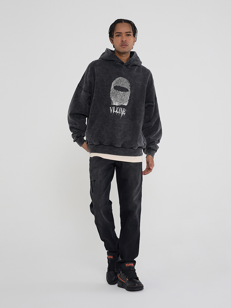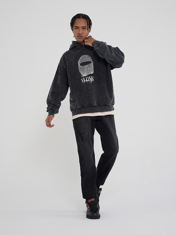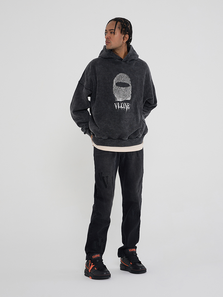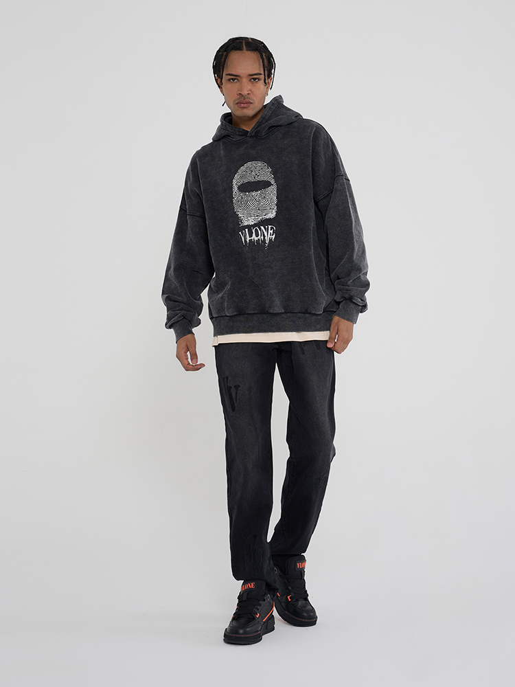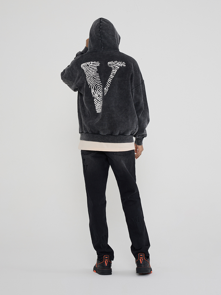 VLONE指纹大Logo印花水洗宽松连帽卫衣男女同款情侣款 黑灰