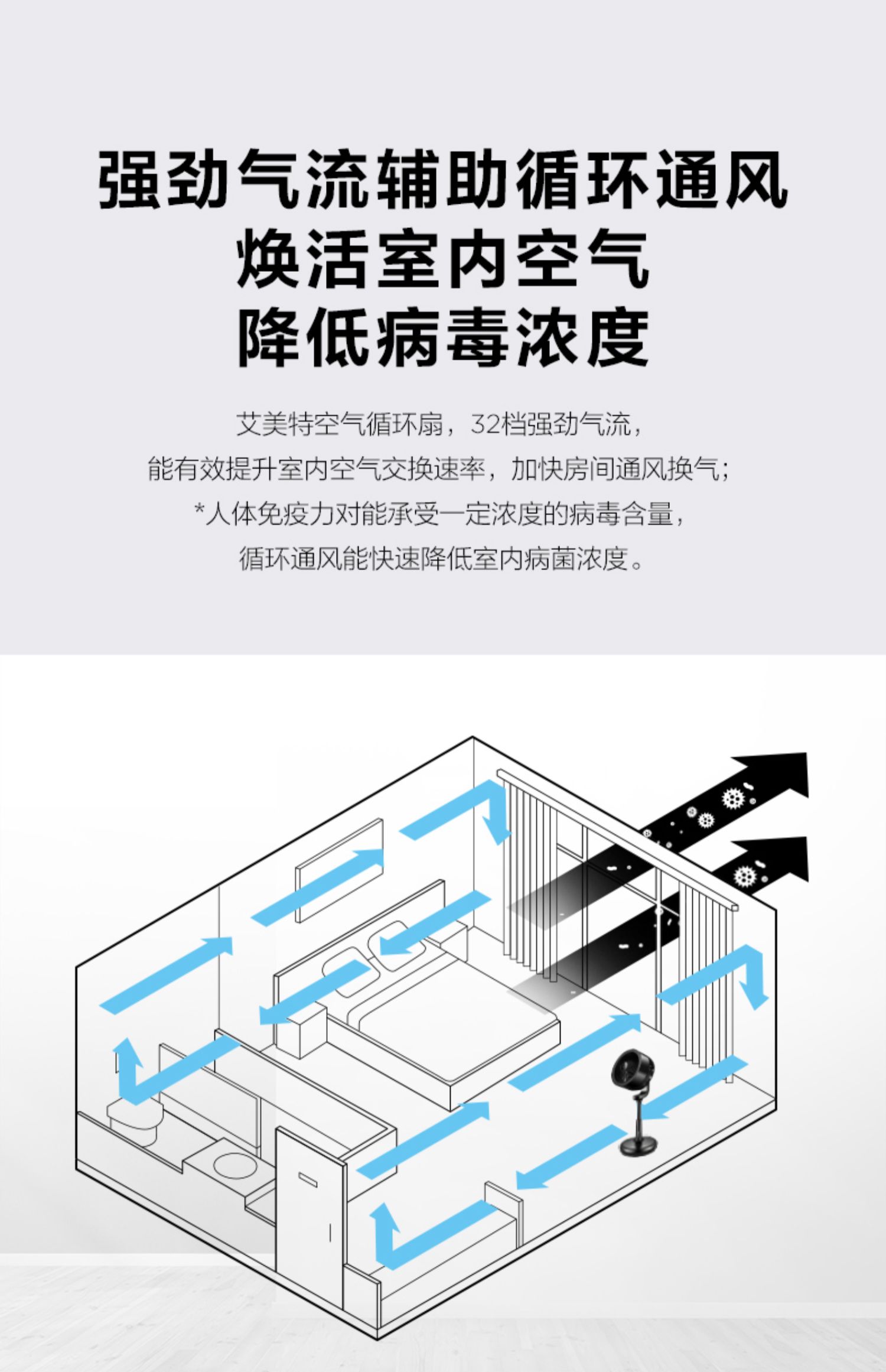 艾美特空气循环扇涡轮对流电风扇落地扇家用台式立式宿舍电扇