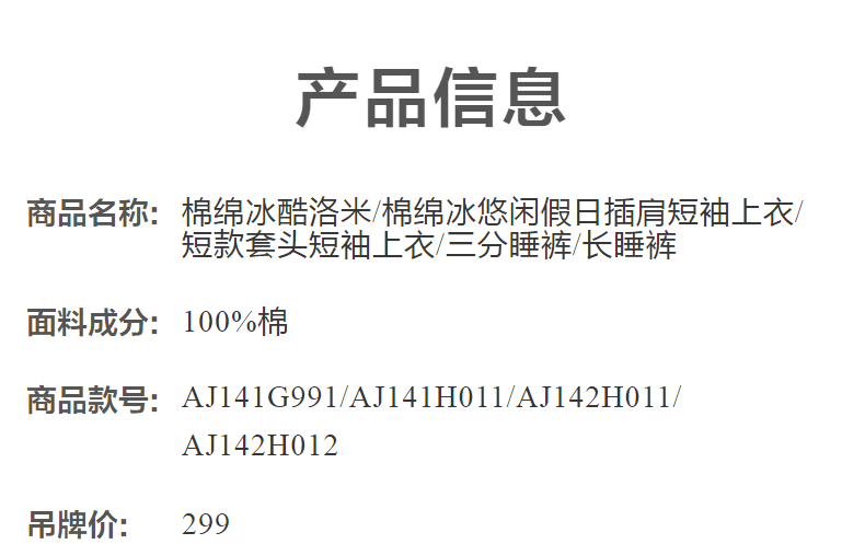 爱慕少女库洛米A类家居3A抗菌短袖三分裤长裤棉绵冰亲子款可外穿