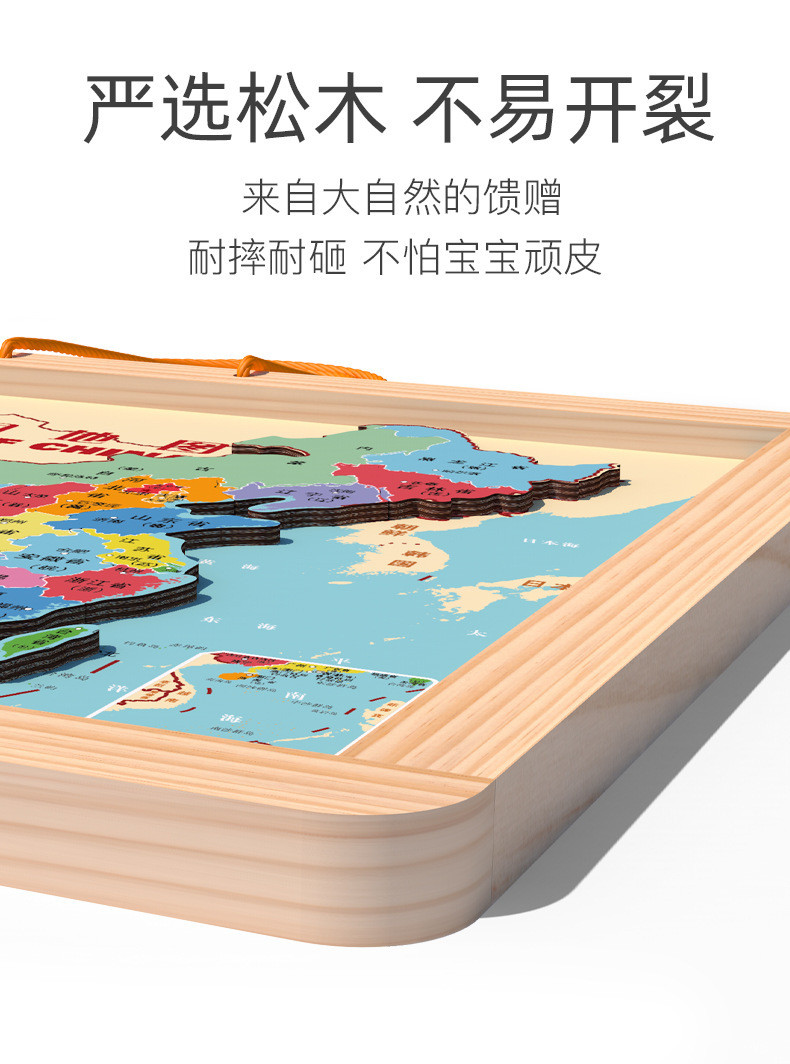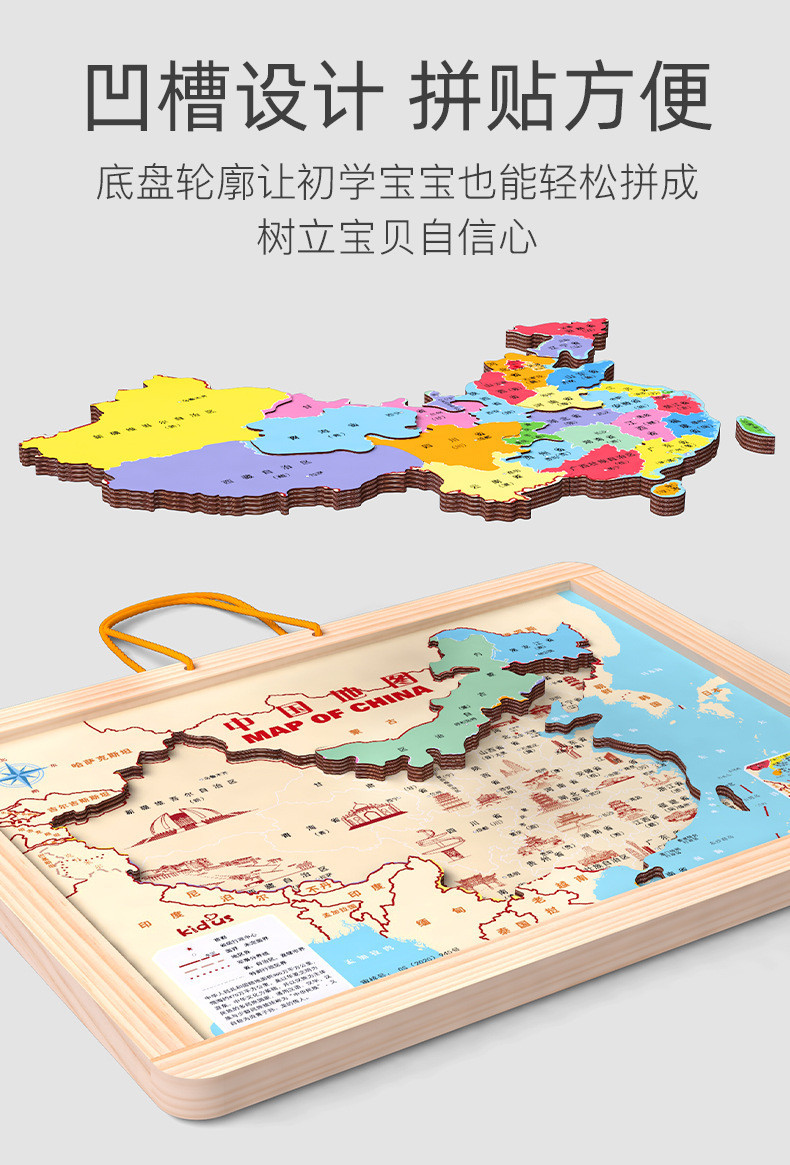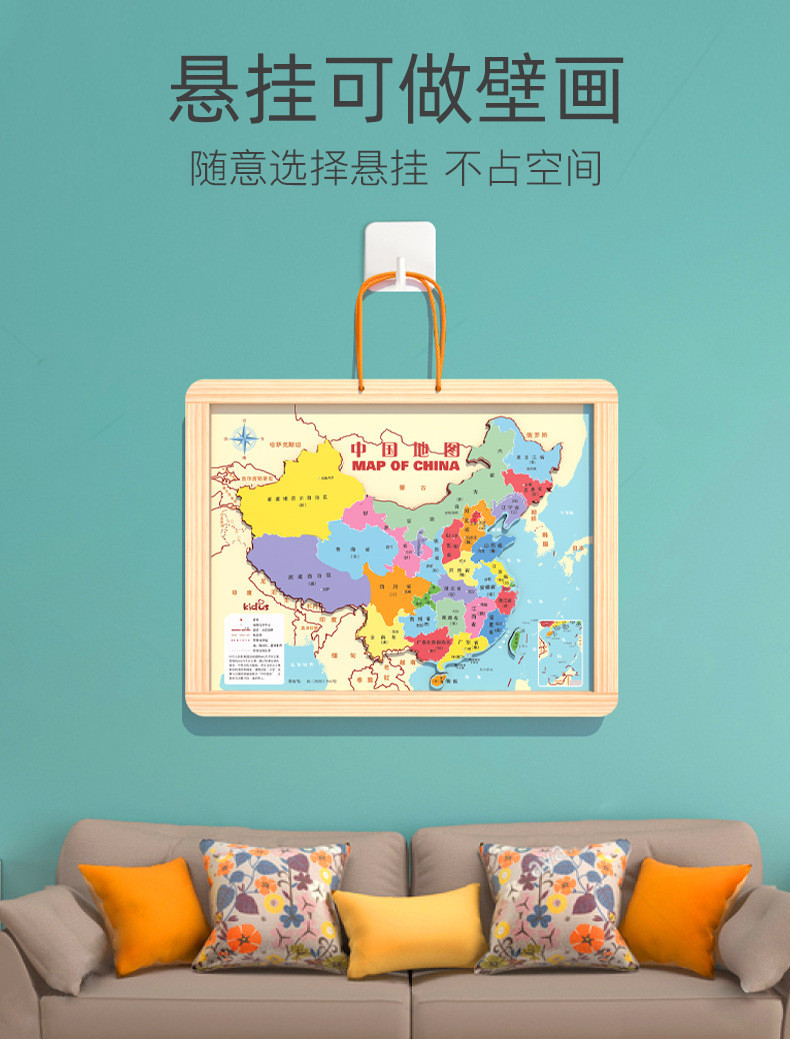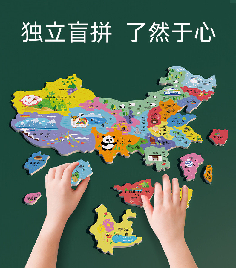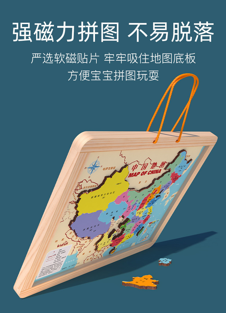 中国地图木制拼图磁性大号世界平面早教儿童益智玩具拼板地理认知