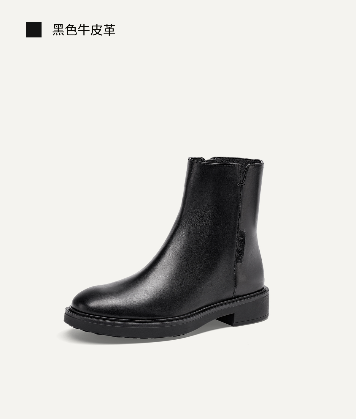 蹀愫冬季牛皮时装靴显瘦女短靴靴子TA54719-50