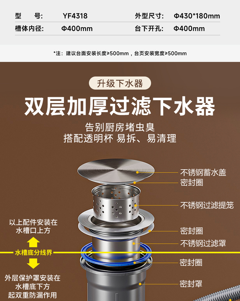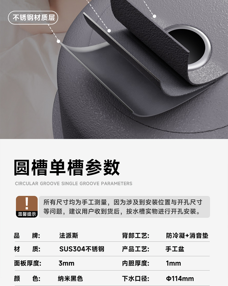 法国法派斯厨房304不锈钢水槽小圆槽家用小尺寸洗碗盆洗手盆4118