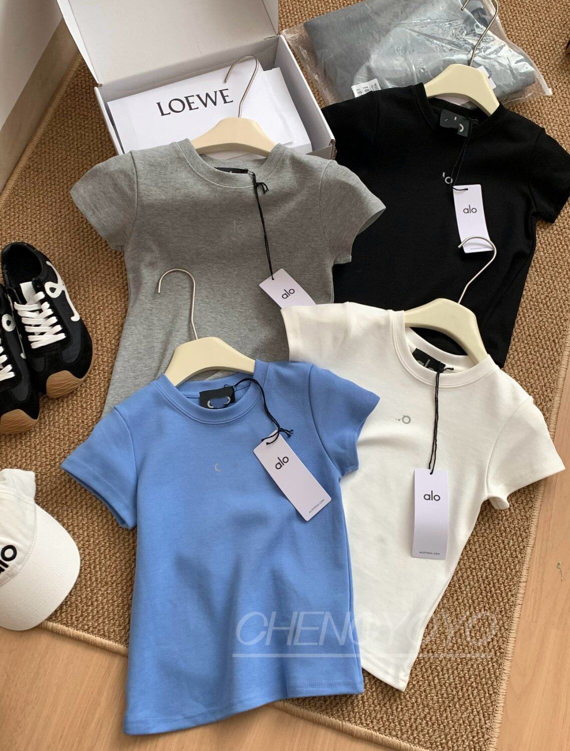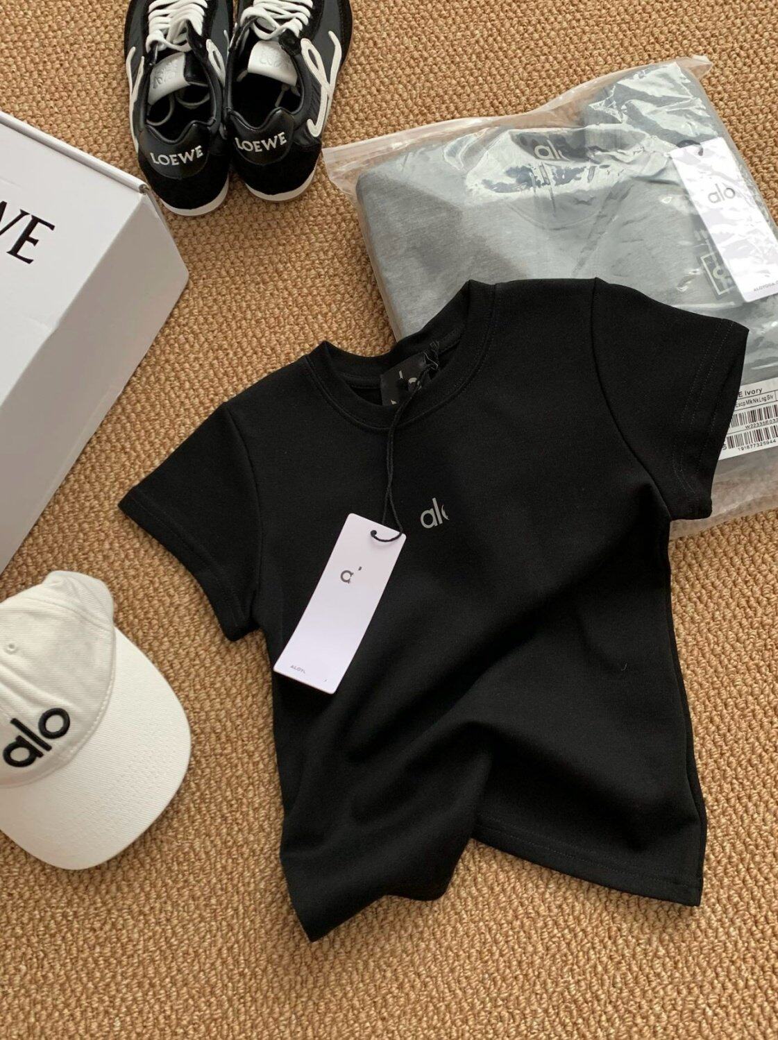 瑜伽短袖T恤女夏新款修身显瘦百搭运动休闲字母印花圆领正肩上衣