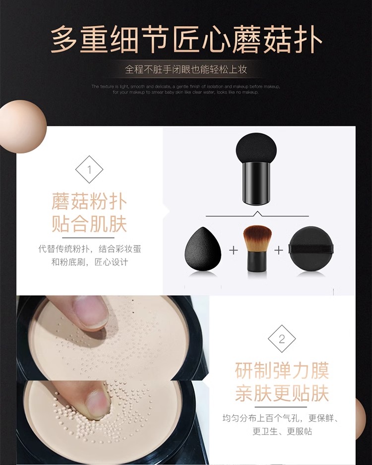 沪美网红蘑菇头气垫隔离霜 轻薄透气遮瑕bb霜化妆品cc霜 蘑菇气垫