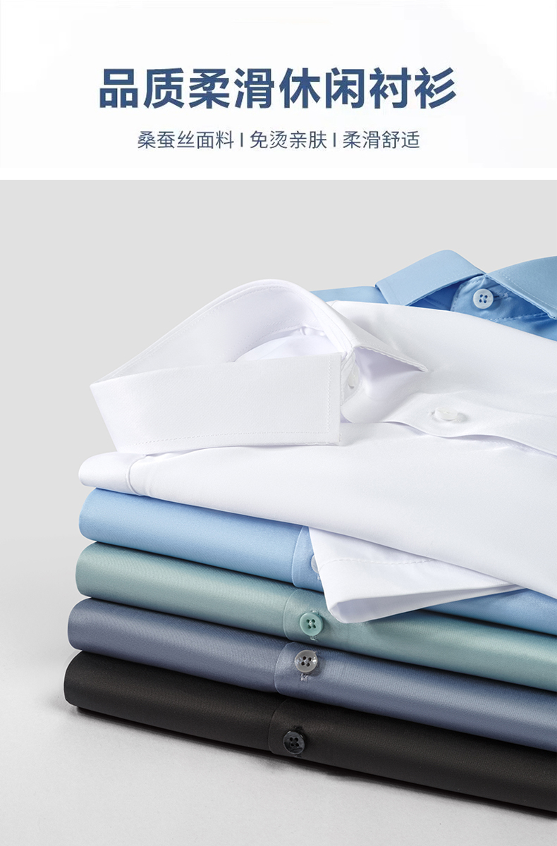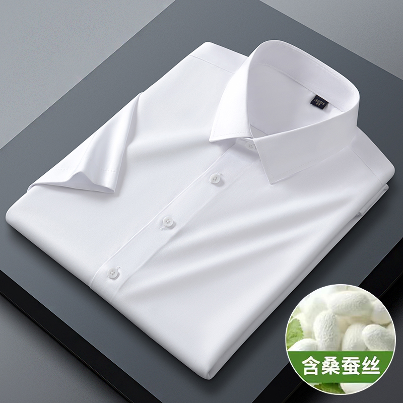 桑蚕丝短袖衬衫男士夏季白色商务休闲职业工正装半袖长袖寸衫衬衣