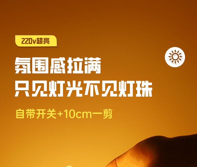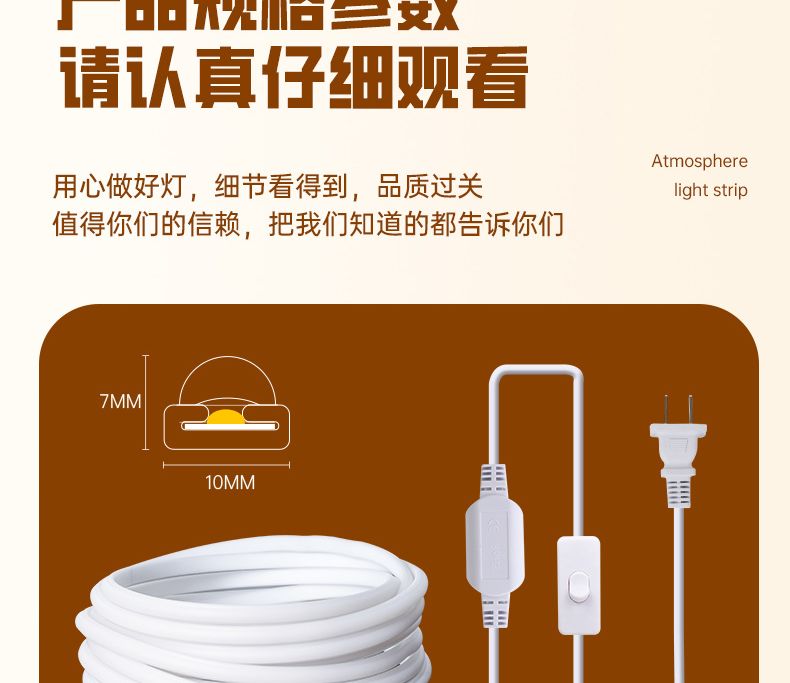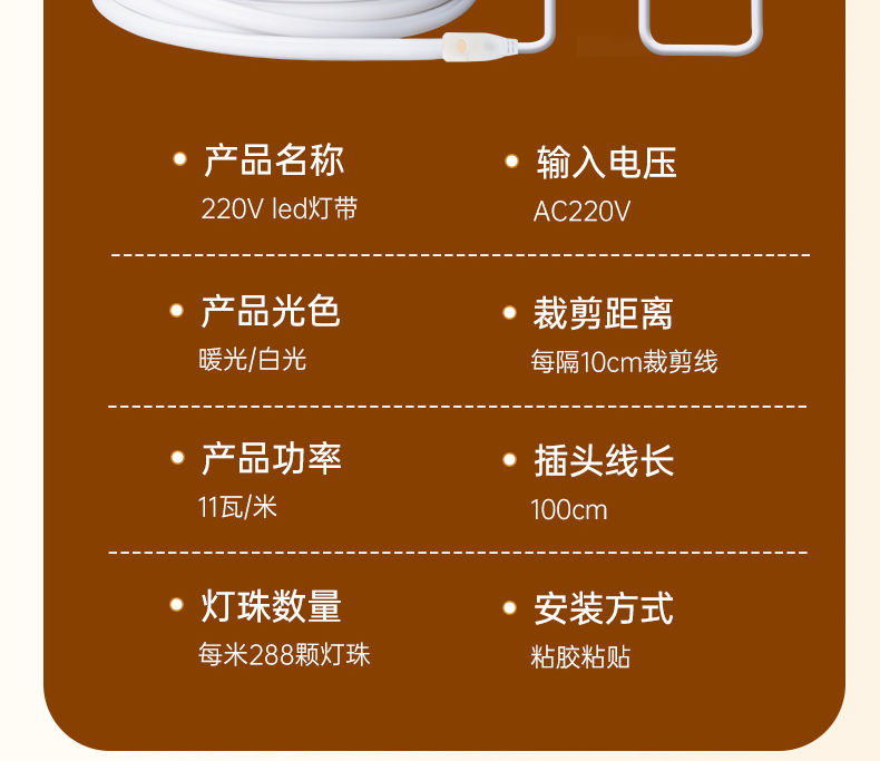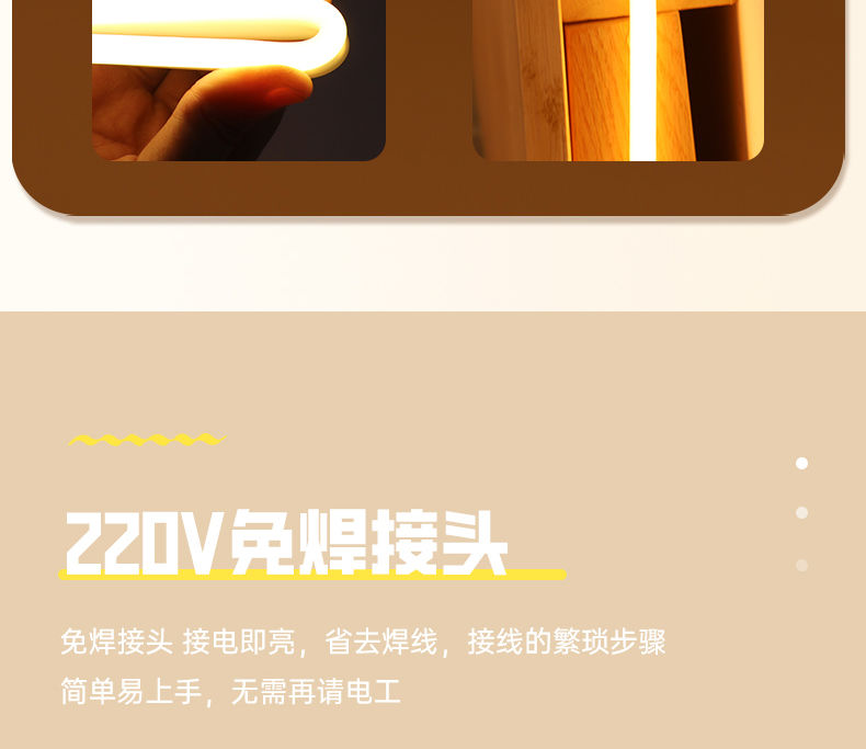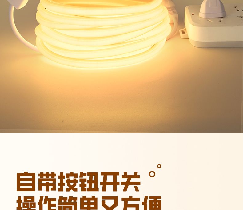 COB灯带led灯条带开关220v自粘客厅卧室床头电视柜氛围装饰灯插电