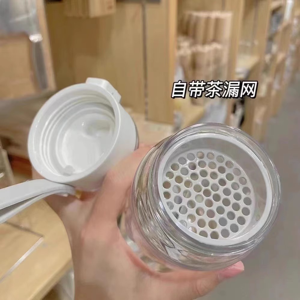 无印水杯平替高级感塑料水杯带茶隔耐高温防摔简约夏季随手杯学生