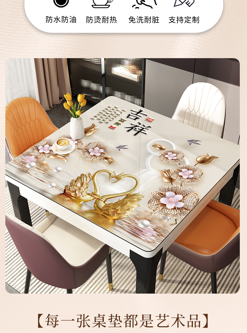 pvc软玻璃正方形桌布免洗防油防水防烫餐桌垫高级感方形茶几桌垫