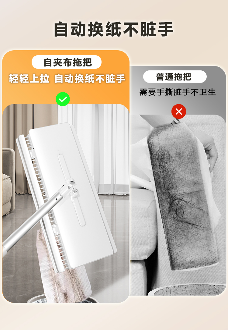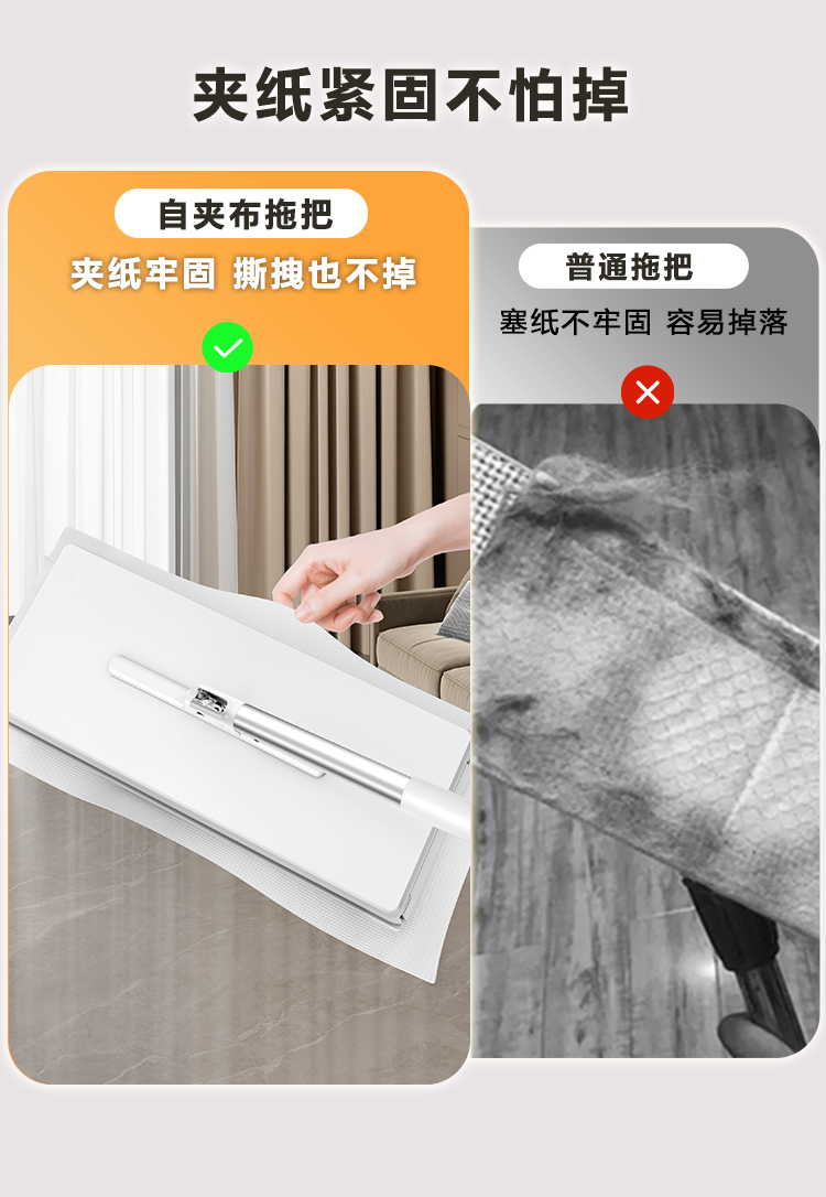 洗脸巾懒人平板拖把夹布拖把家用2024新款自动夹抹布静电除尘纸净