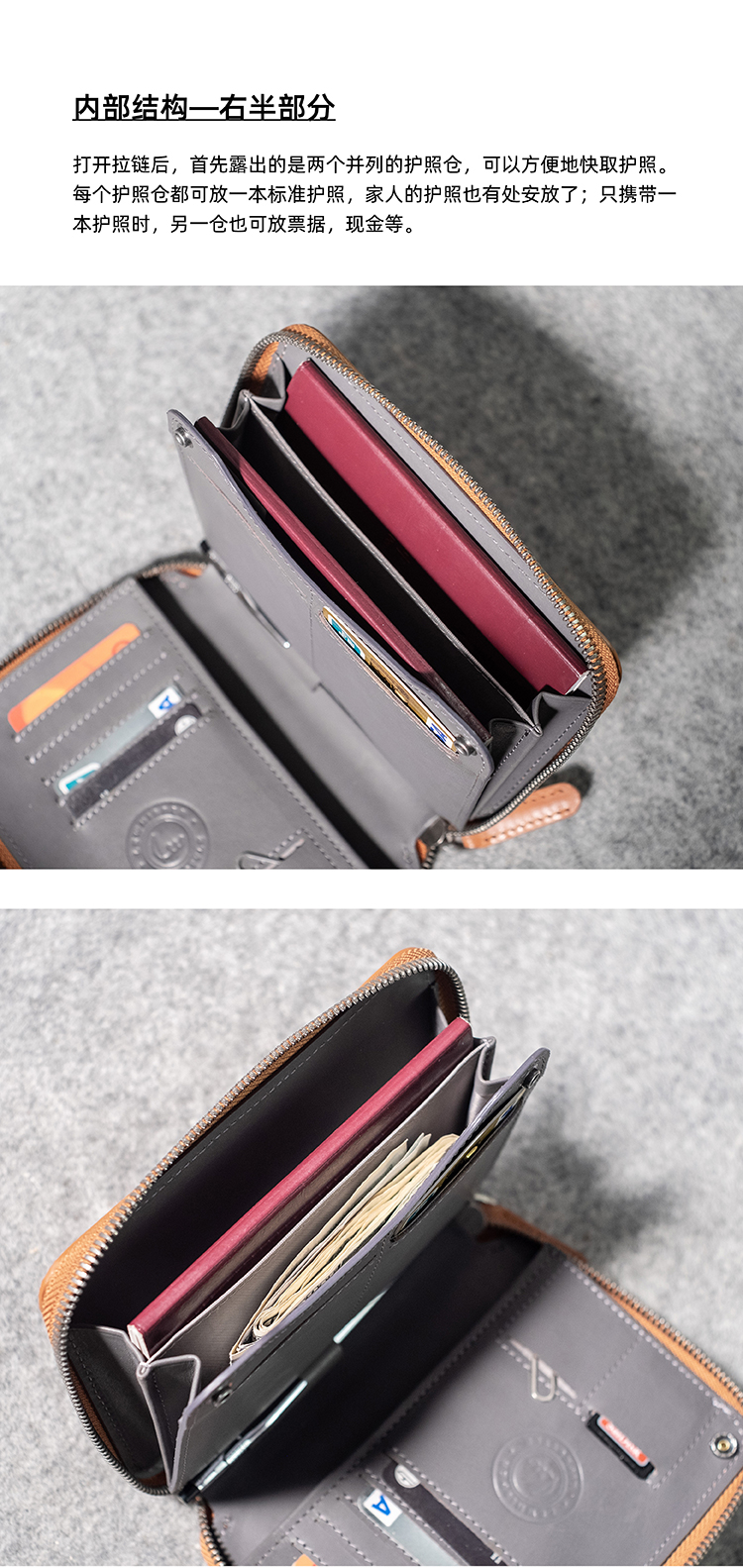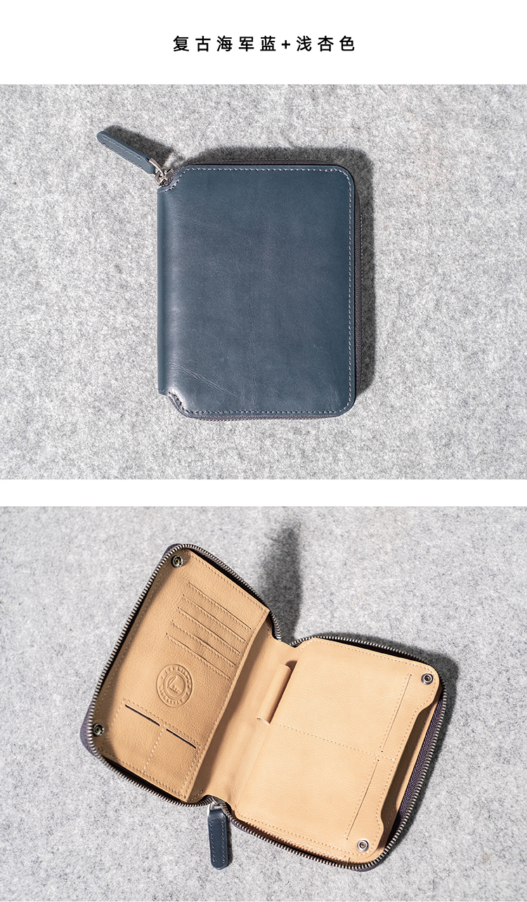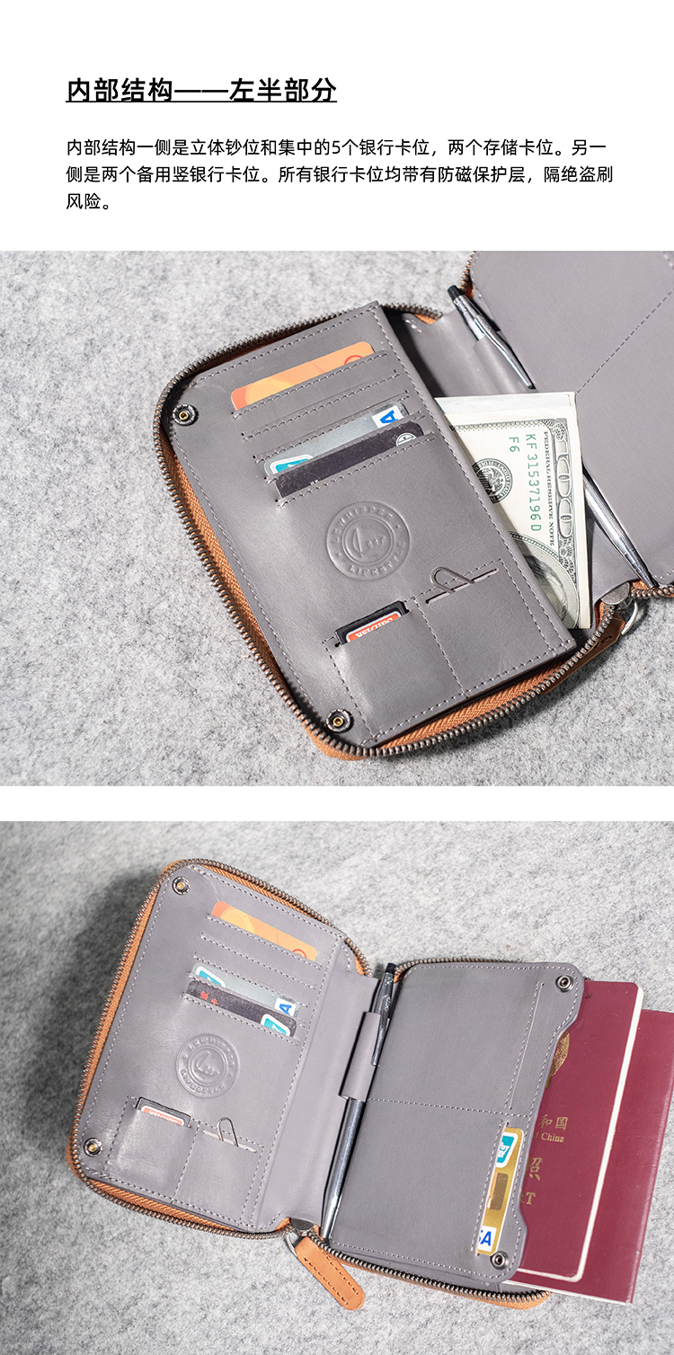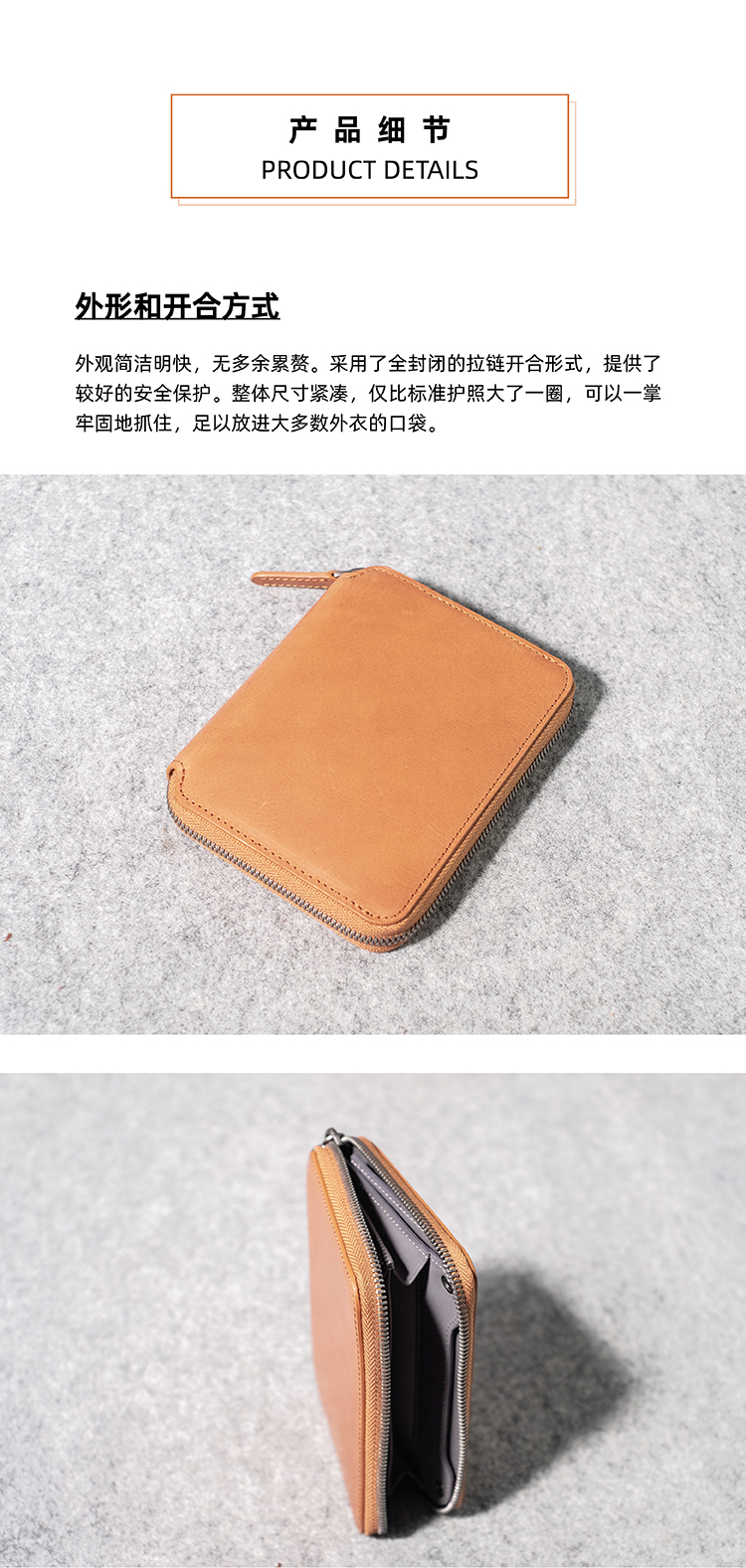 Lewhisper旅行者系列原创真牛皮拉链全封闭紧凑型短款护照包钱包