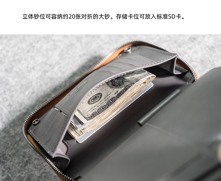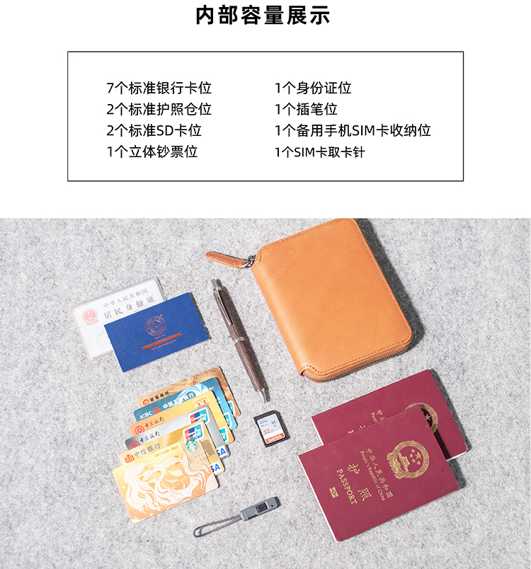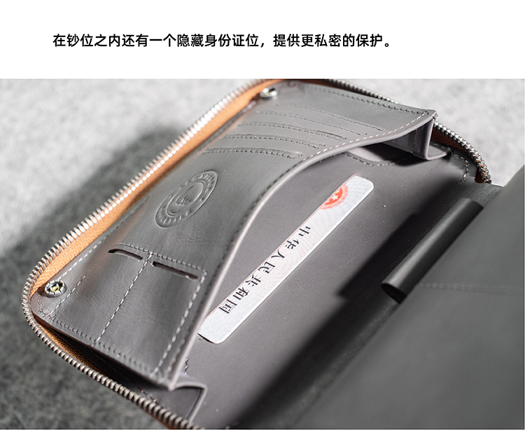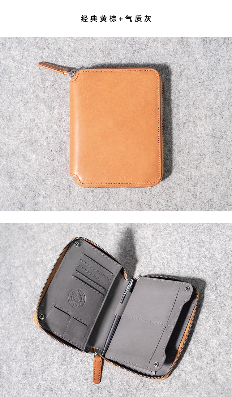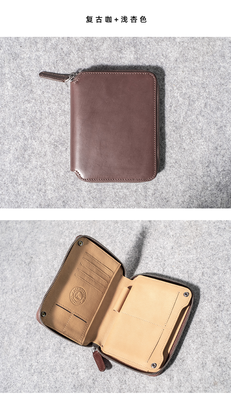 Lewhisper旅行者系列原创真牛皮拉链全封闭紧凑型短款护照包钱包