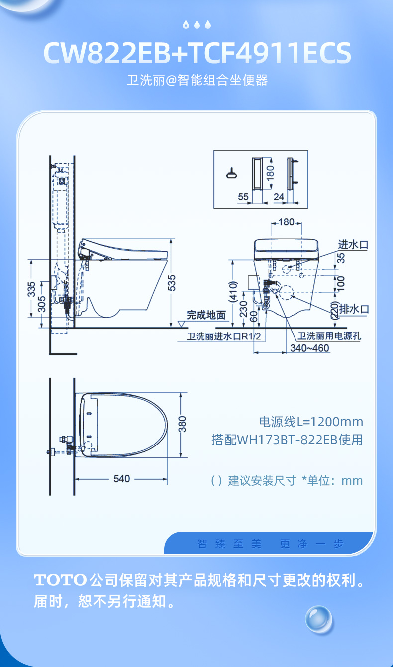 TOTO智能壁挂马桶悬空式坐便器隐藏式水箱CW822+TCF4911CS(02)