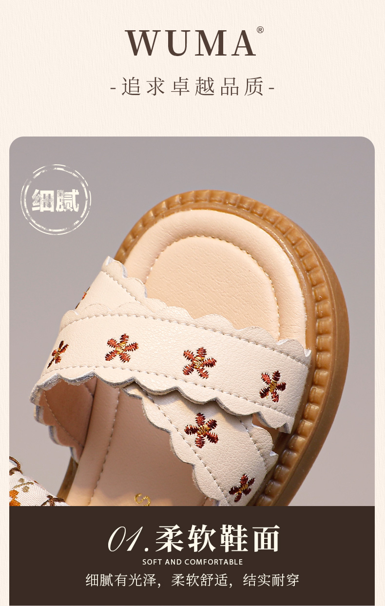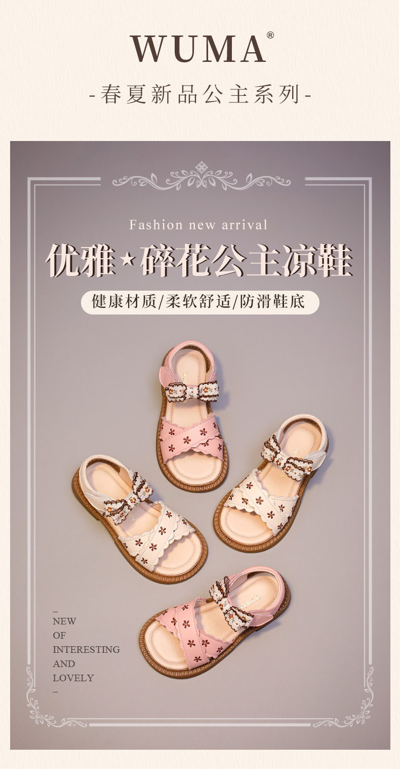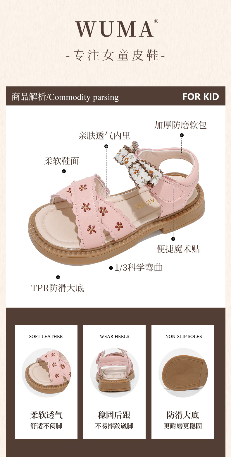 舞玛儿童真皮露趾凉鞋2025新款女童夏季女孩子软底时尚鞋子小香风