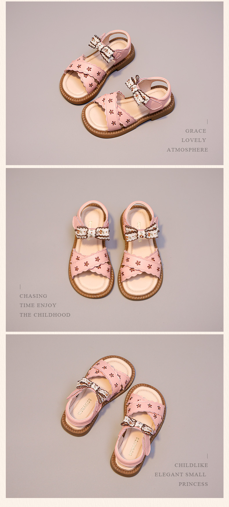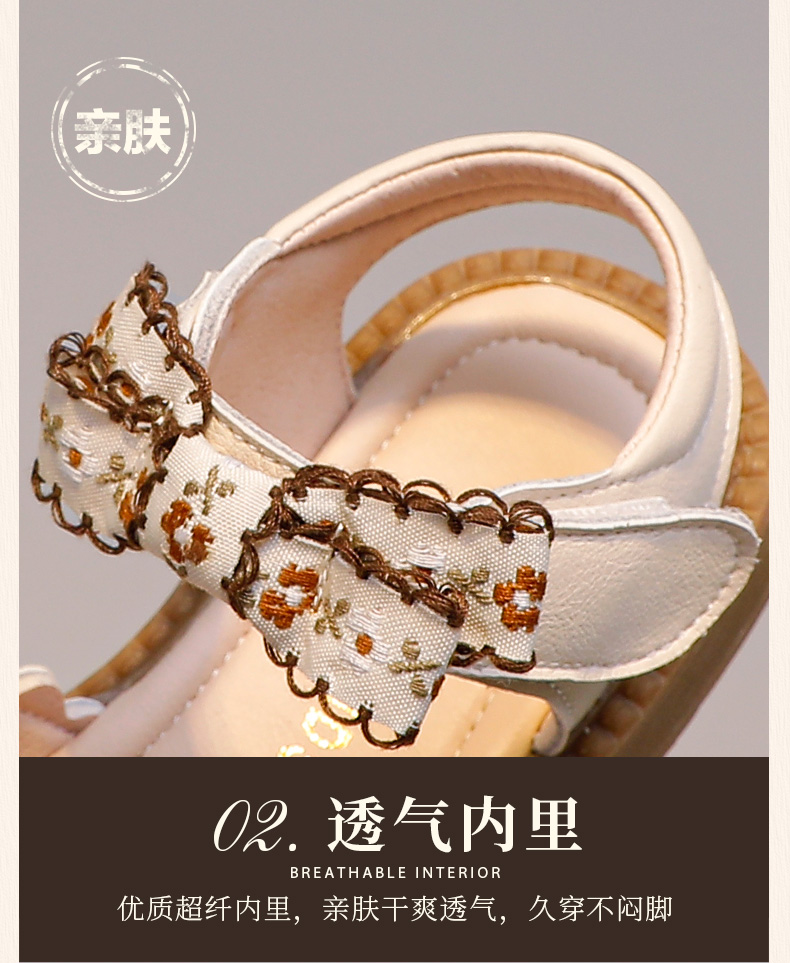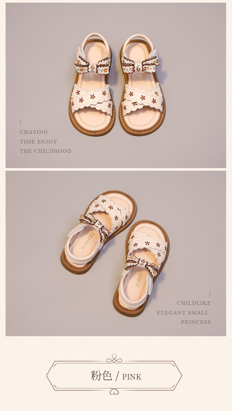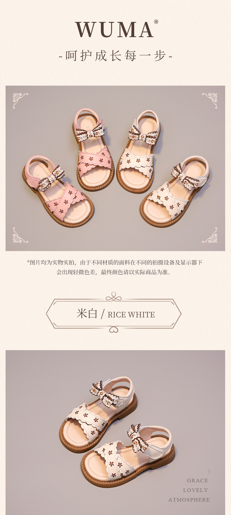 舞玛儿童真皮露趾凉鞋2025新款女童夏季女孩子软底时尚鞋子小香风