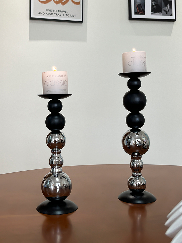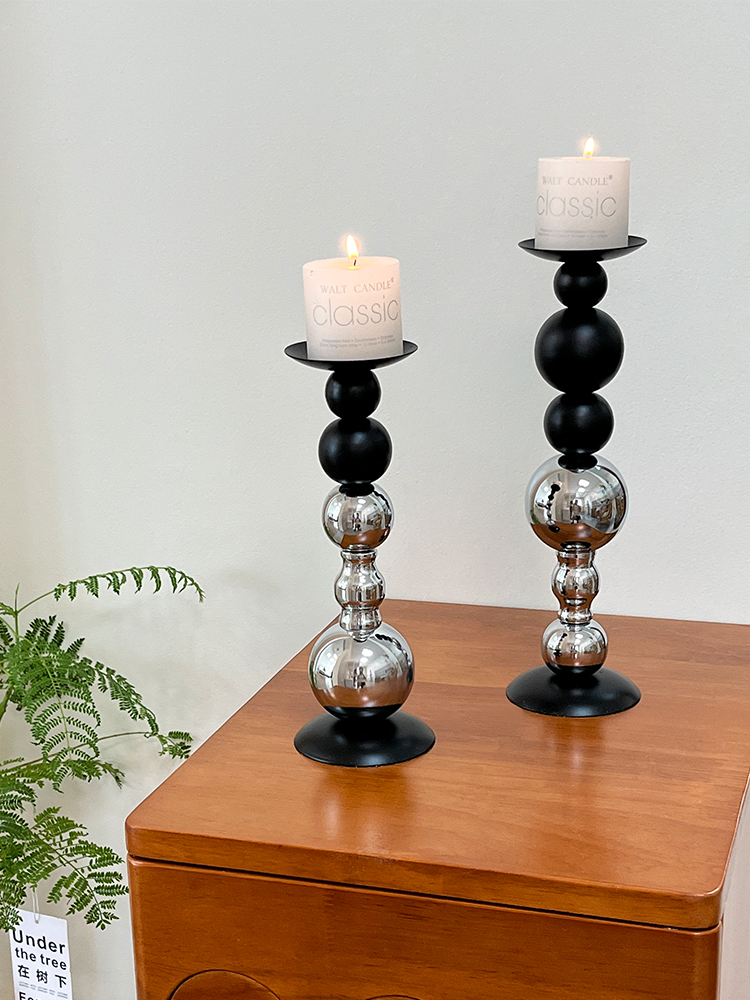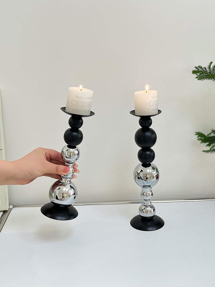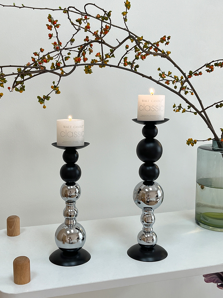 轻奢高级感黑银烛台装饰品摆件烛光餐桌香薰蜡烛浪漫氛围场景布置
