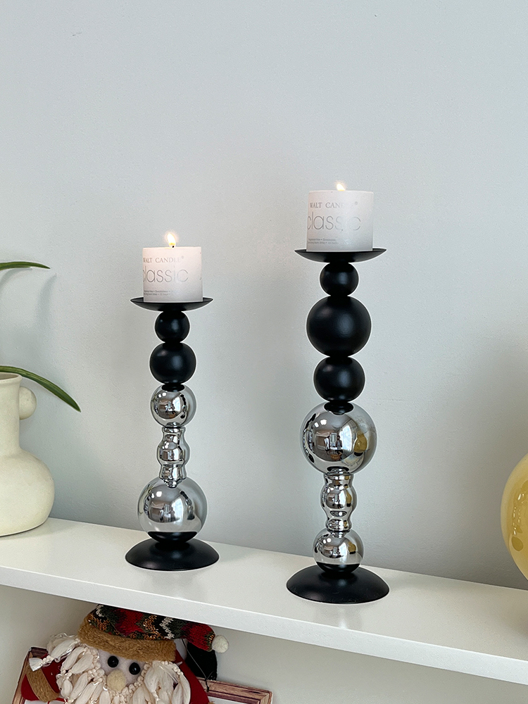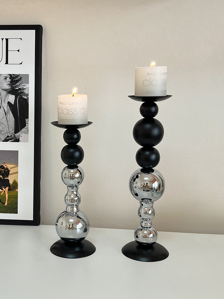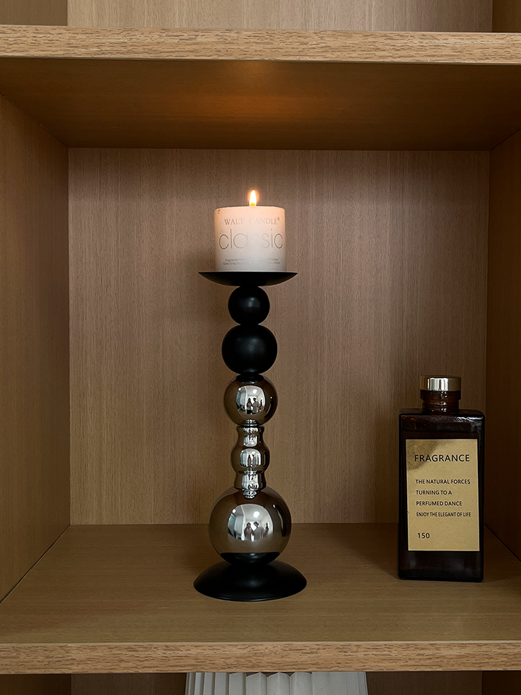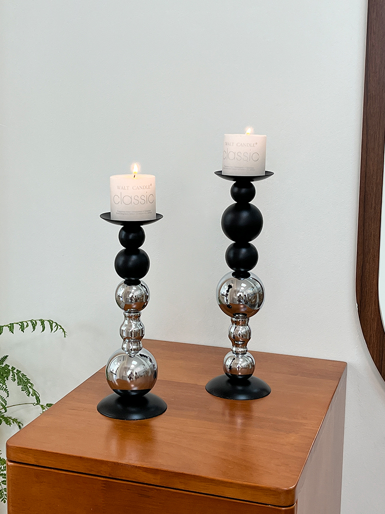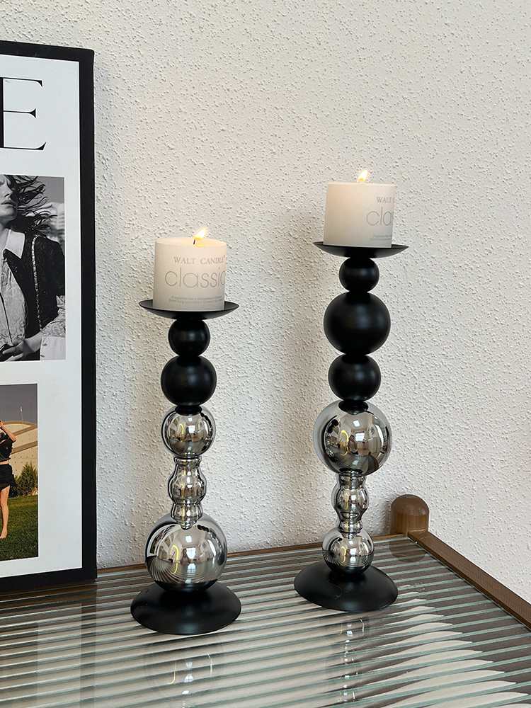 轻奢高级感黑银烛台装饰品摆件烛光餐桌香薰蜡烛浪漫氛围场景布置