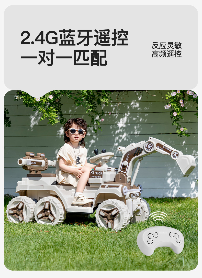 儿童挖掘机玩具车可坐人玩具女男孩遥控电动挖土机可坐工程车勾机