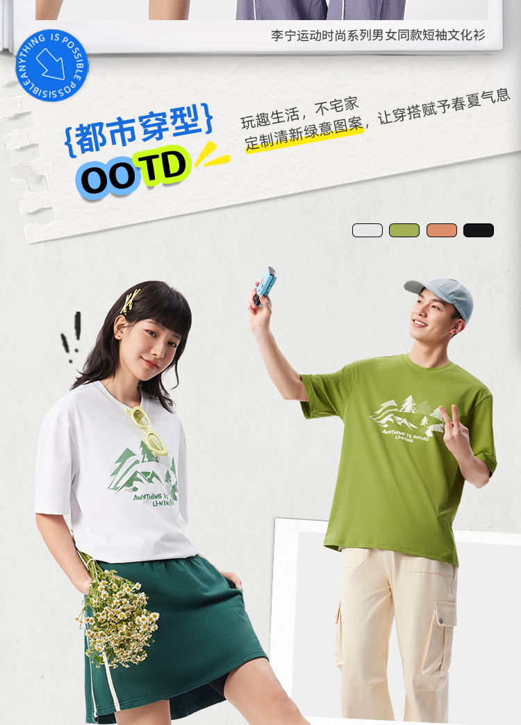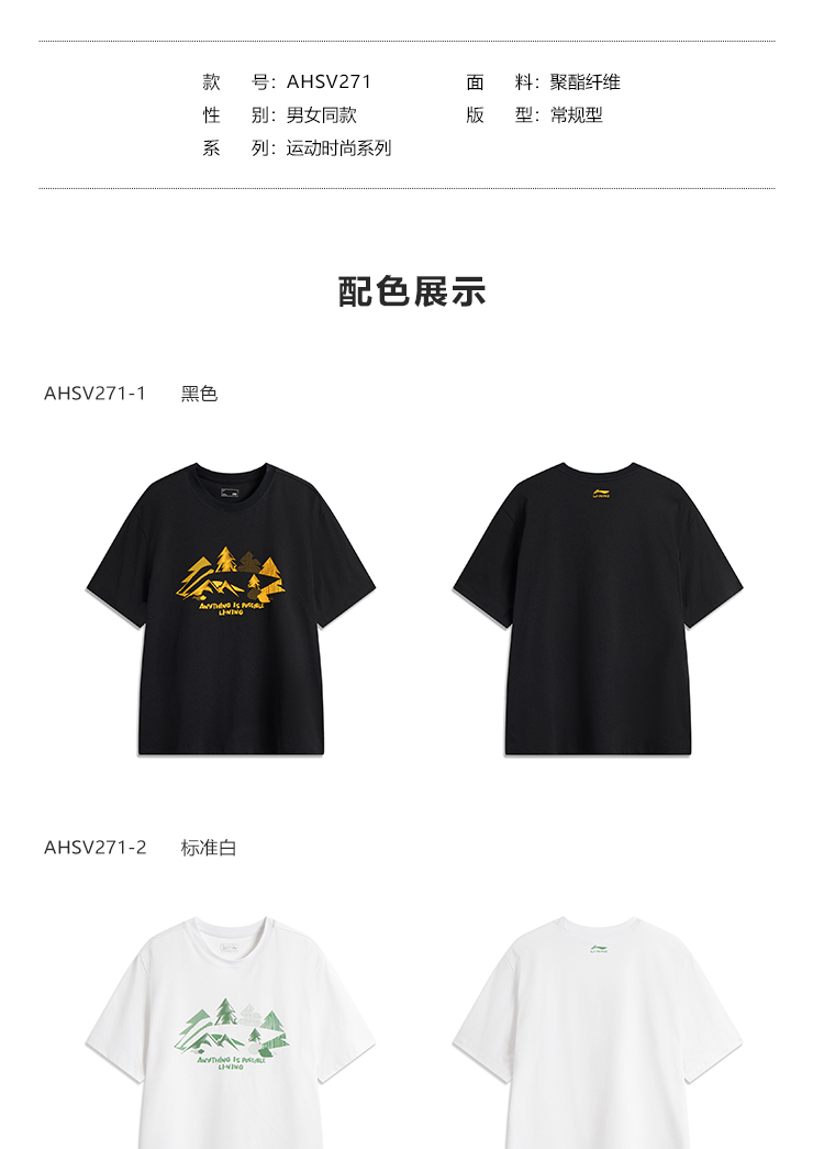 李宁速干短袖男士夏季2025新款情侣款圆领半袖休闲上衣运动T恤女