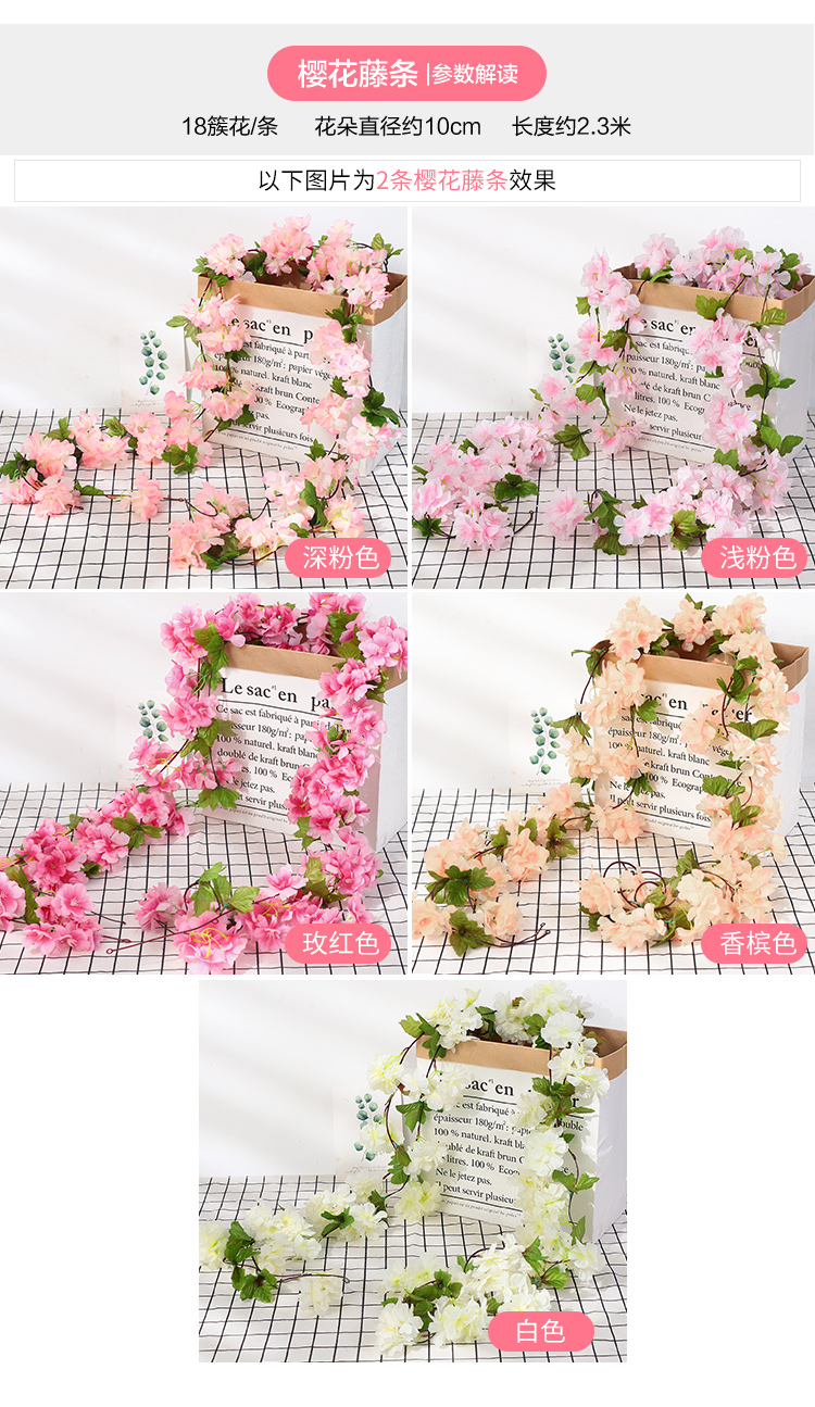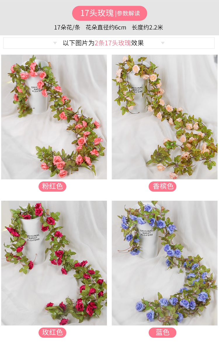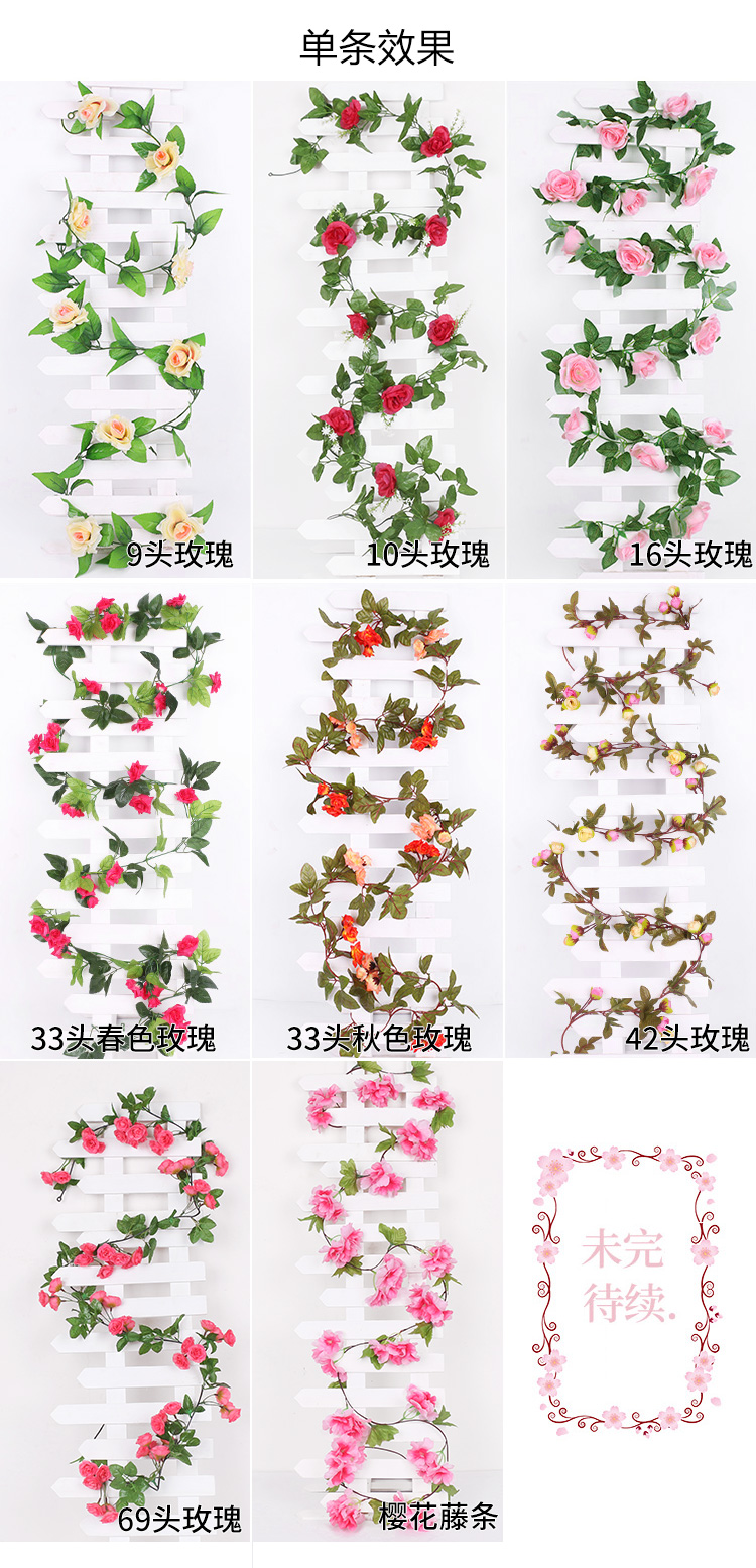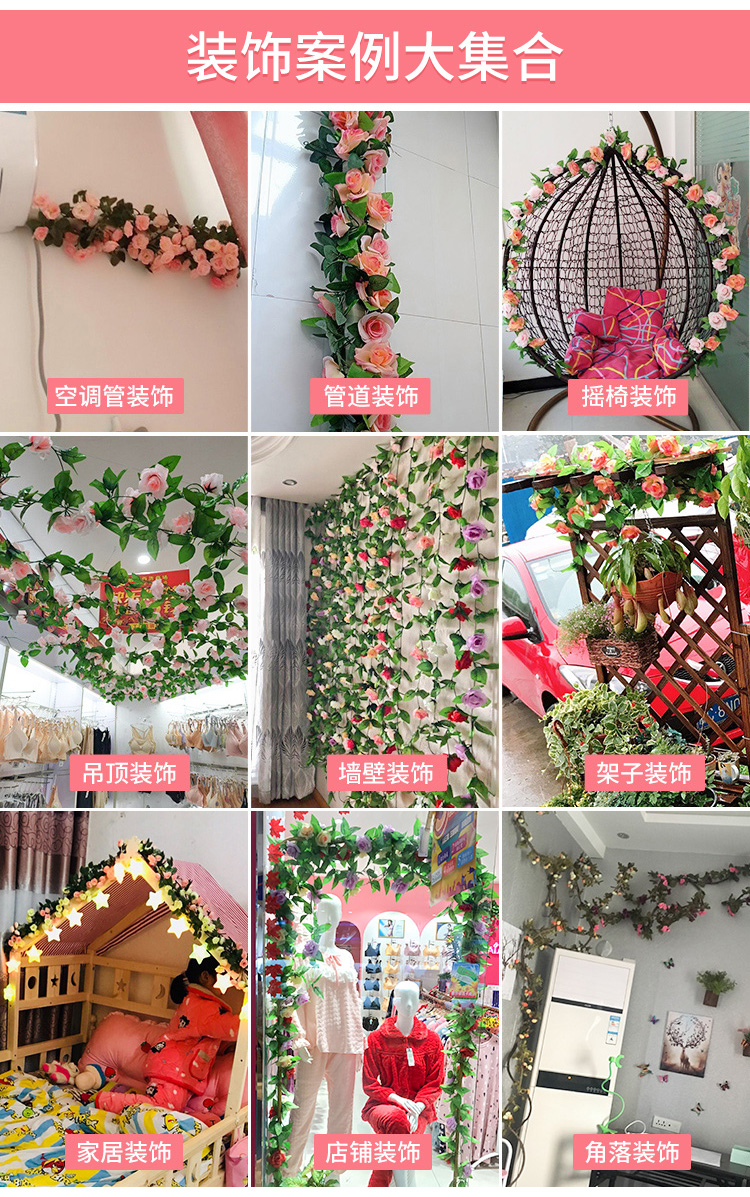 仿真玫瑰假花藤条蔓壁挂缠绕空调水管道遮挡装饰客厅吊顶塑料植物