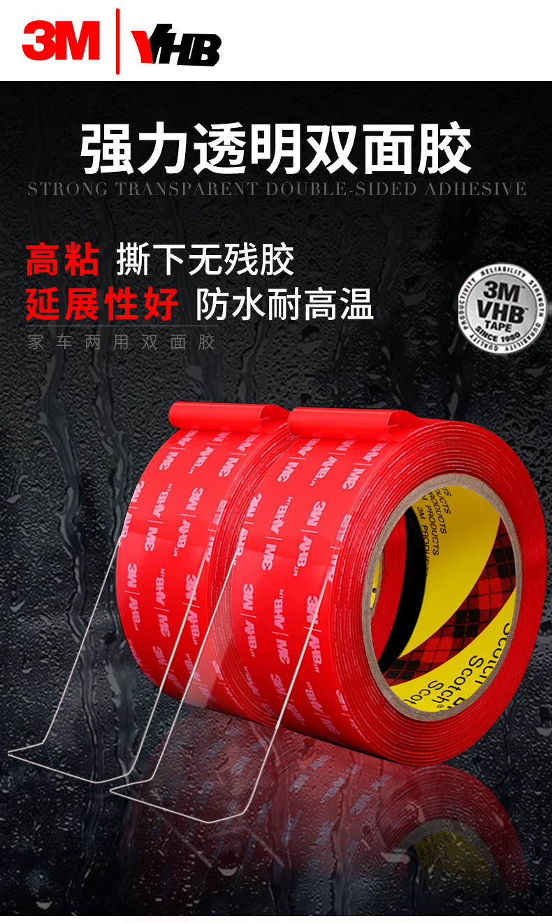 3M4910透明车用双面胶强力无痕玻璃金属固定防水高粘度3m4905胶带