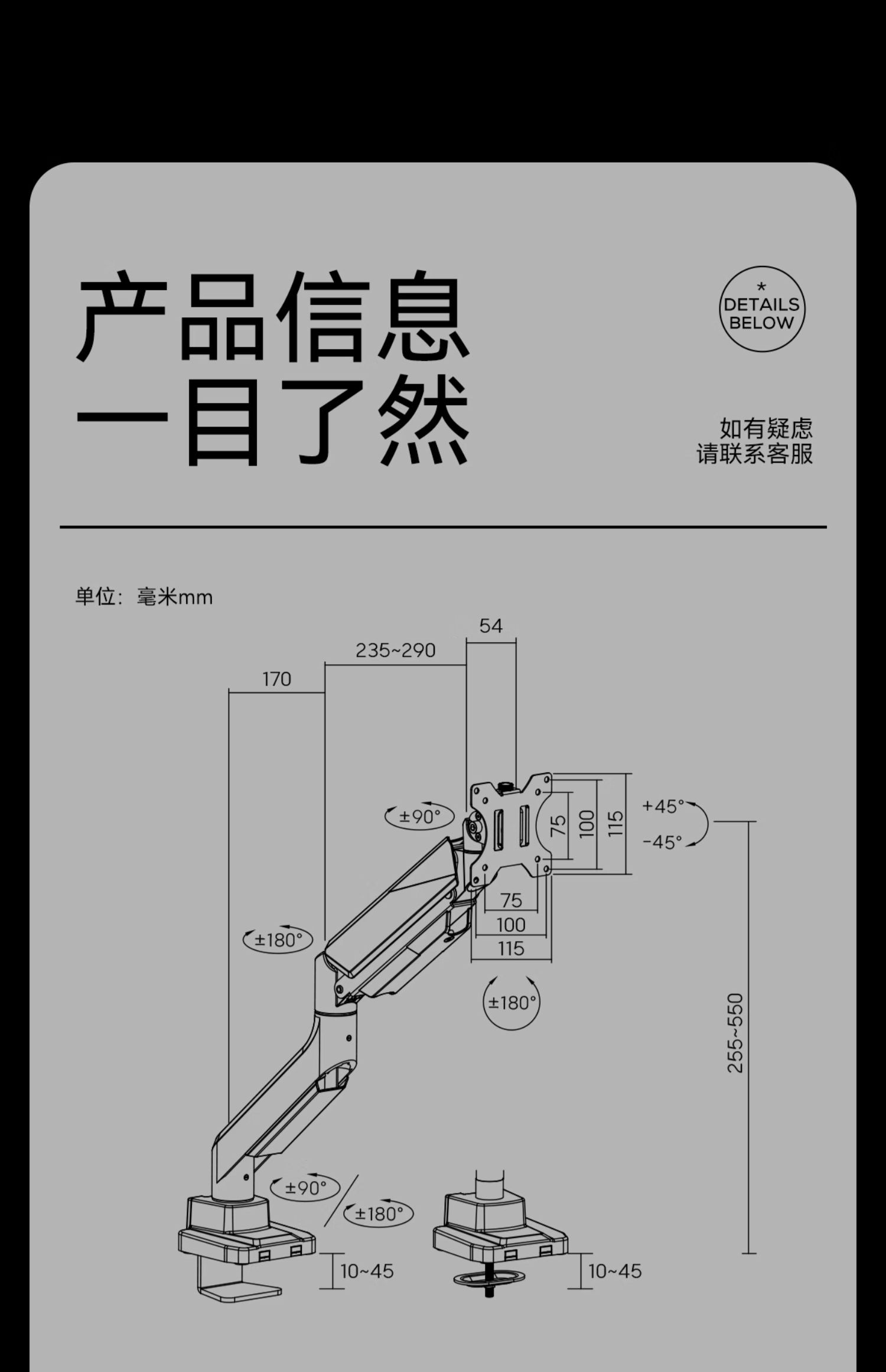 松能大承重显示器悬臂支架T9-1B电脑显示屏机械臂双臂升降增高架