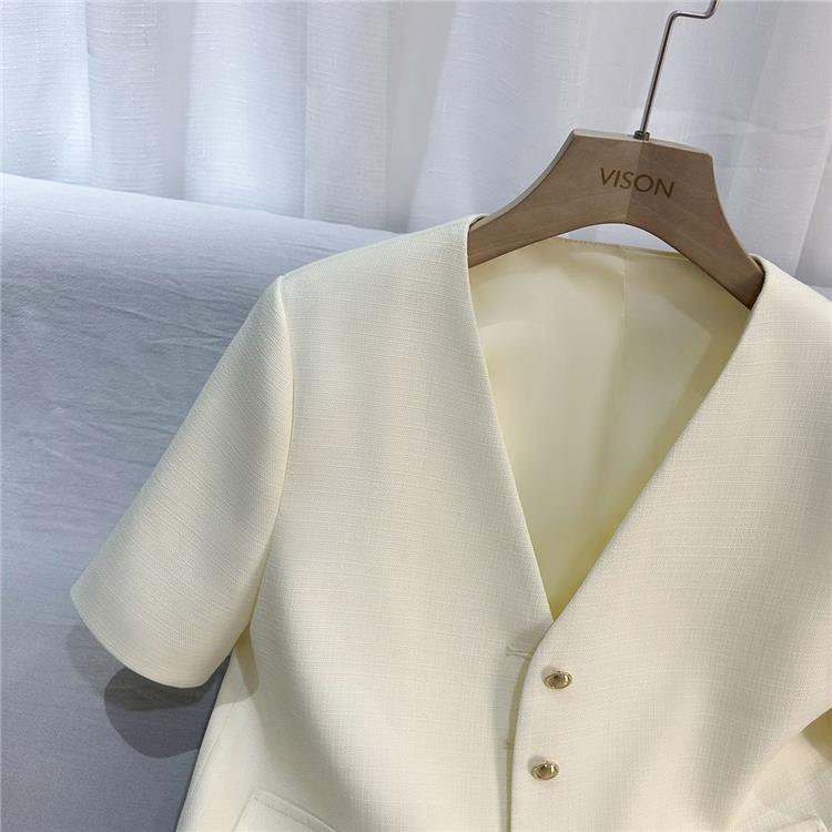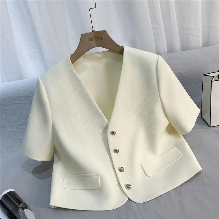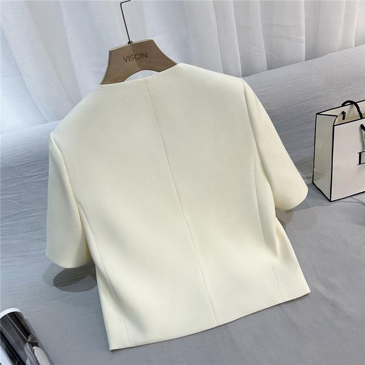 2024夏季新款米白色短款法式小香风气质西装外套女小个子百搭上衣