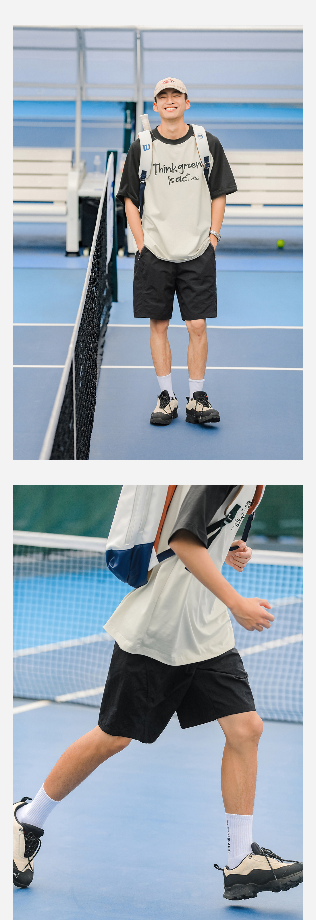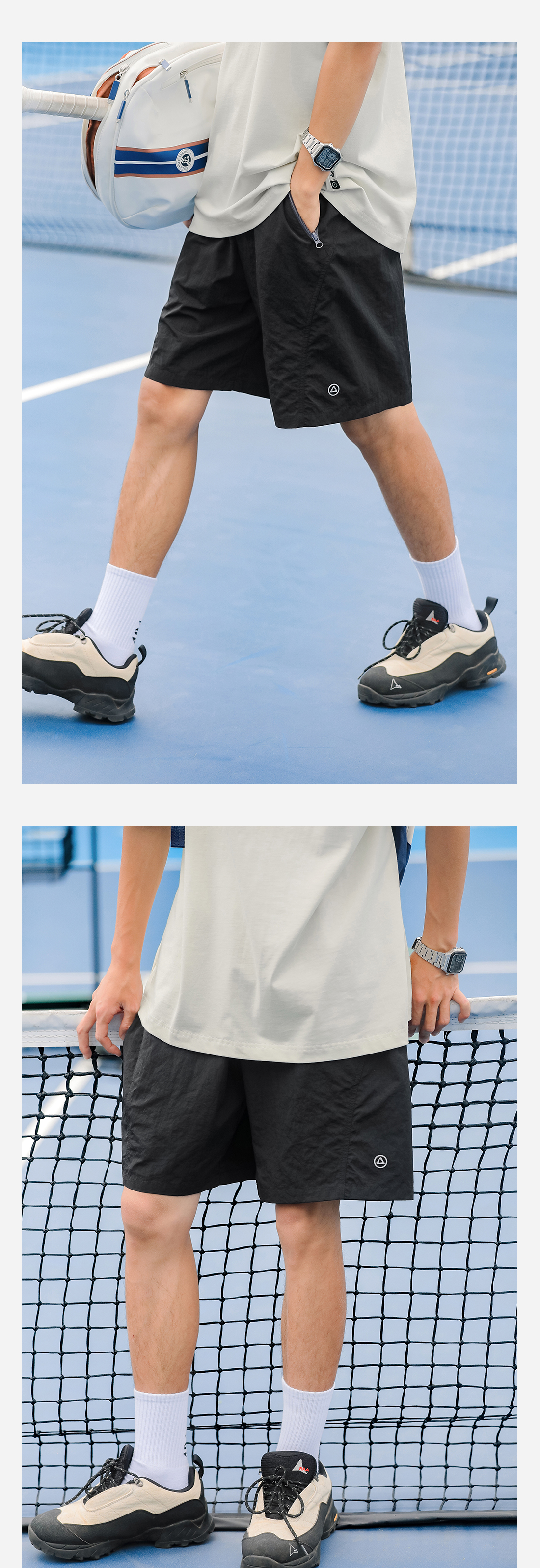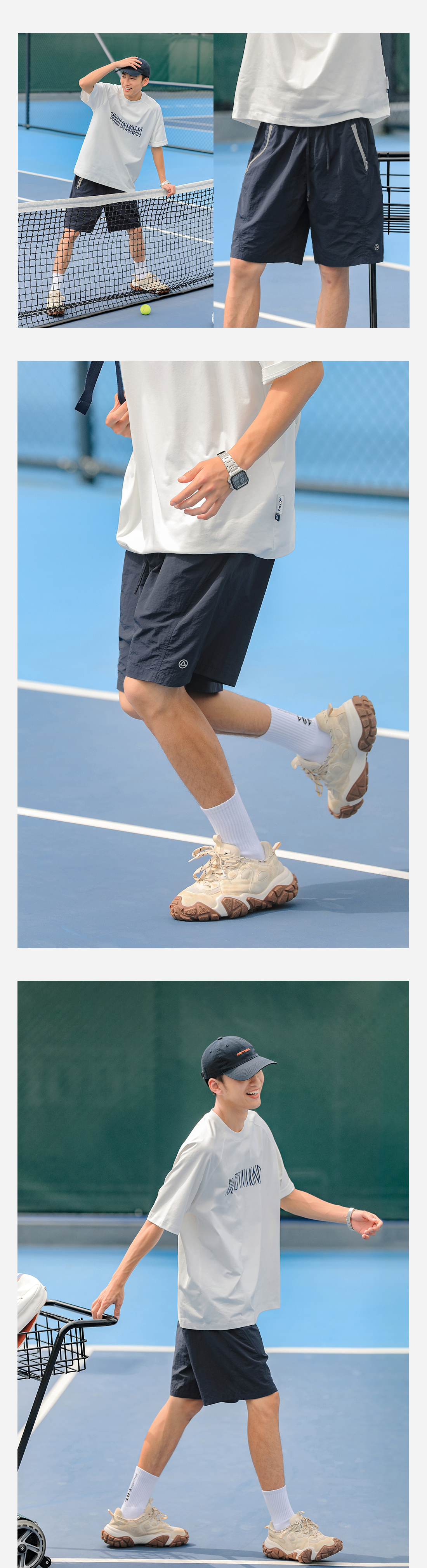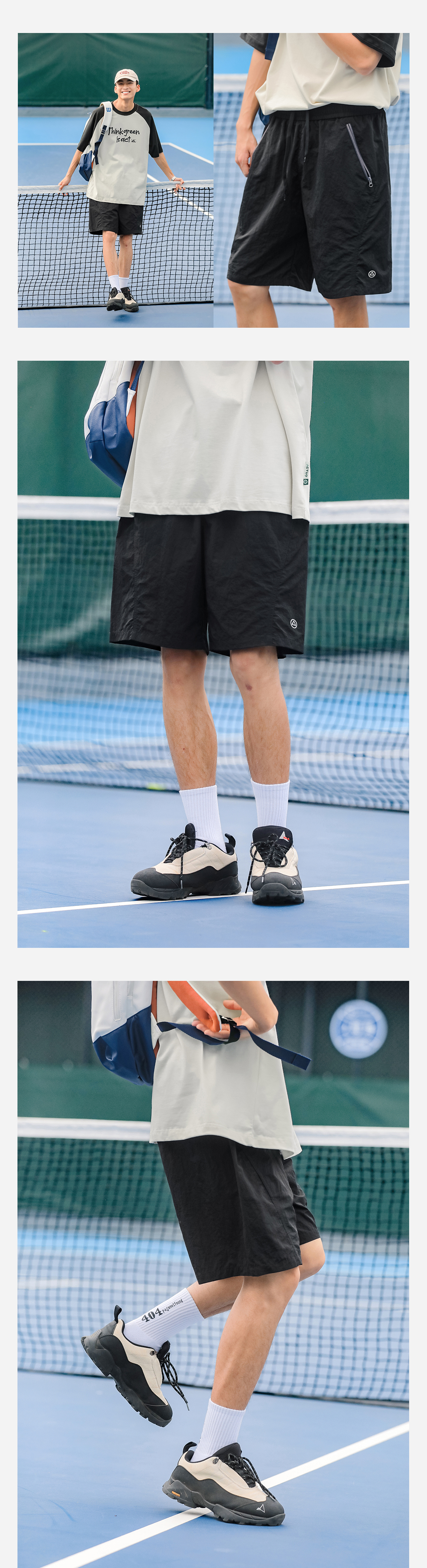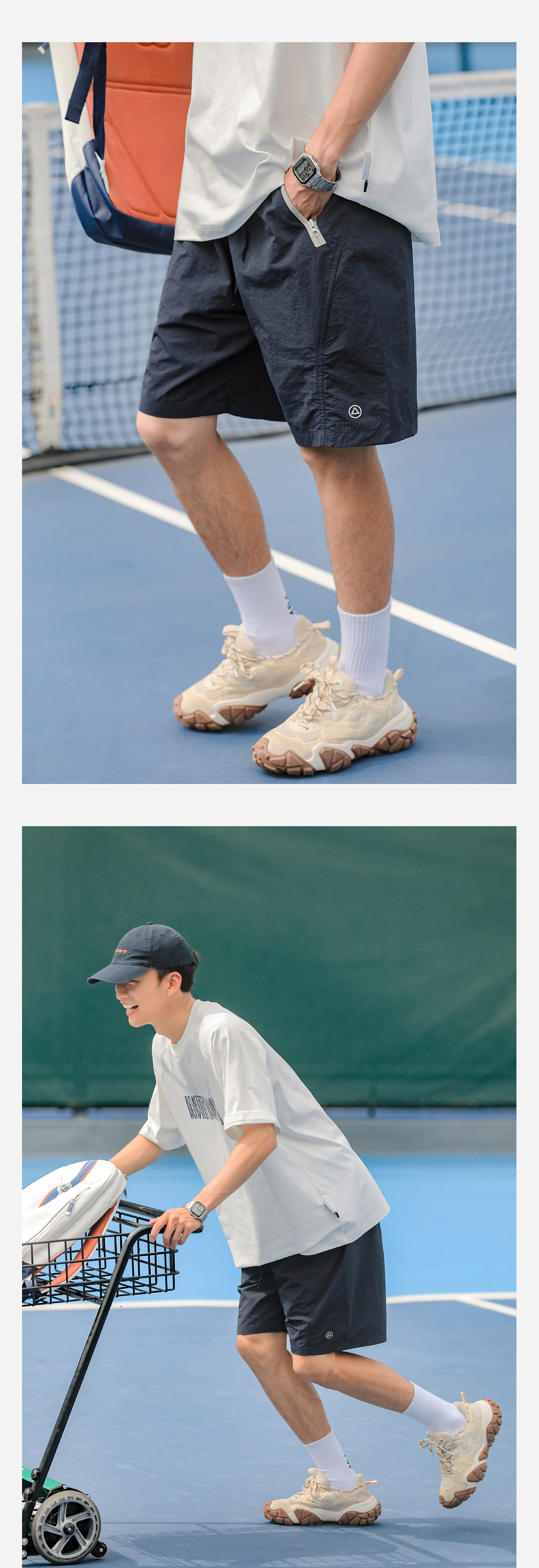 吕小虎美式休闲撞色口袋短裤男士2025年夏季薄款速干健身运动裤潮