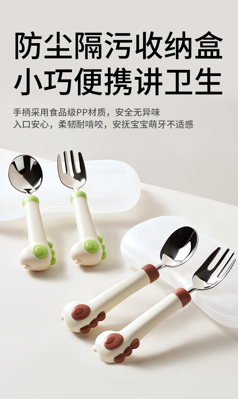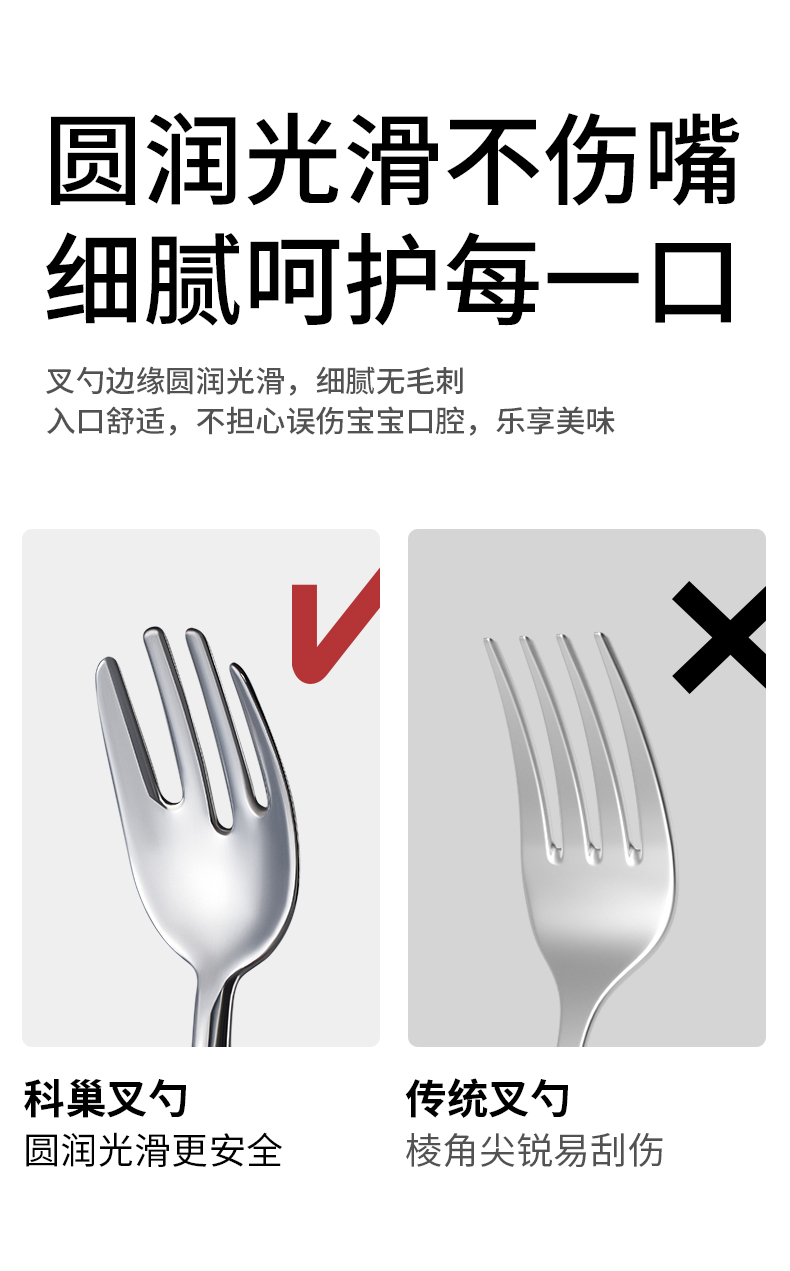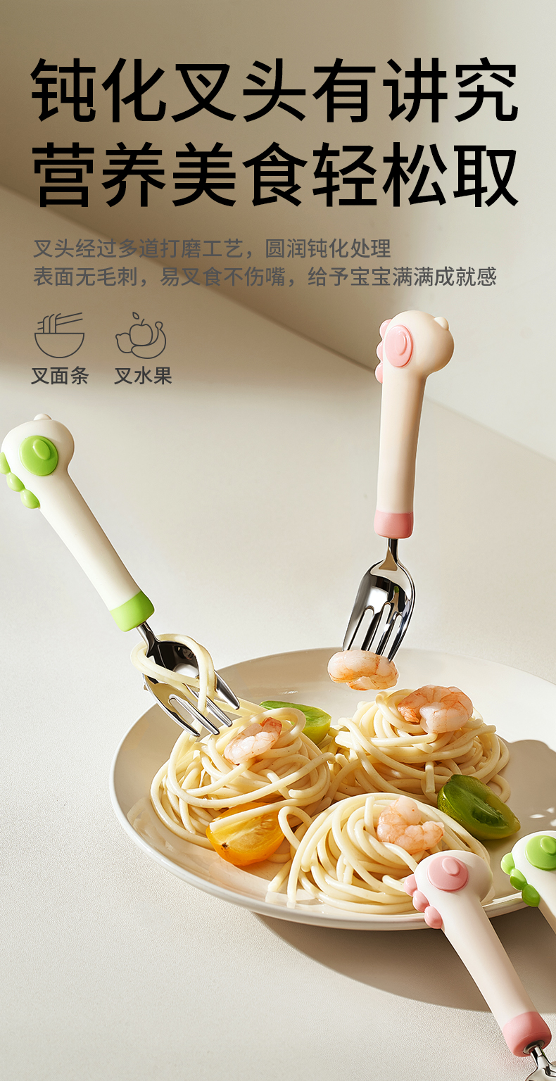 科巢宝宝勺子儿童餐具训练勺叉子自主进食饭勺吃饭婴儿不锈钢叉勺
