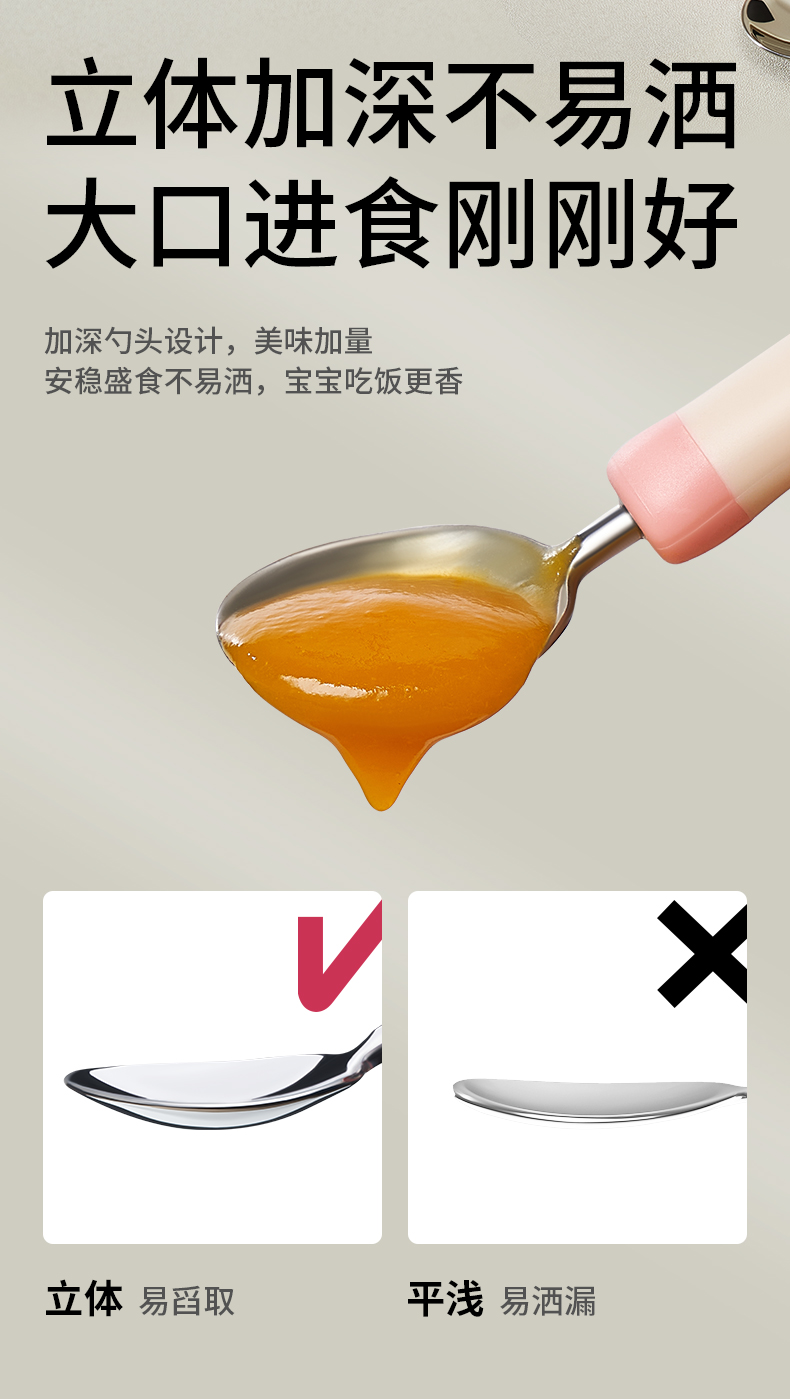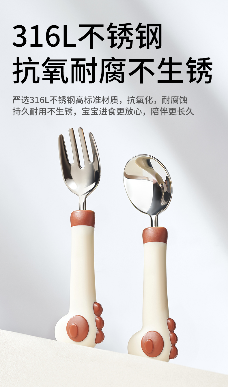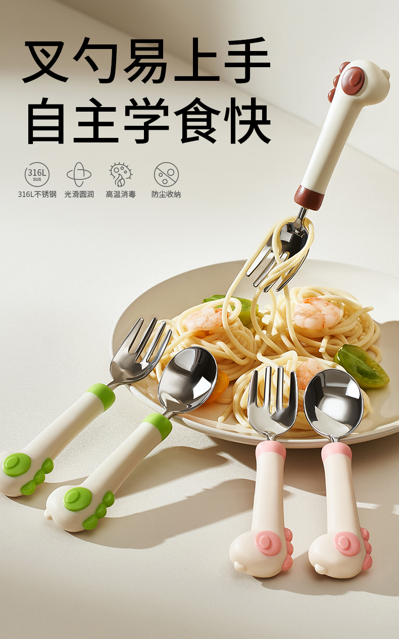 科巢宝宝勺子儿童餐具训练勺叉子自主进食饭勺吃饭婴儿不锈钢叉勺