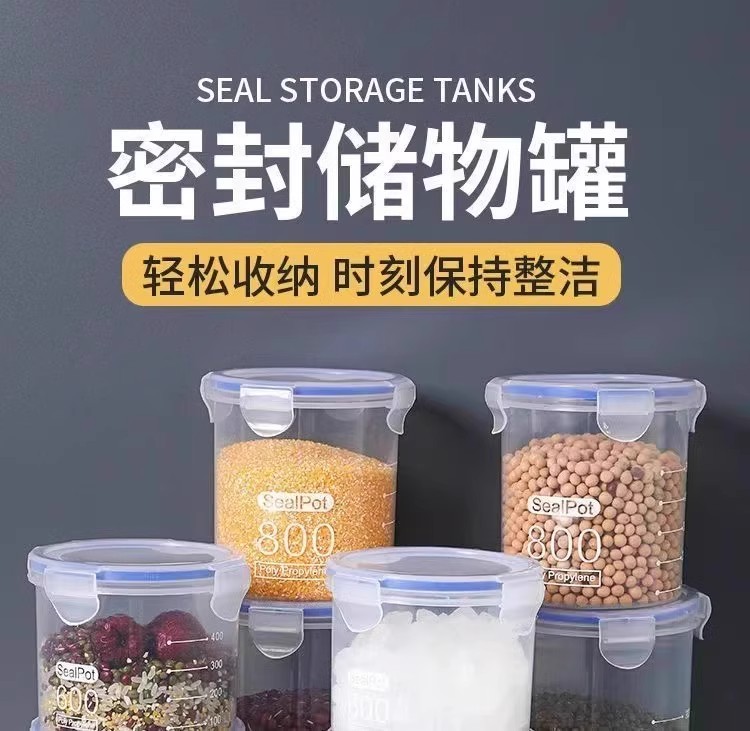 透明塑料密封罐奶粉罐圆形带盖食品罐子厨房五谷杂粮收纳盒储物罐