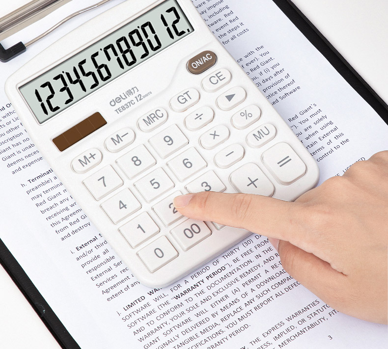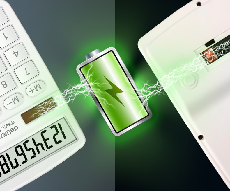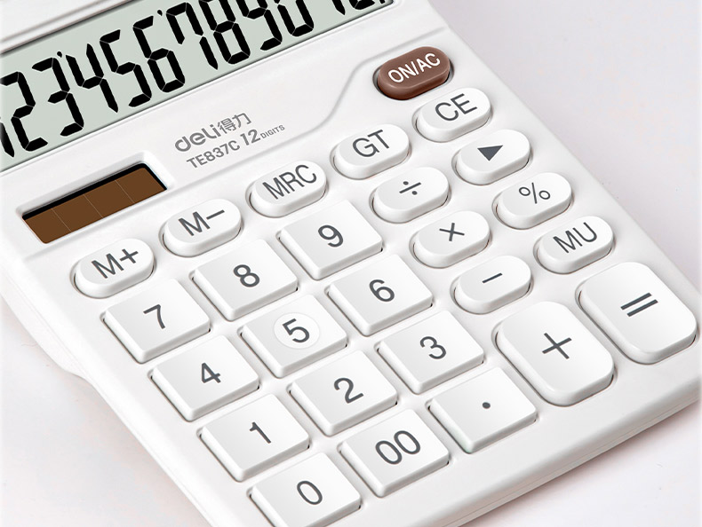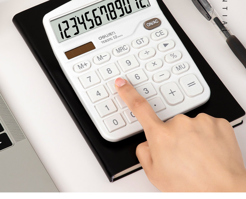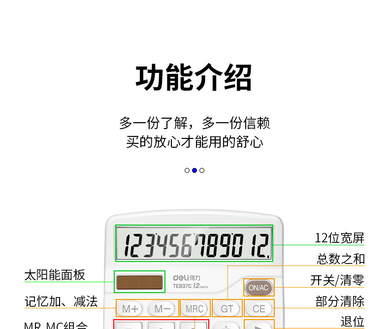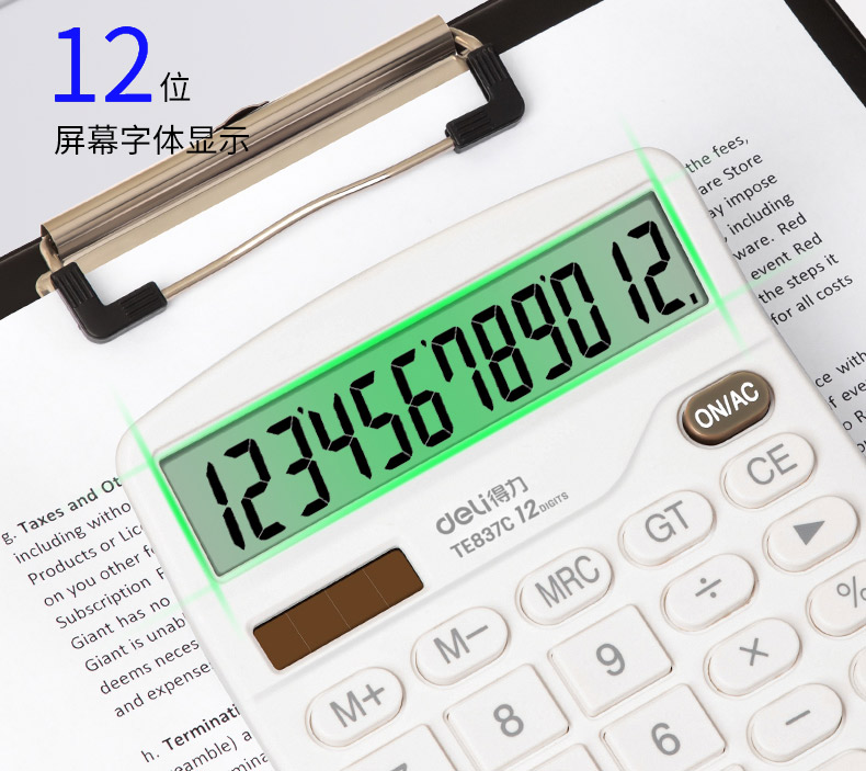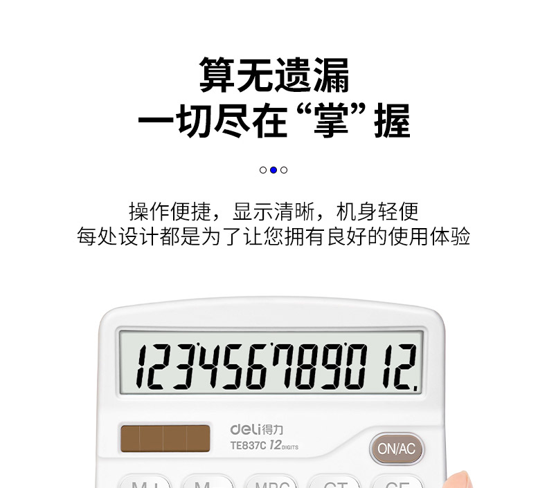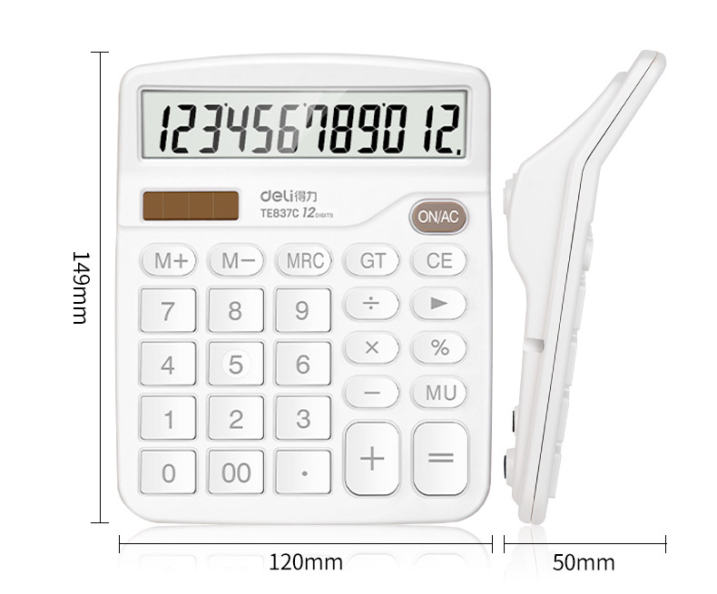 得力TE837C计算机大屏12位数显双电源太阳能财务办公计算器学生用