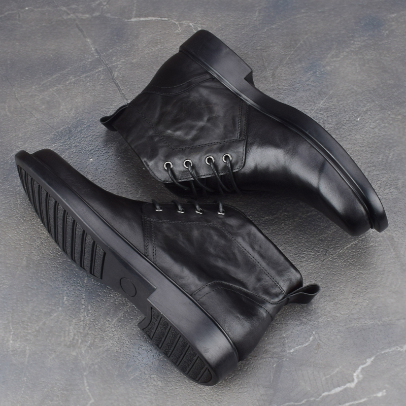 秋冬头层牛皮男士真皮马丁靴休闲百搭防滑中帮商务皮鞋英伦靴子男