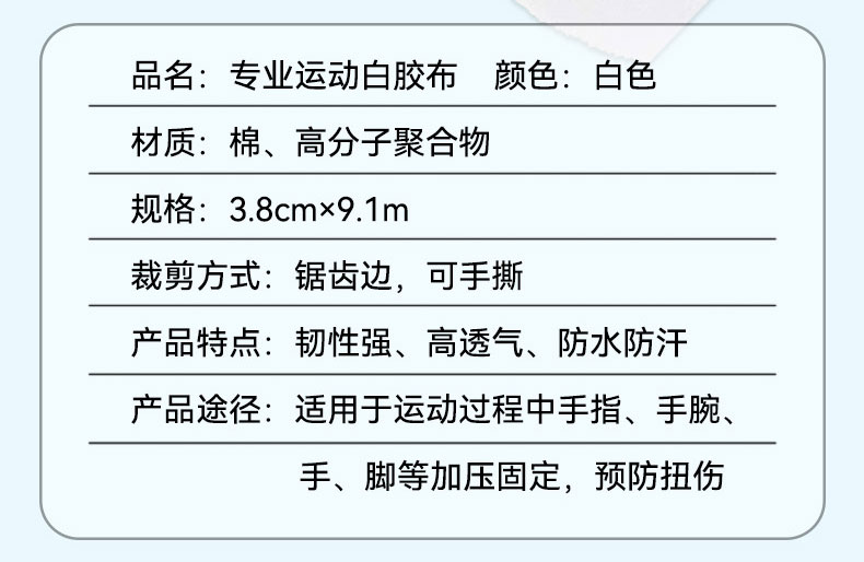帝凯尔皮肤膜白贴布固定打脚胶带手指绷带足球篮球羽毛球关节固定