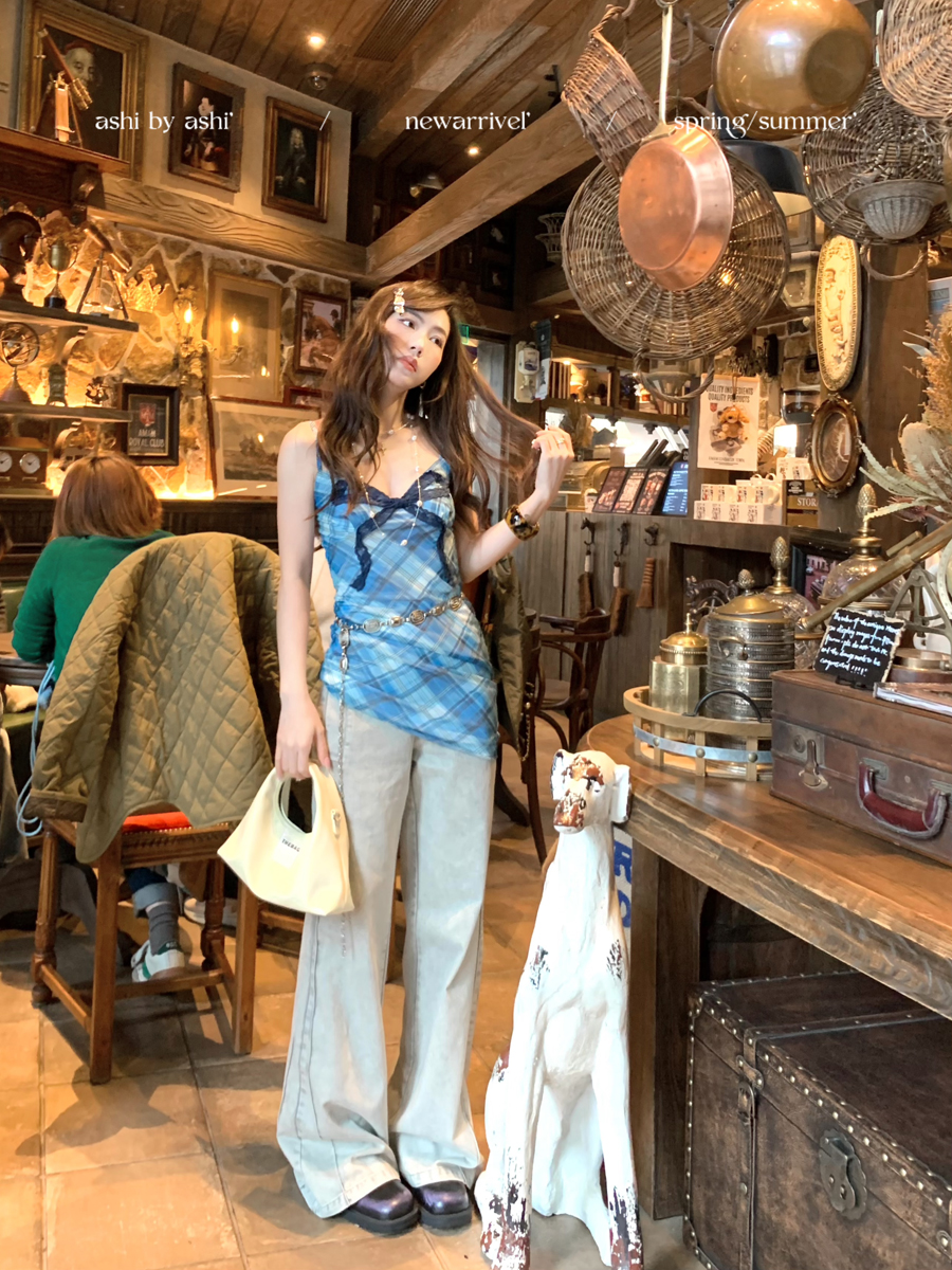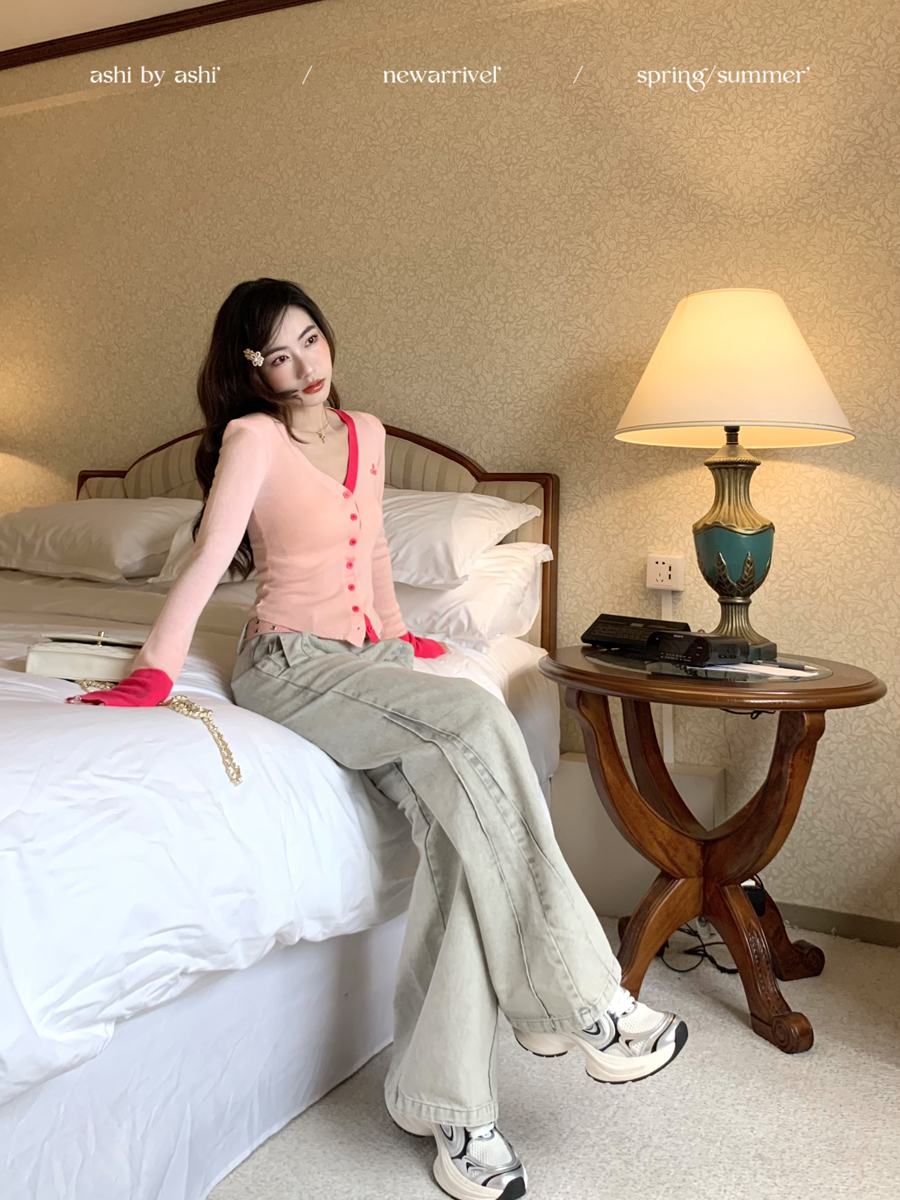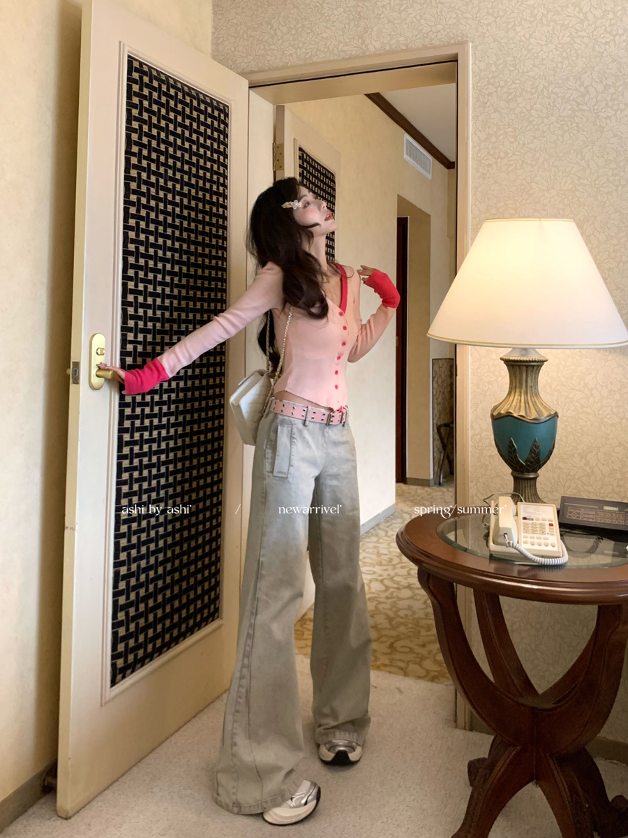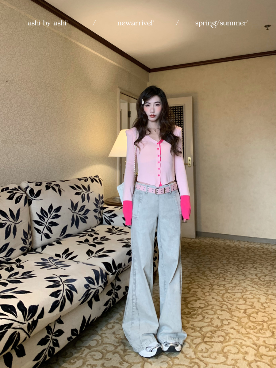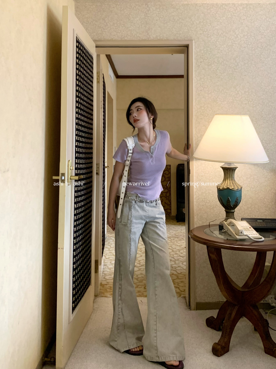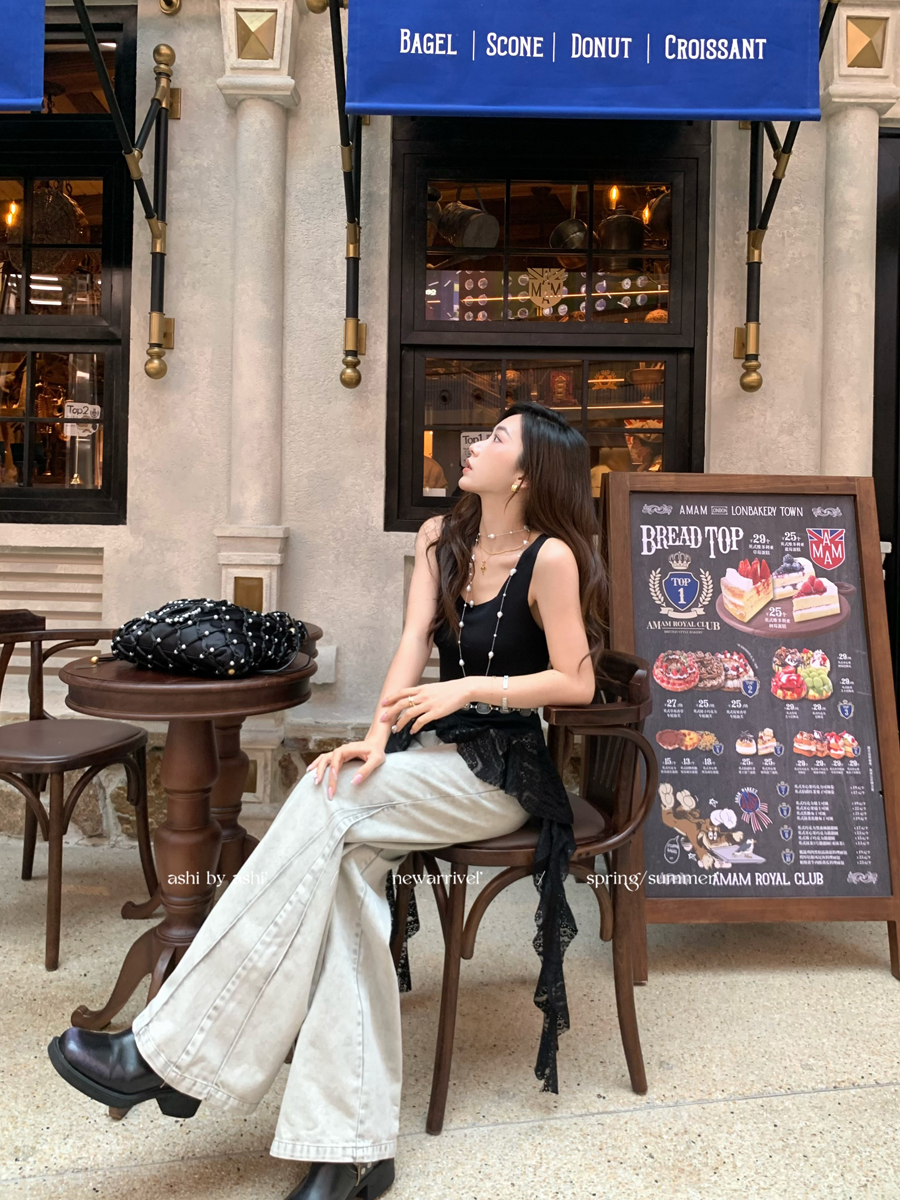 大于诗集 all in好搭 沙色复古水洗牛仔裤女拉链微喇宽松阔腿裤夏