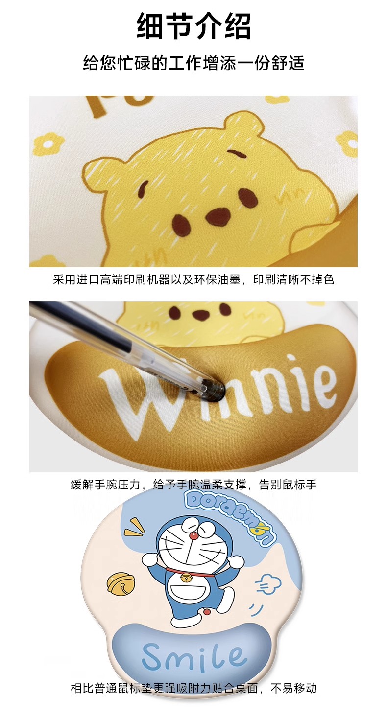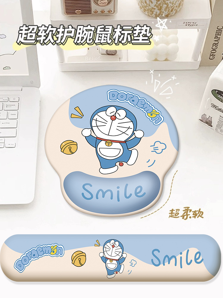 可爱哆啦A梦护腕鼠标垫优质橡胶办公室桌面鼠标防滑垫键盘托女生