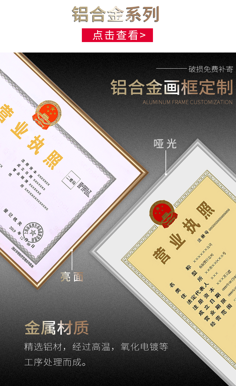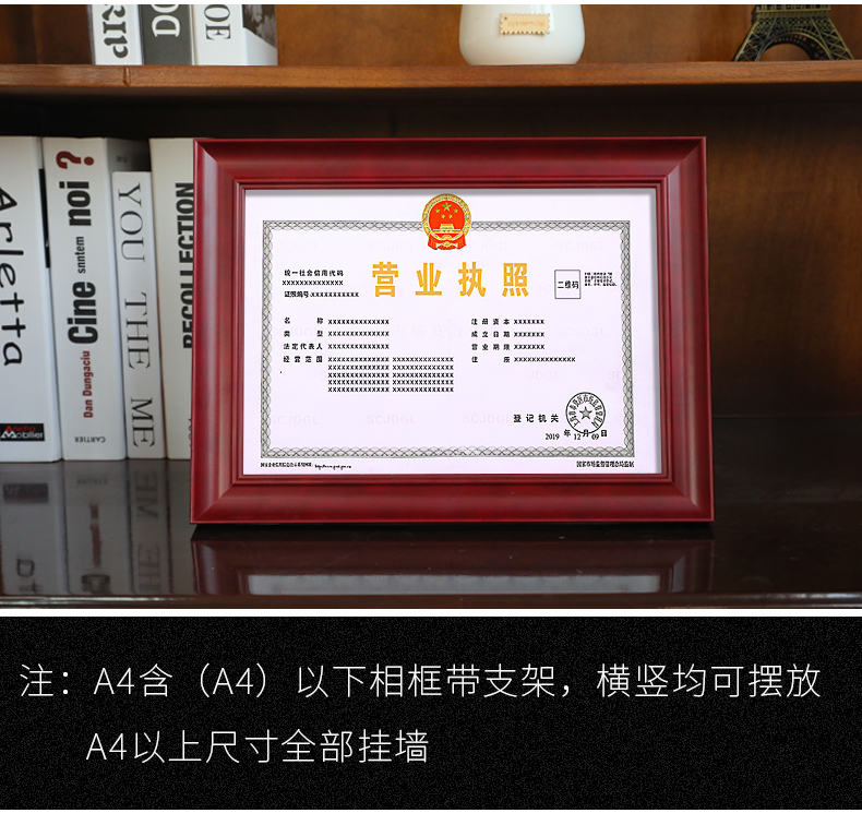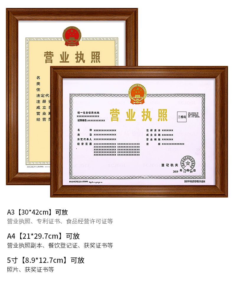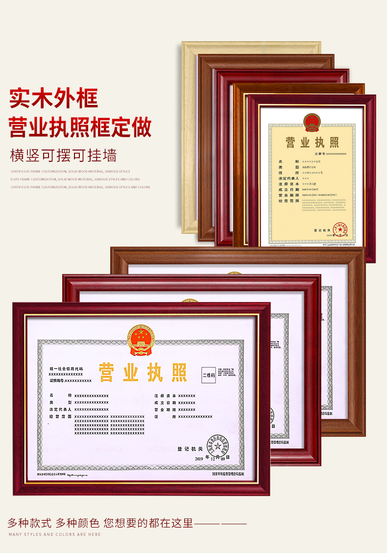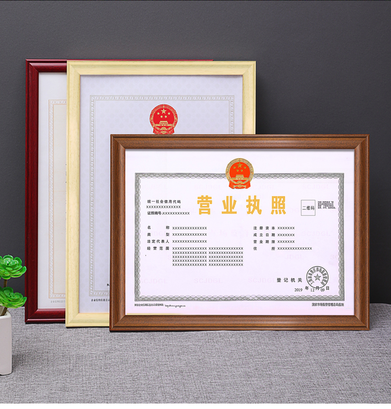 营业执照框正本保护套表挂墙A3工商实木相框A4画框副本许可证框架