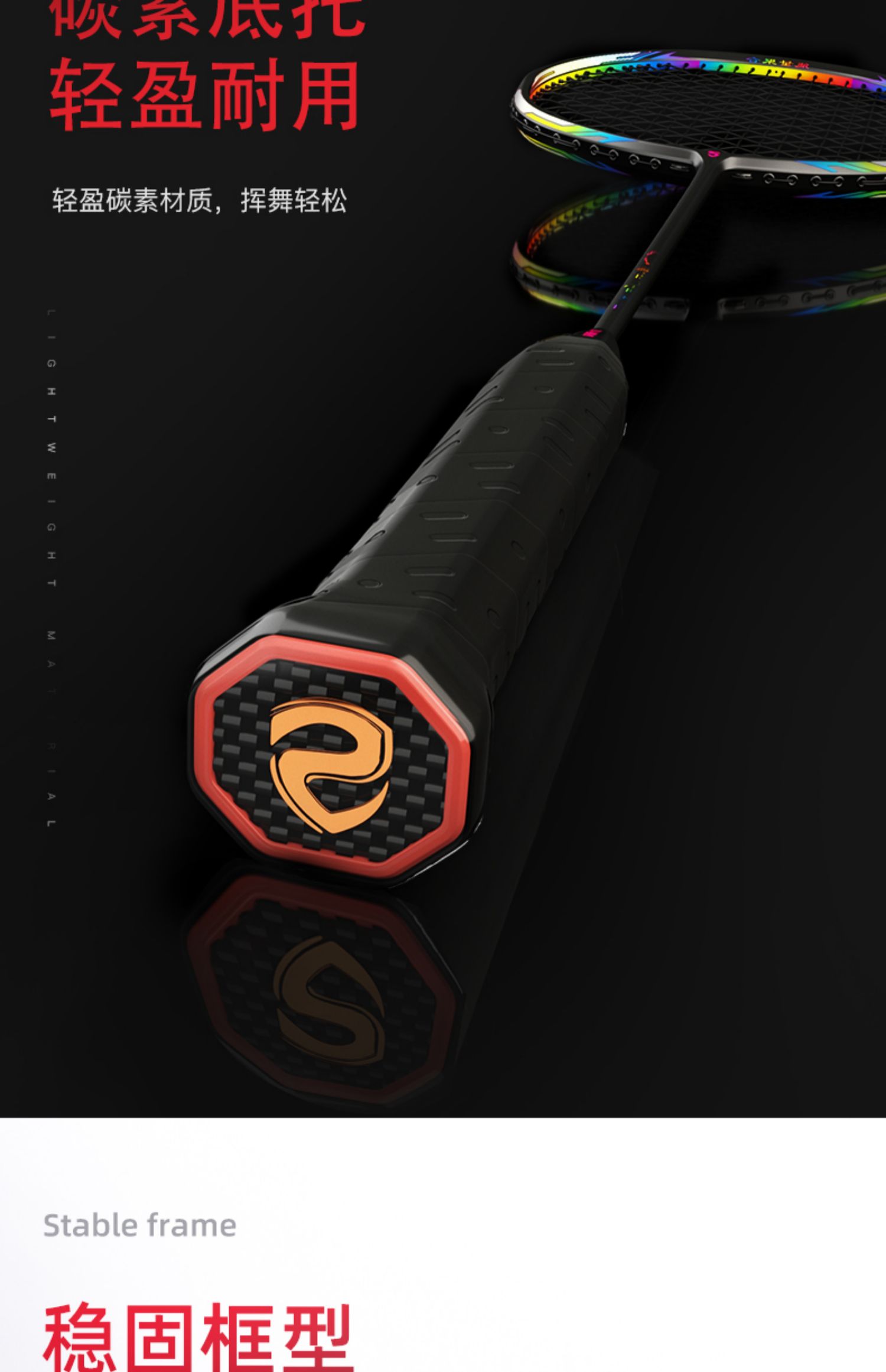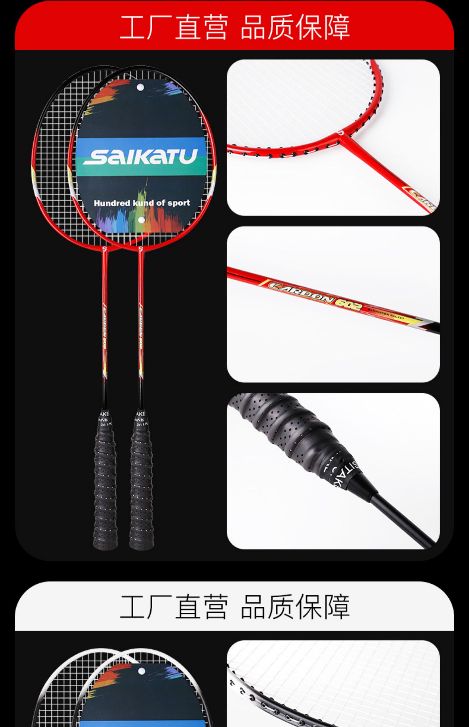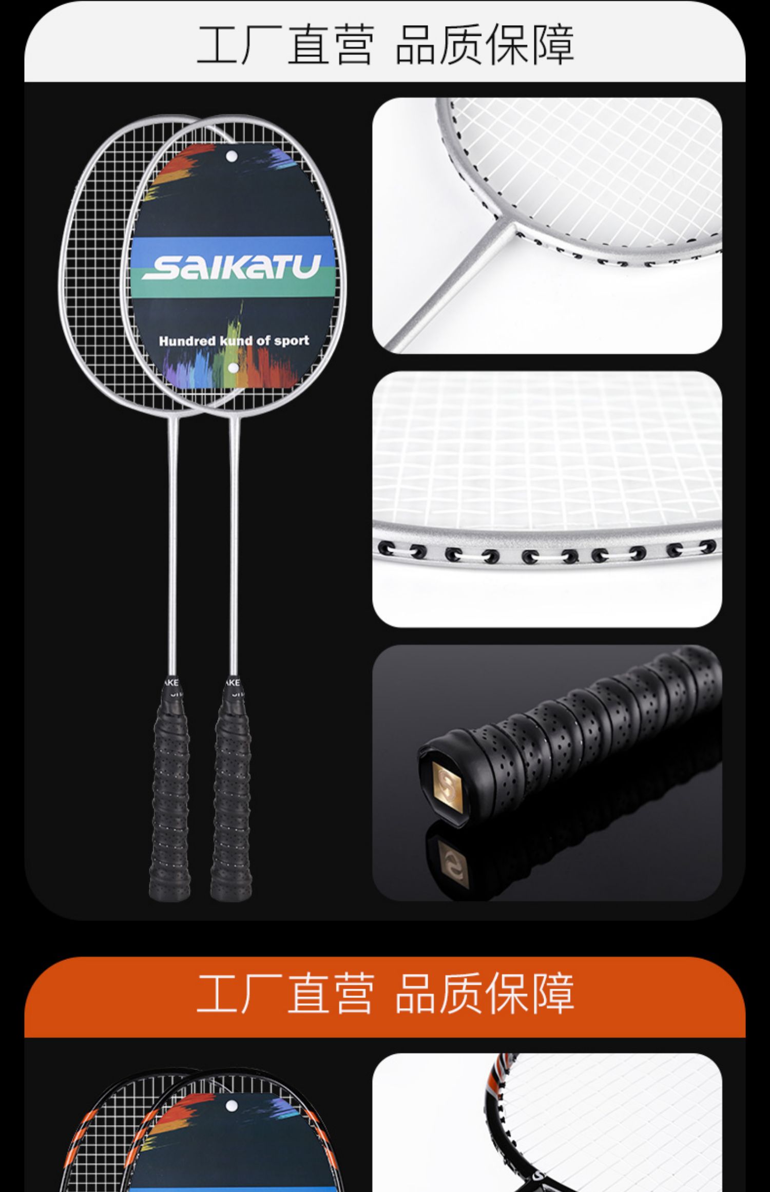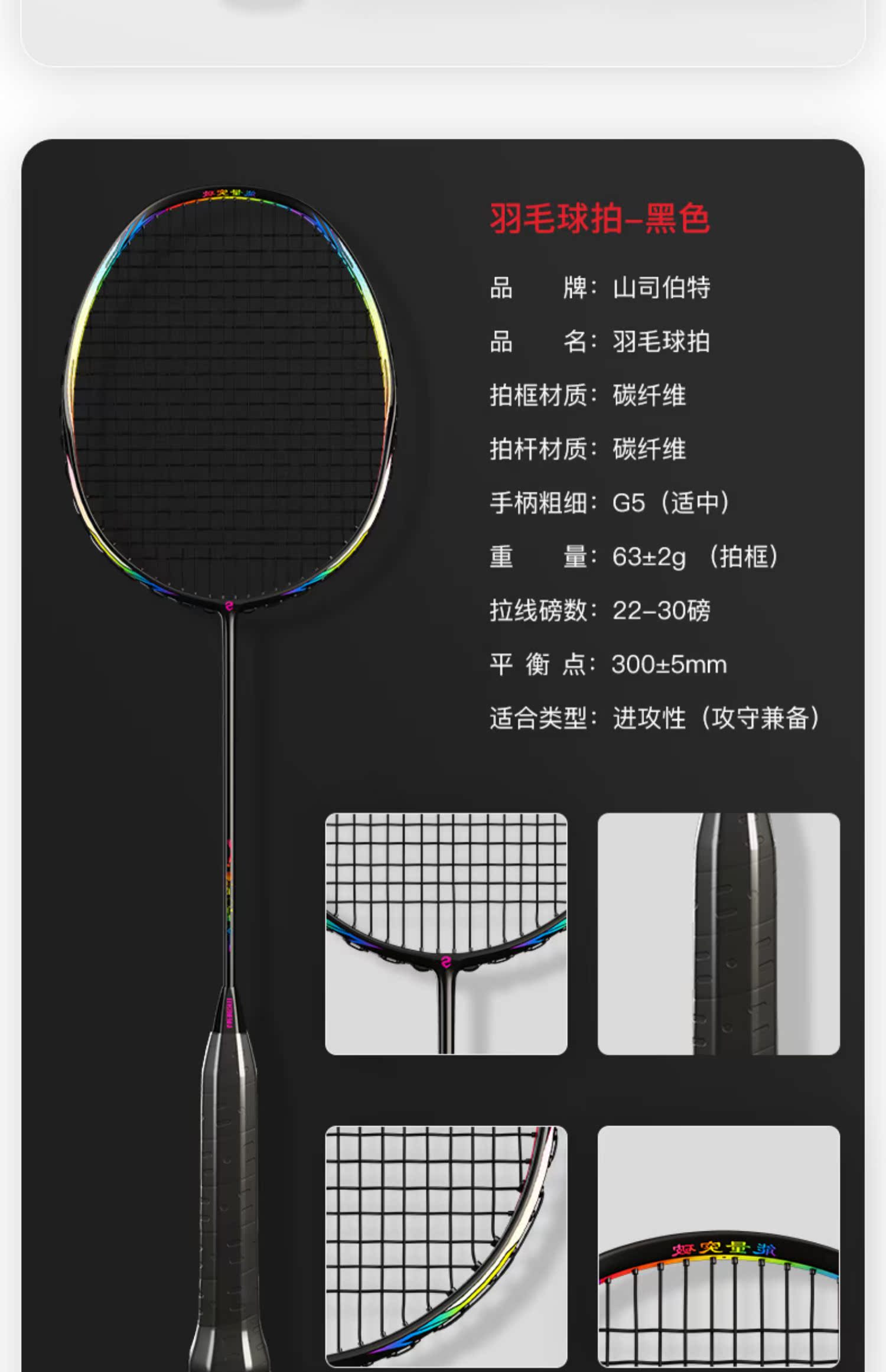送球拍套2支全碳素高弹一体4U8U羽毛球拍超轻60g耐打双拍碳纤维