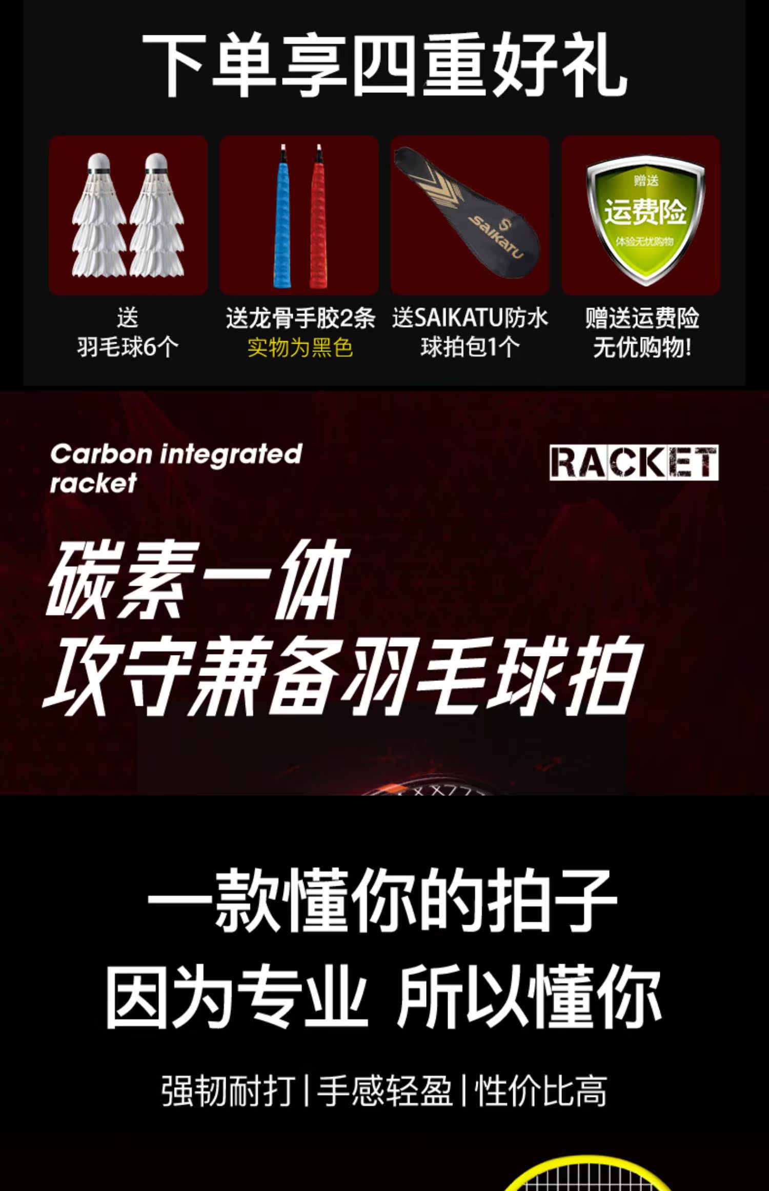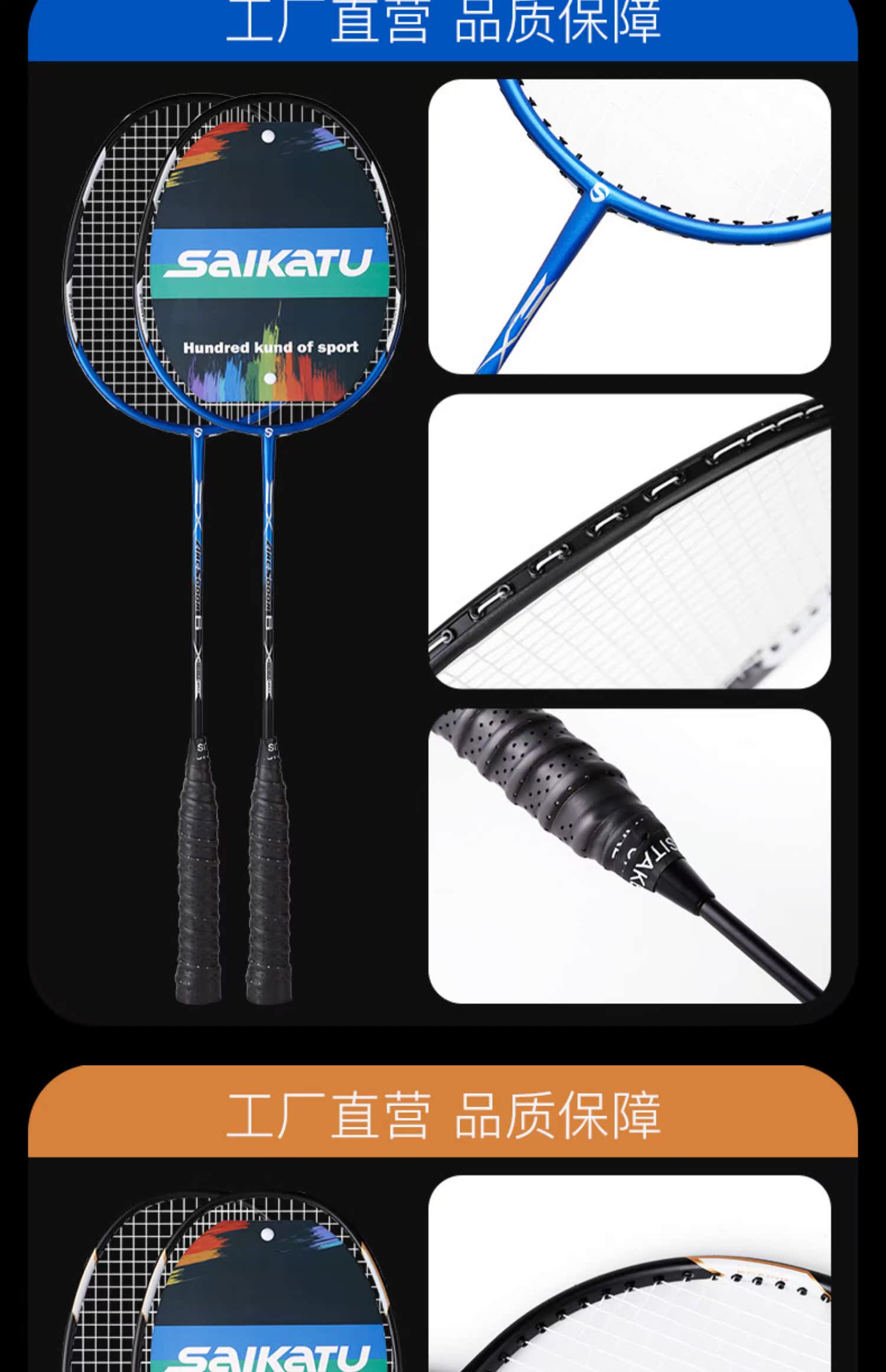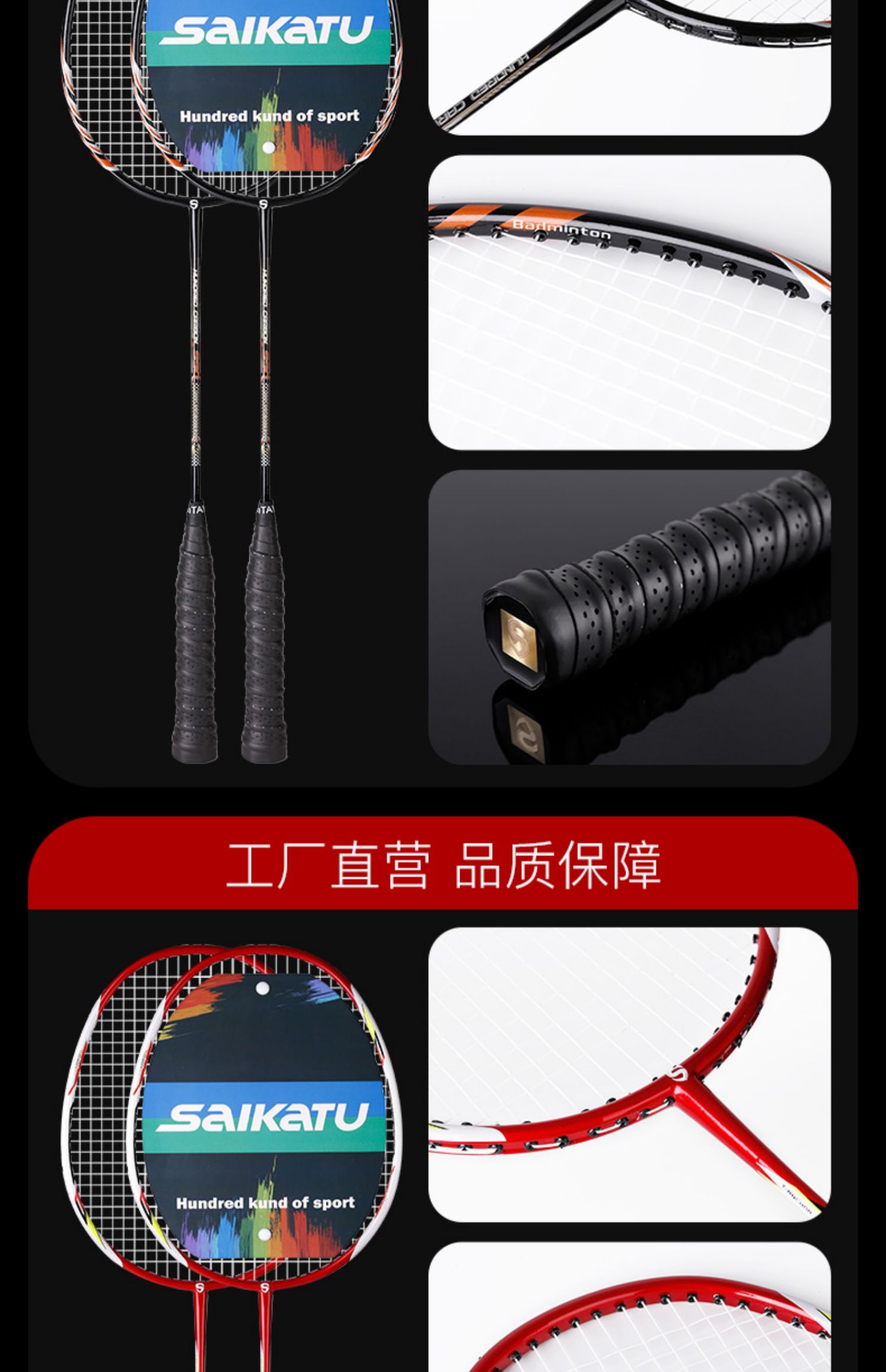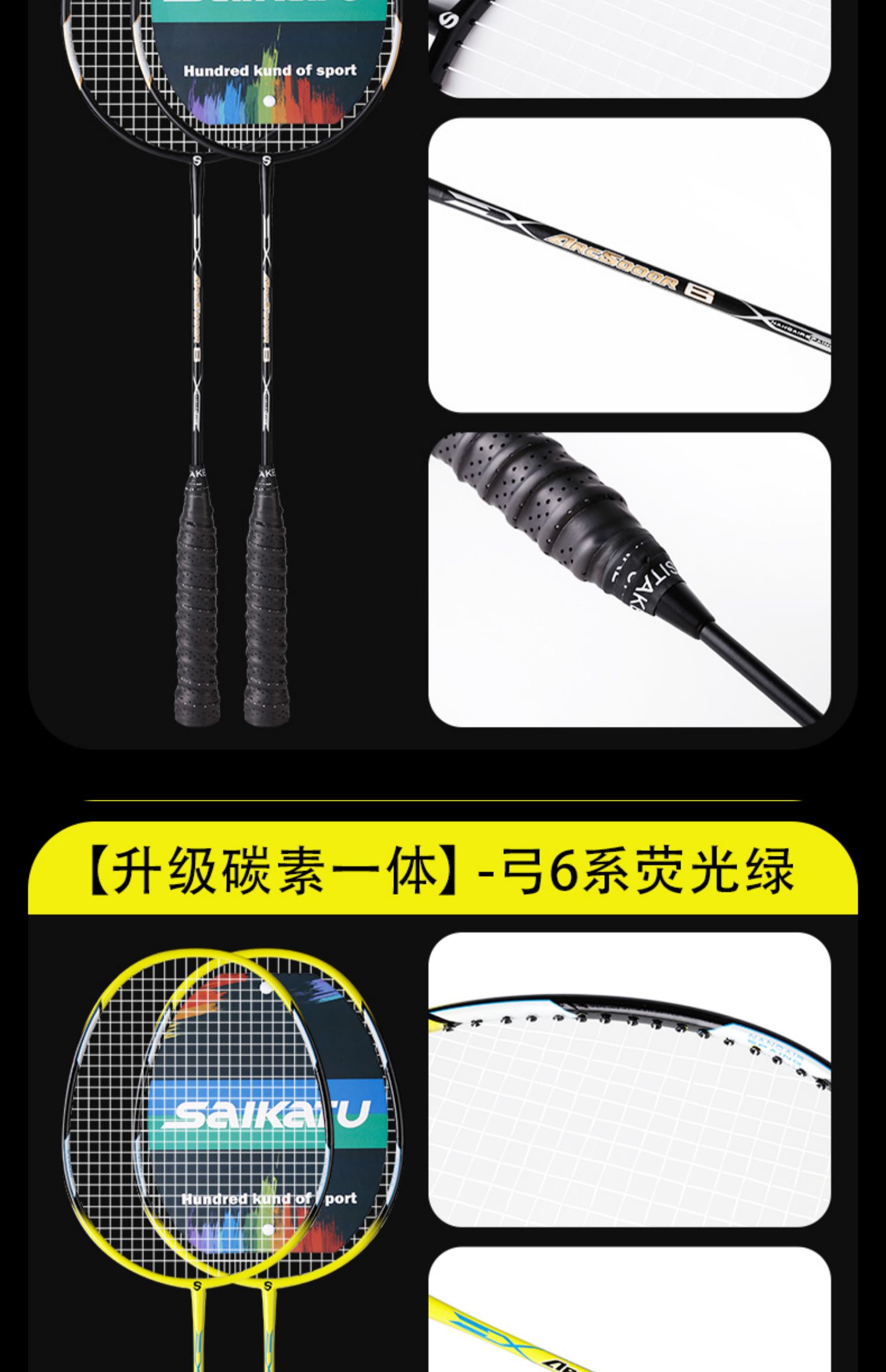 送球拍套2支全碳素高弹一体4U8U羽毛球拍超轻60g耐打双拍碳纤维