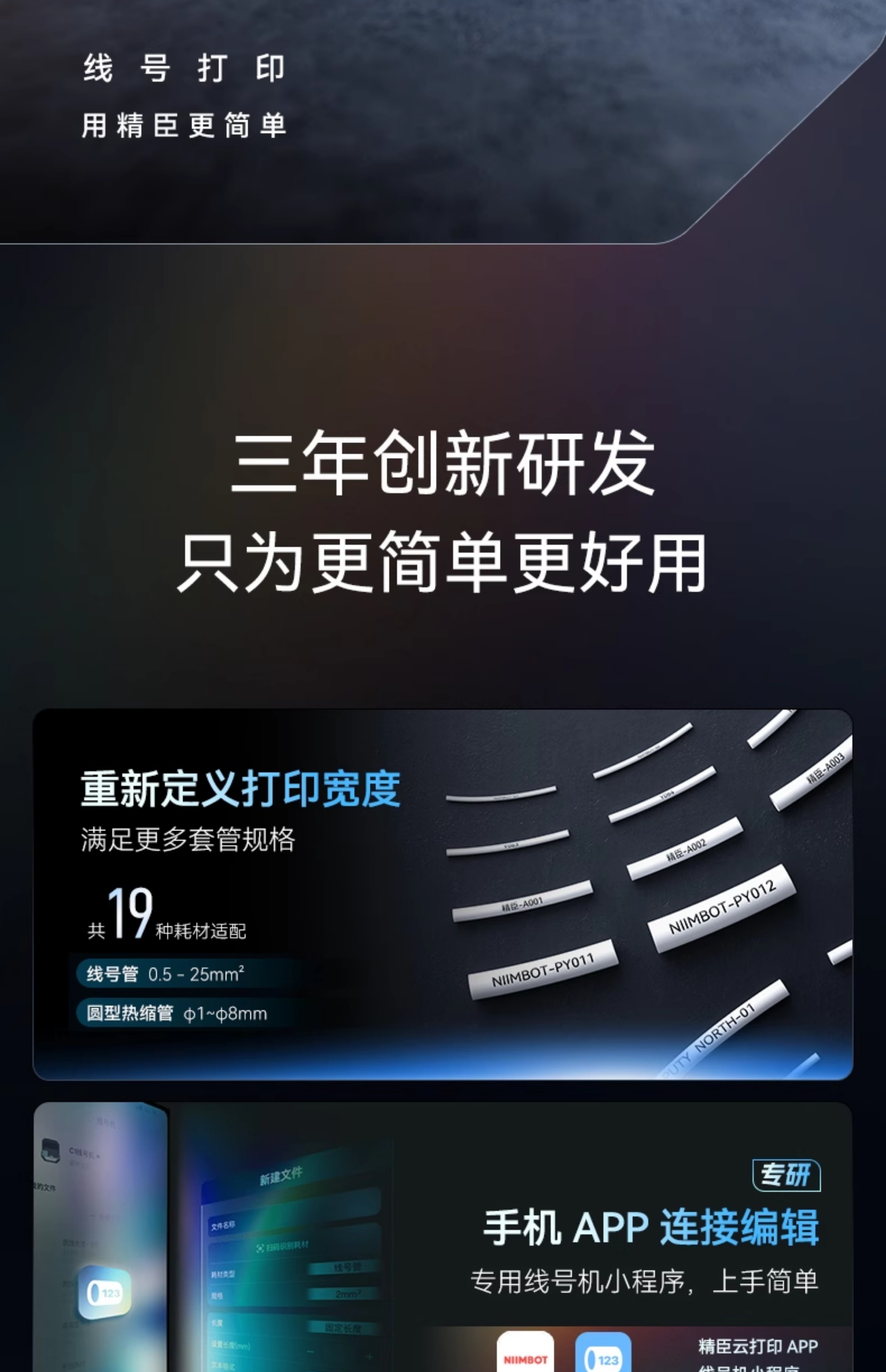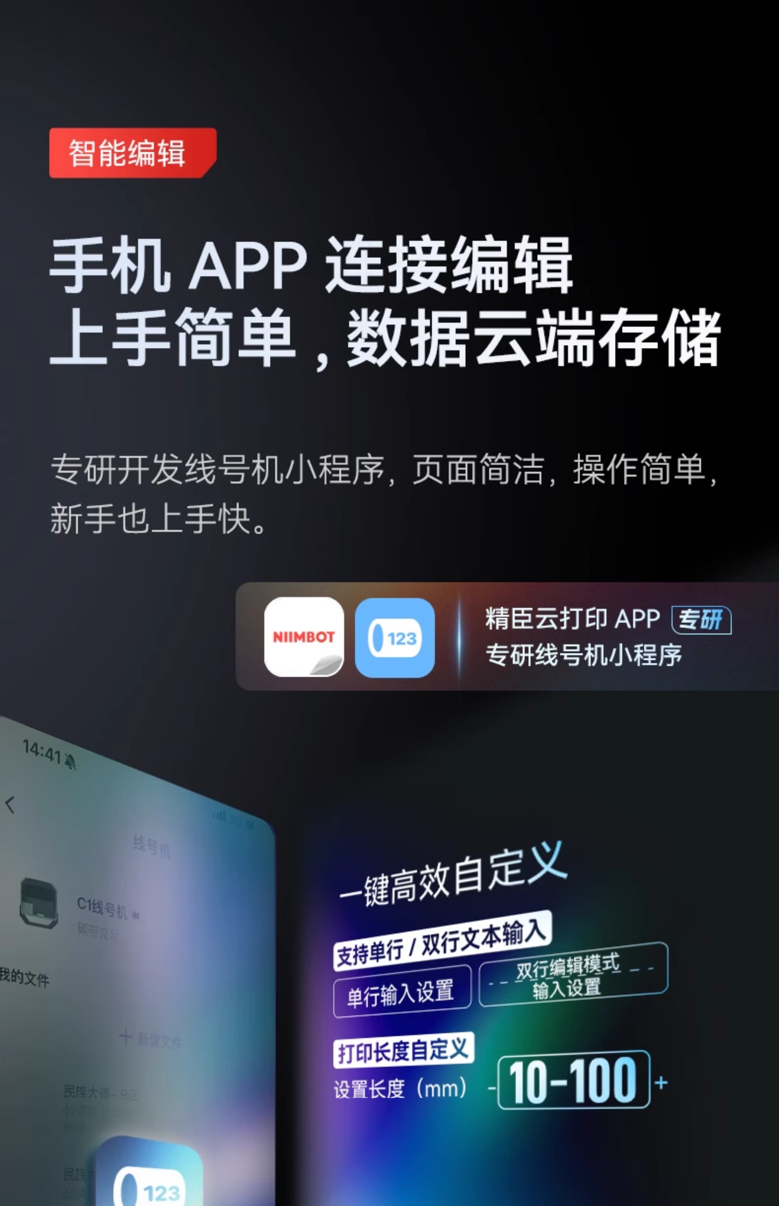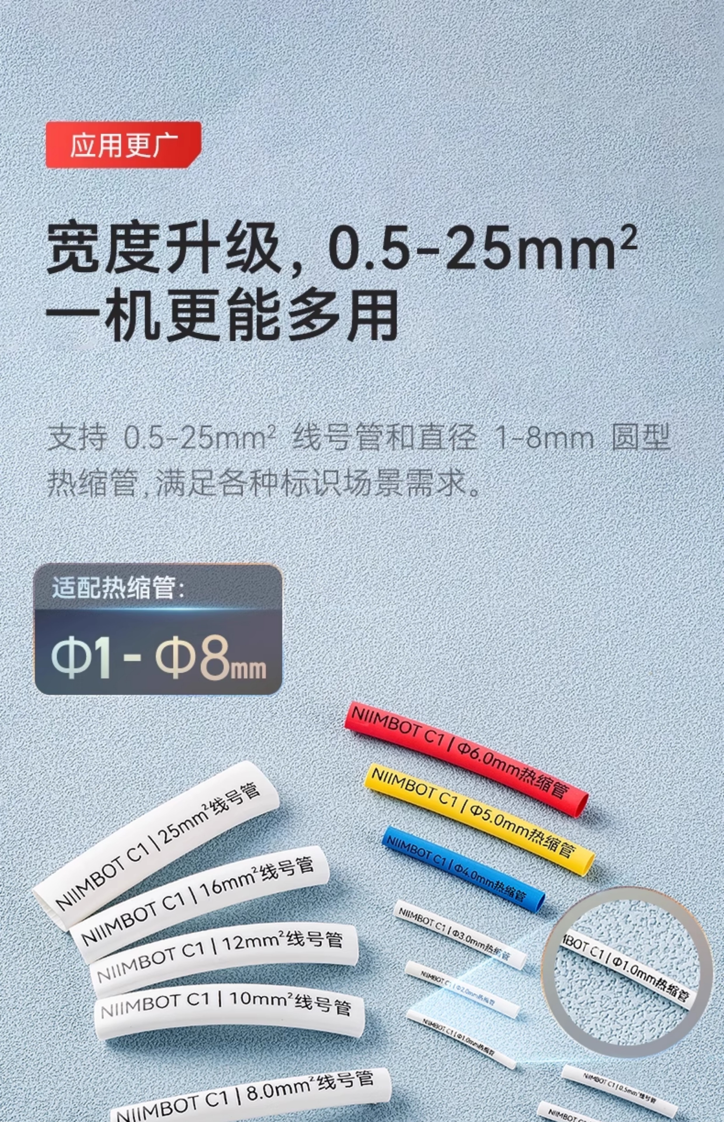 精臣C1线号机全自动线号套管打印机电线工程PVC号码管蓝牙宽幅线管打码机热缩管配电箱机房线标光伏光纤线缆