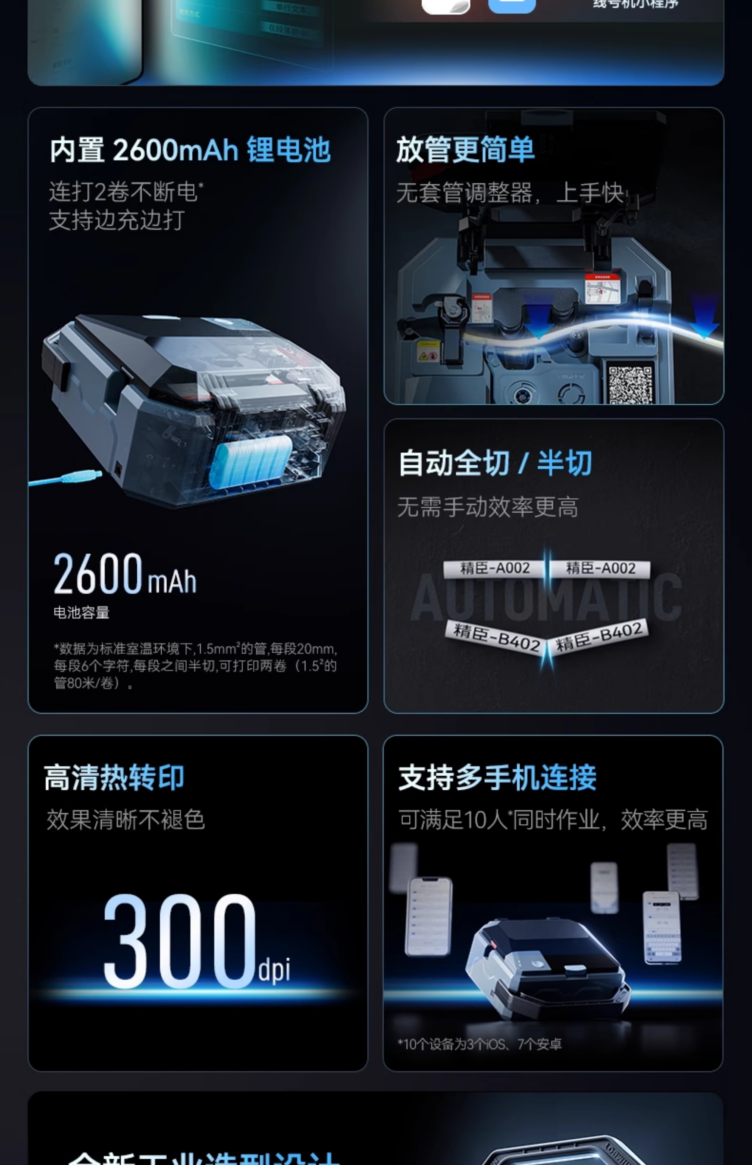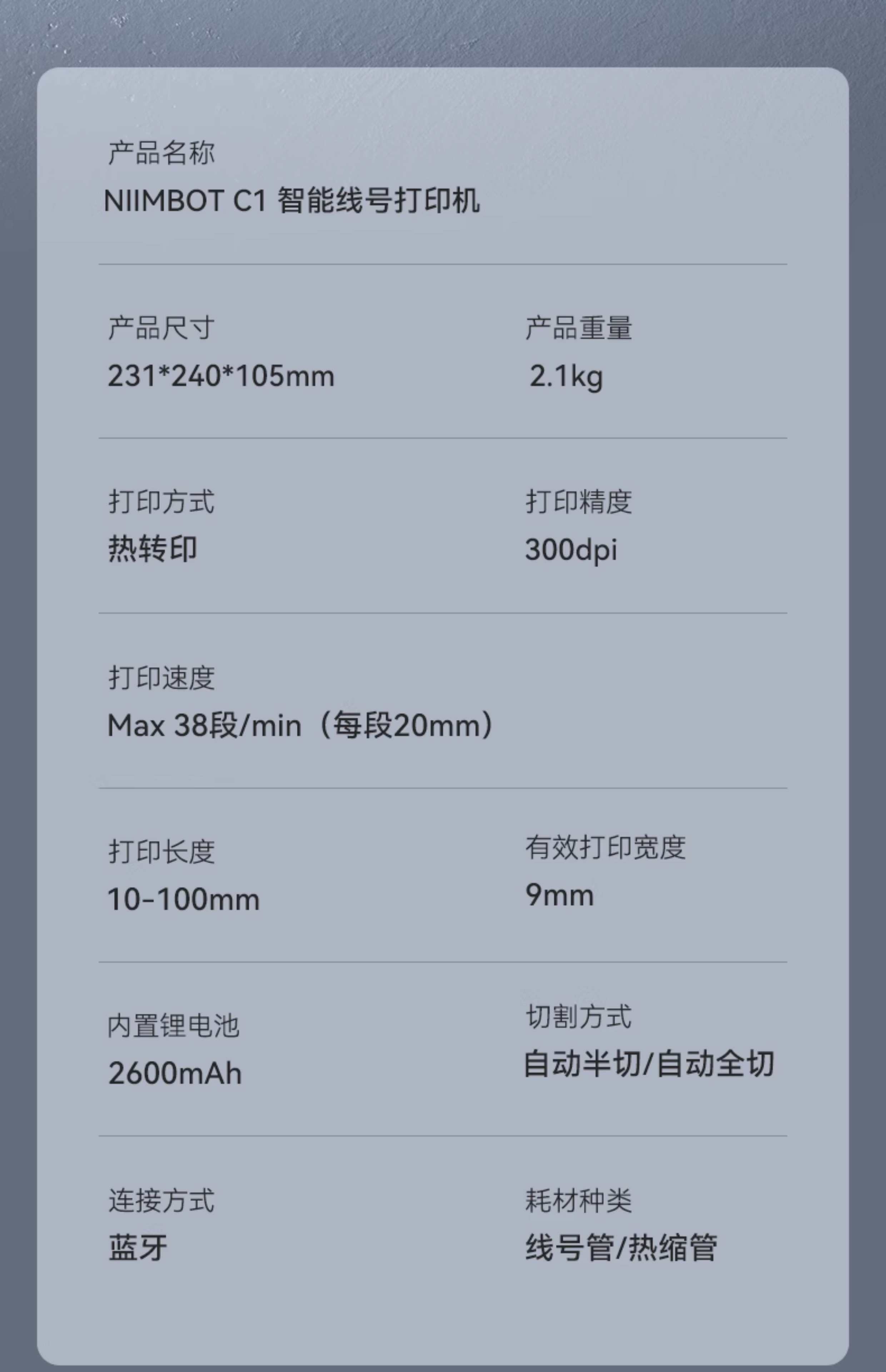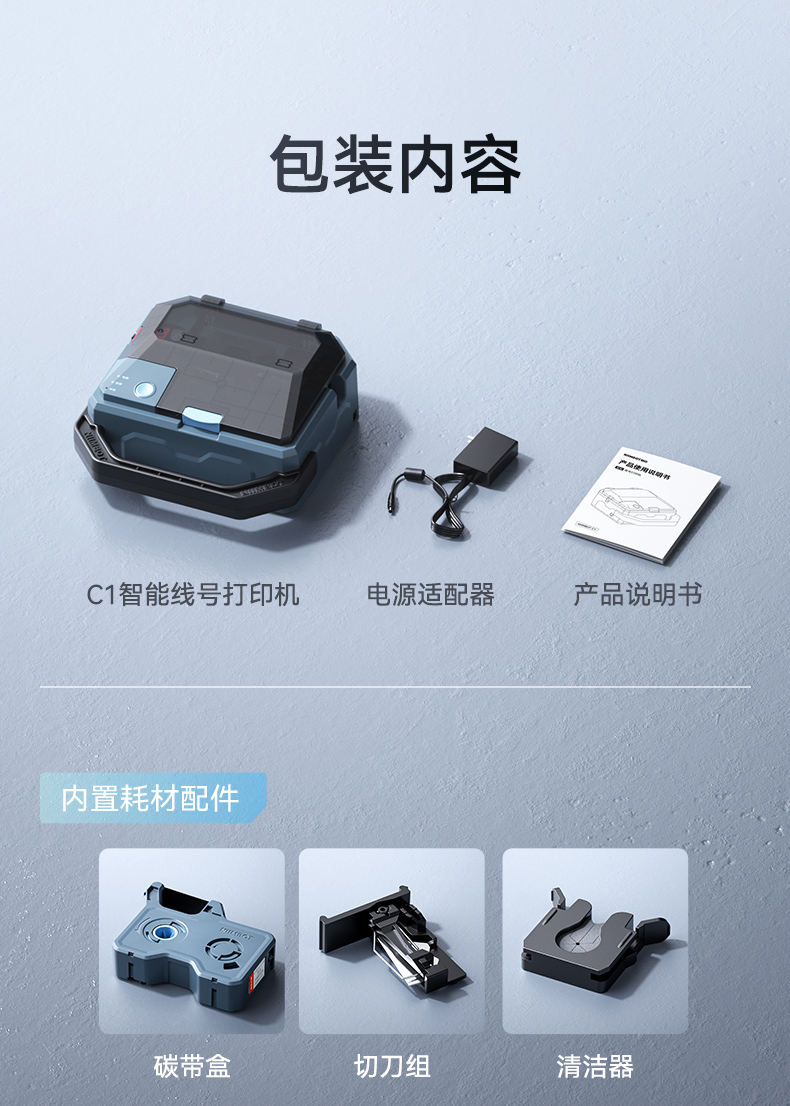 精臣C1线号机全自动线号套管打印机电线工程PVC号码管蓝牙宽幅线管打码机热缩管配电箱机房线标光伏光纤线缆