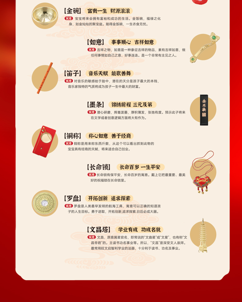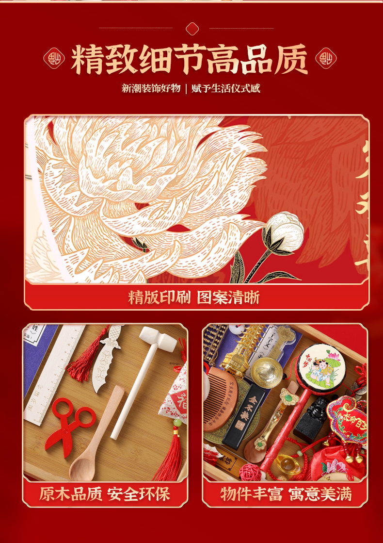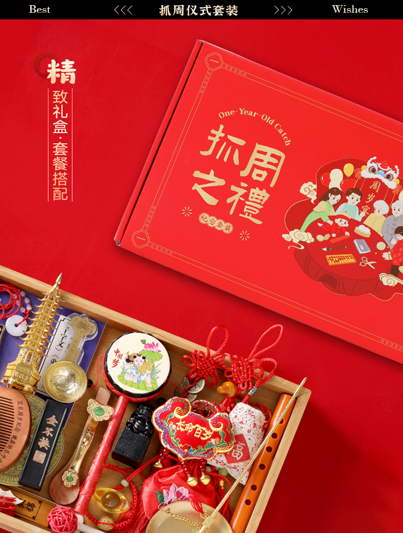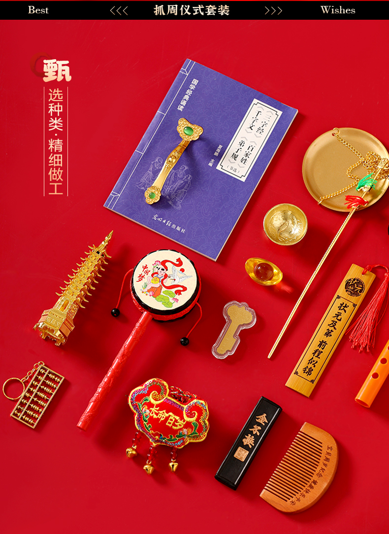 抓周用品道具全套礼物男女孩龙宝宝一周岁生日抓阄地毯装饰布置