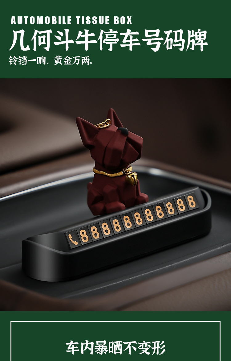 几何斗牛汽车临时停车电话号码牌挪车牌车载好物车内创意装饰摆件
