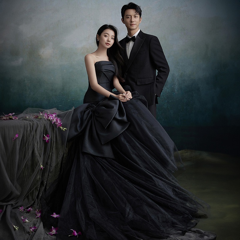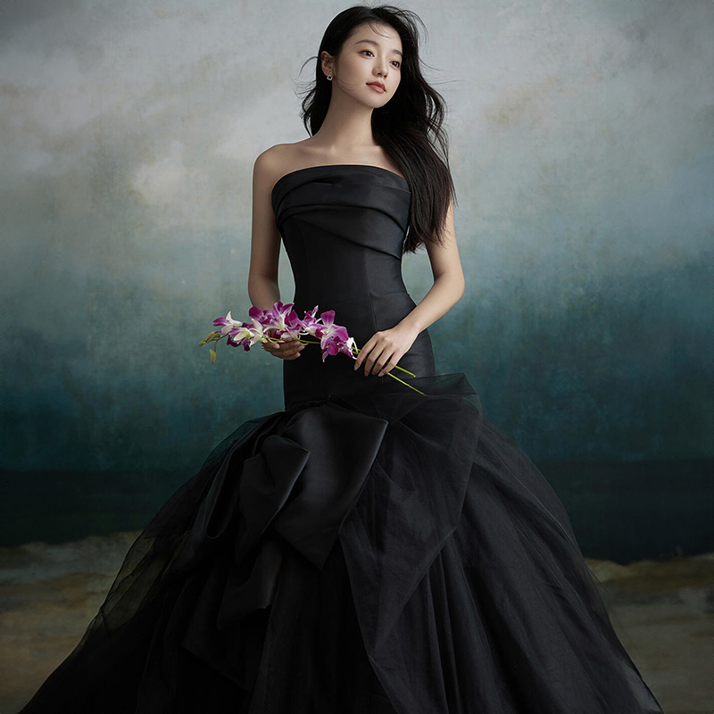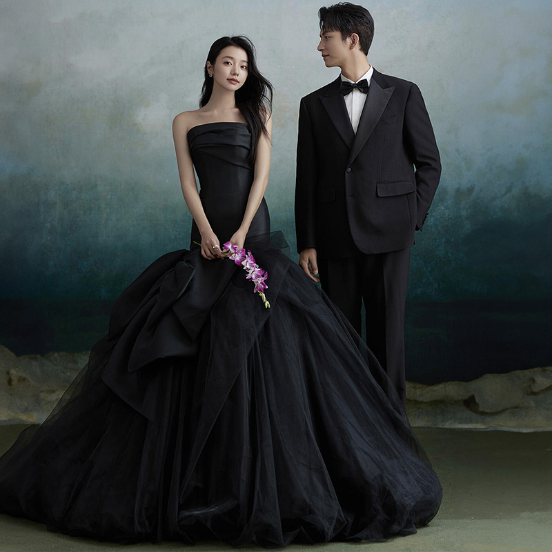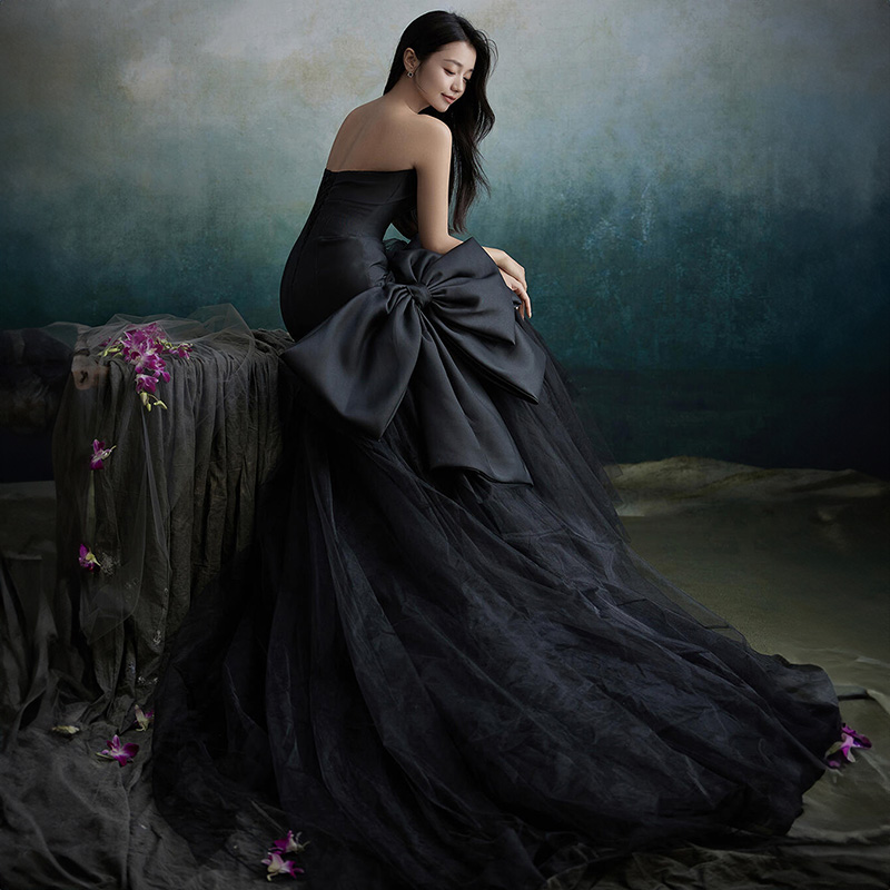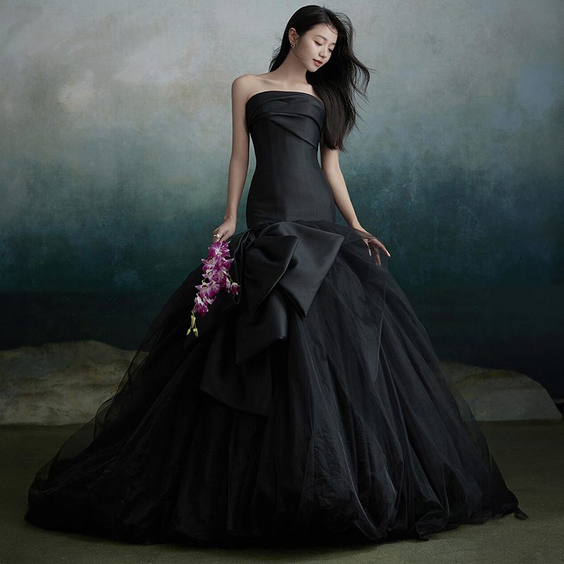 影楼主题服装情侣写真拍照抹胸鱼尾室内黑色蓬蓬轻纱在逃公主婚纱
