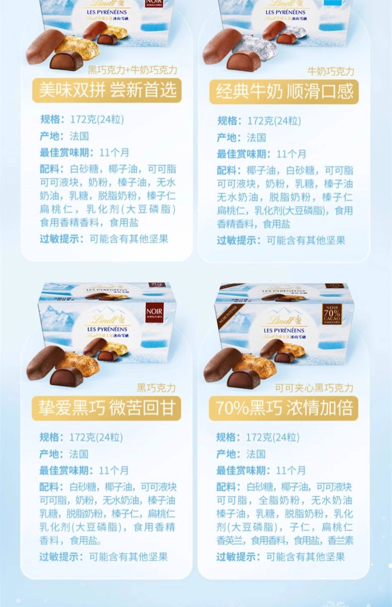 Lindt瑞士莲进口冰山雪融巧克力172g情人节礼盒冬季礼物零食糖果