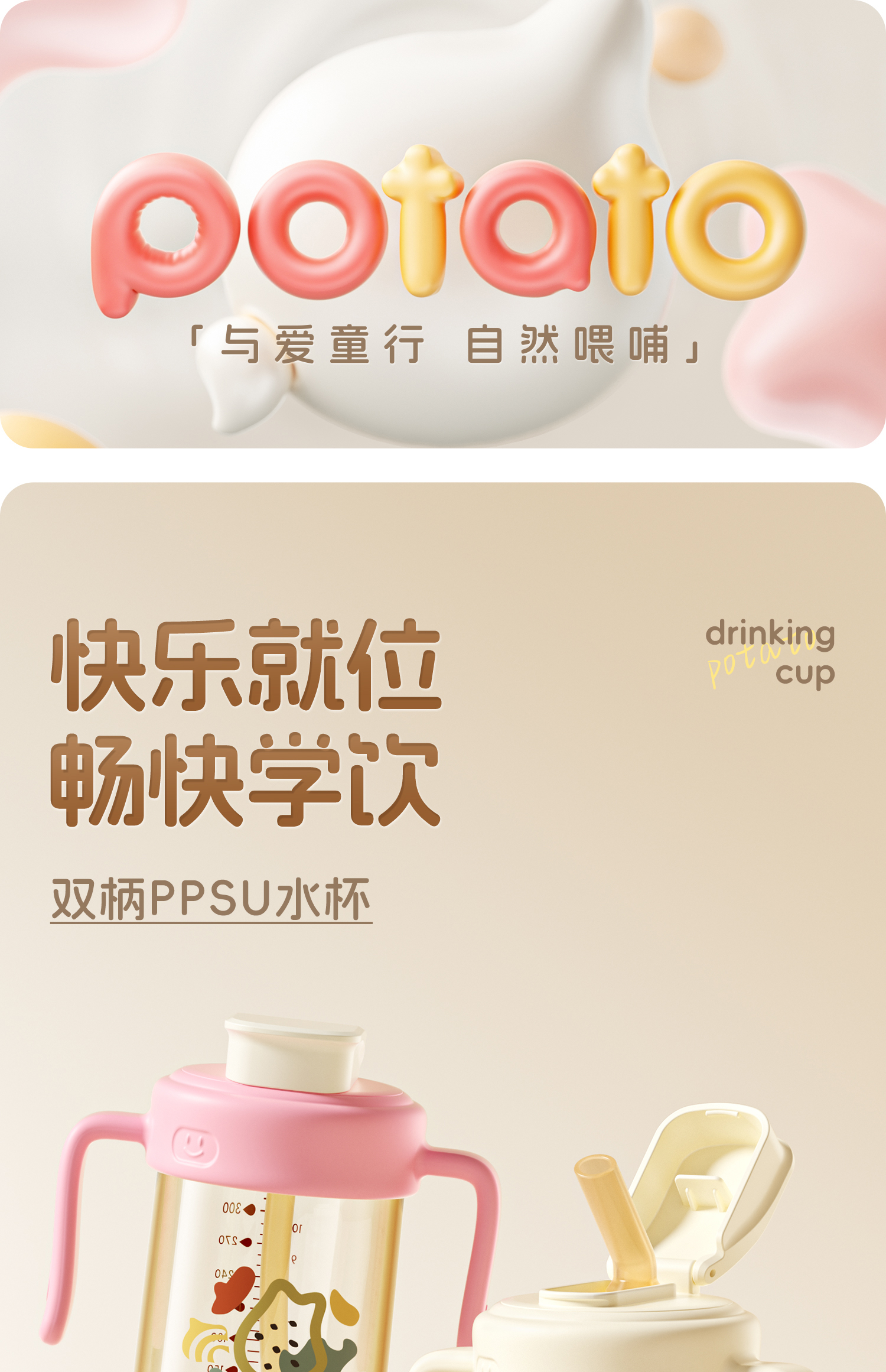 小土豆吸管杯PPSU直饮杯水杯宝宝2岁以上3岁儿童大容量牛奶杯奶瓶