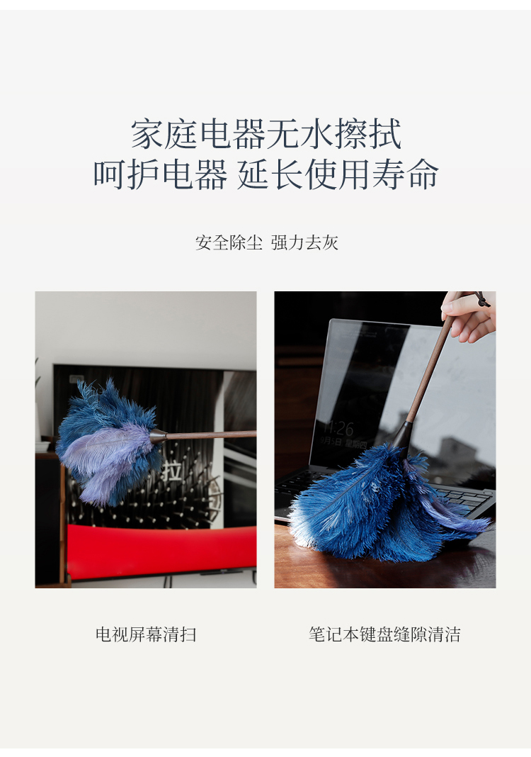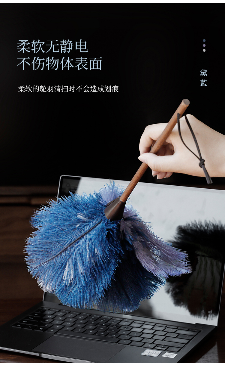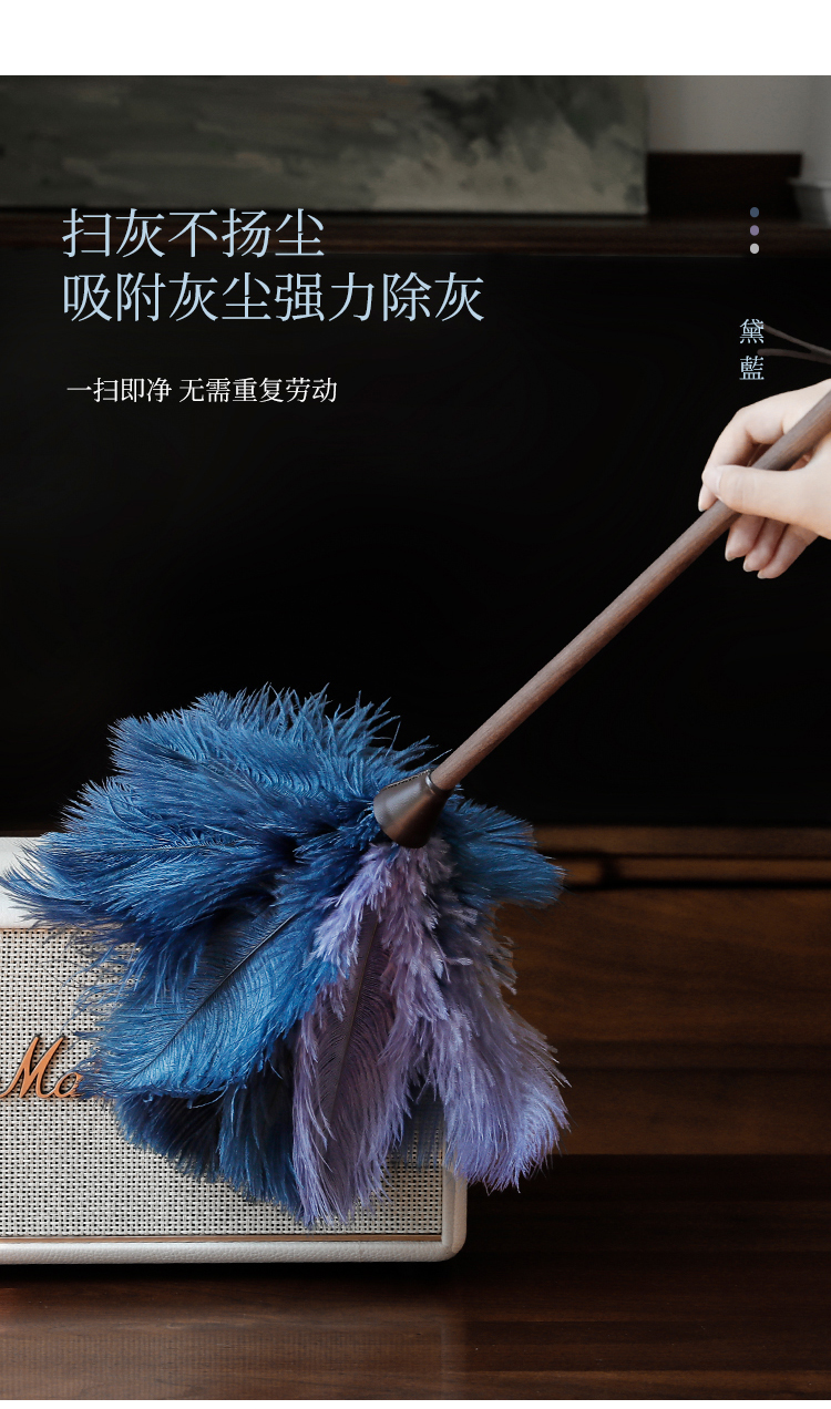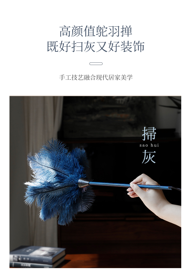 艺之初鸡毛掸子静电除尘扫灰家用黛蓝鸵鸟毛灰尘清理神器装饰掸子